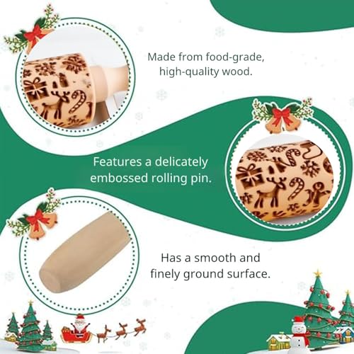 Christmas Wooden Rolling Pins, Xmas 3D Reindeer Shape Decor Embossing Rolling Pin,Christmas Patterned Rolling Pin Baking Tools (Christmas Reindeer)