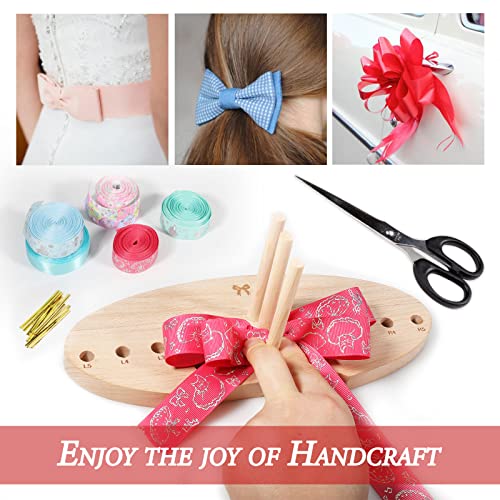 Wooden Ribbon Bow Maker Kit, Adjustable Hand Bow Making Tool with Board Sticks Decorating