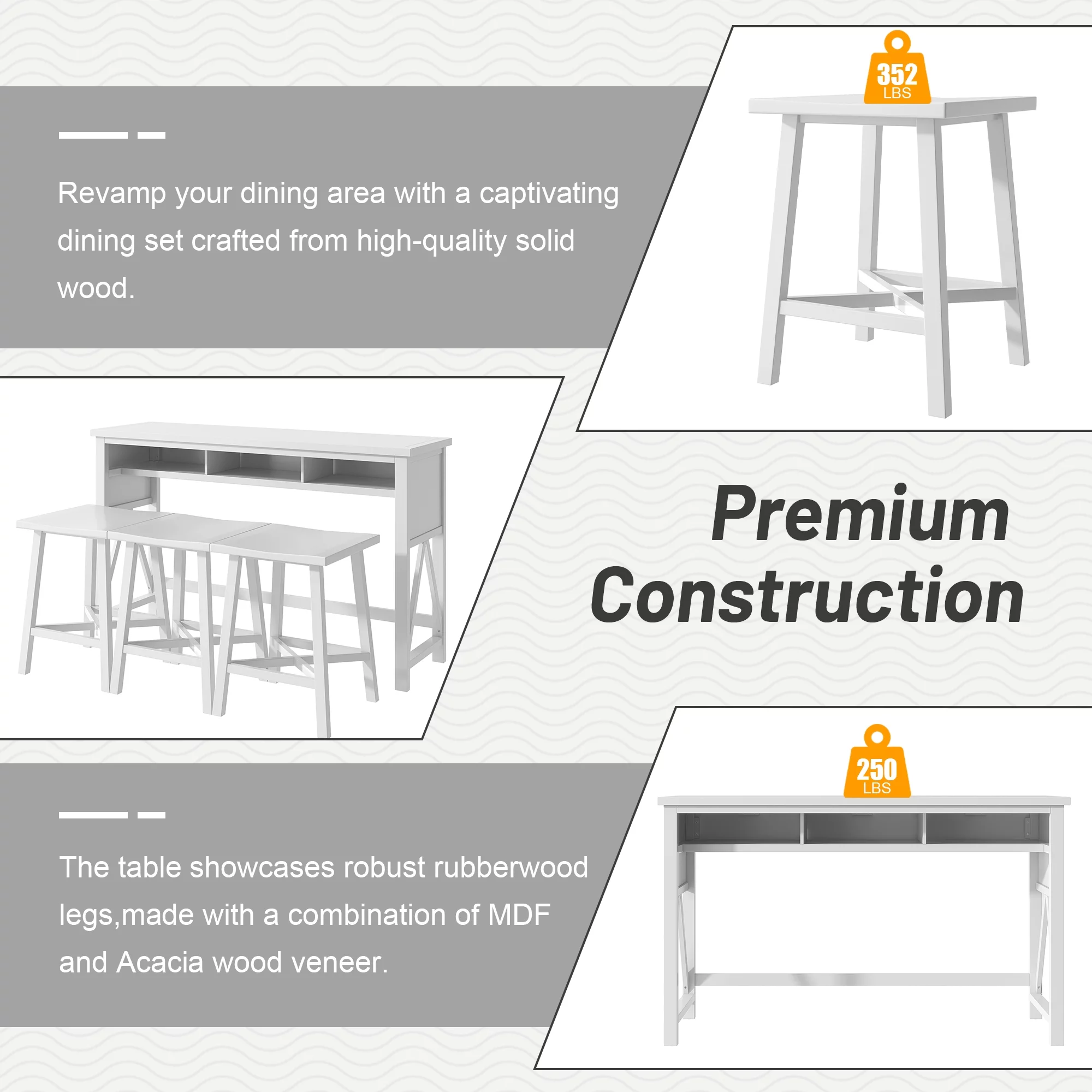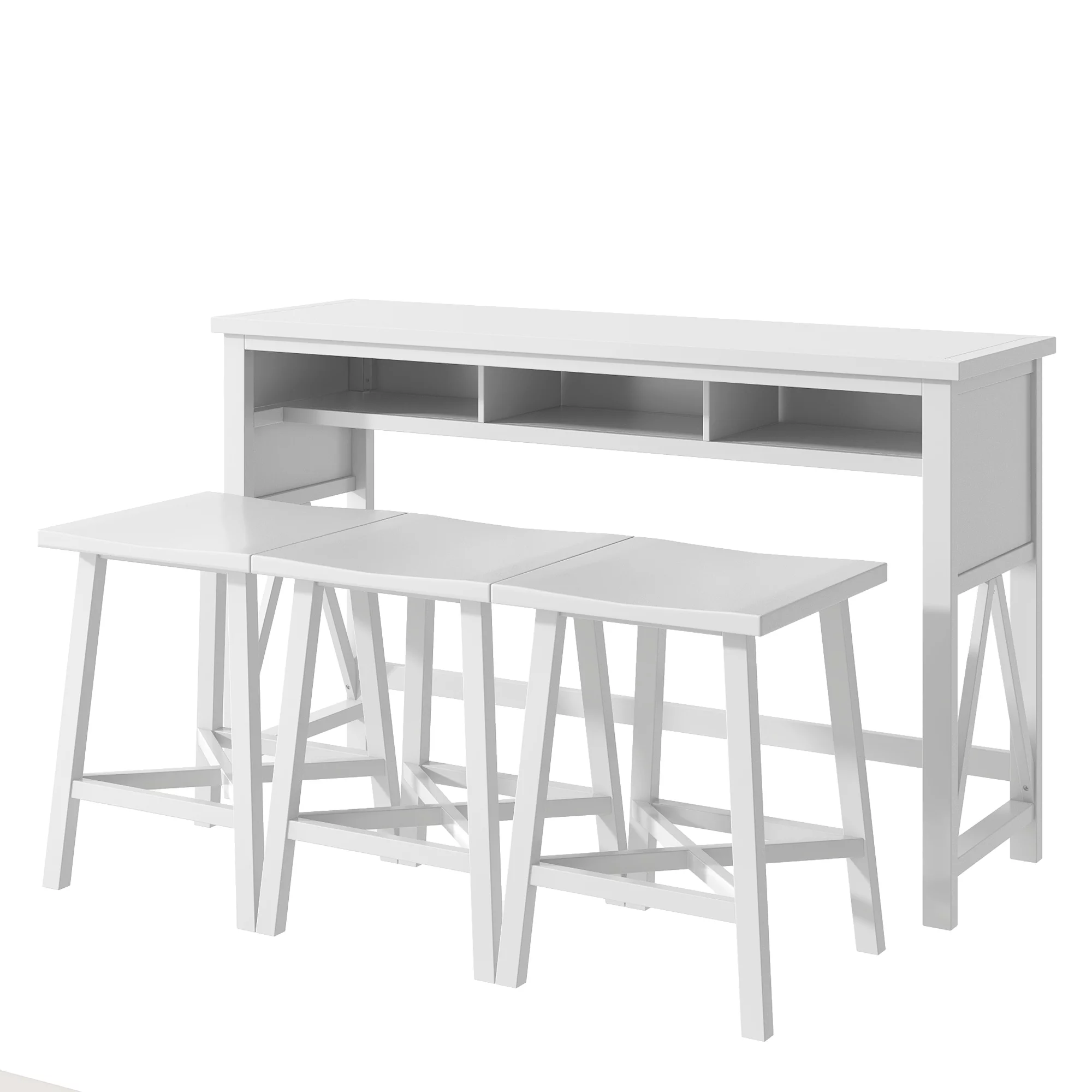 60" Dining Table Set for 3, Farmhouse Counter Height 4-Piece Dining Table Set, Console Kitchen Table Set with 3 Stools for Small Places Home Bar Pub