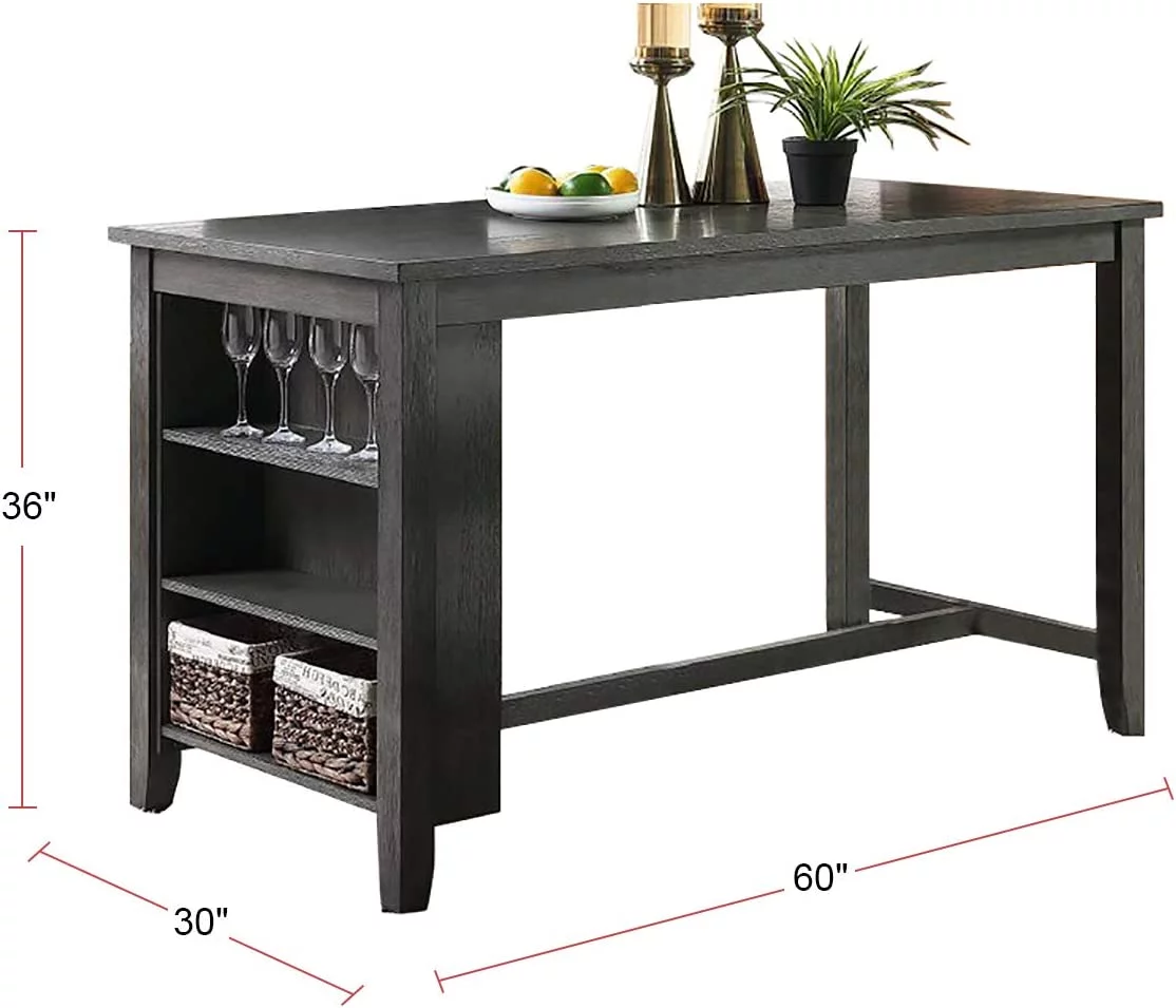 Modern Dark Brown Finish 5pc Counter Height High Dining Table w Storage Shelves High Chairs And Stools Wooden Kitchen Breakfast Table Dining Room Furniture