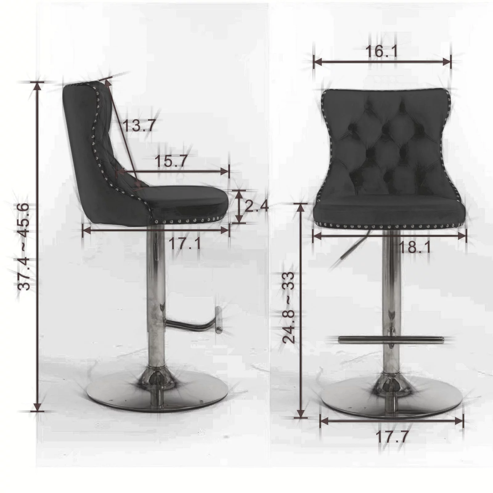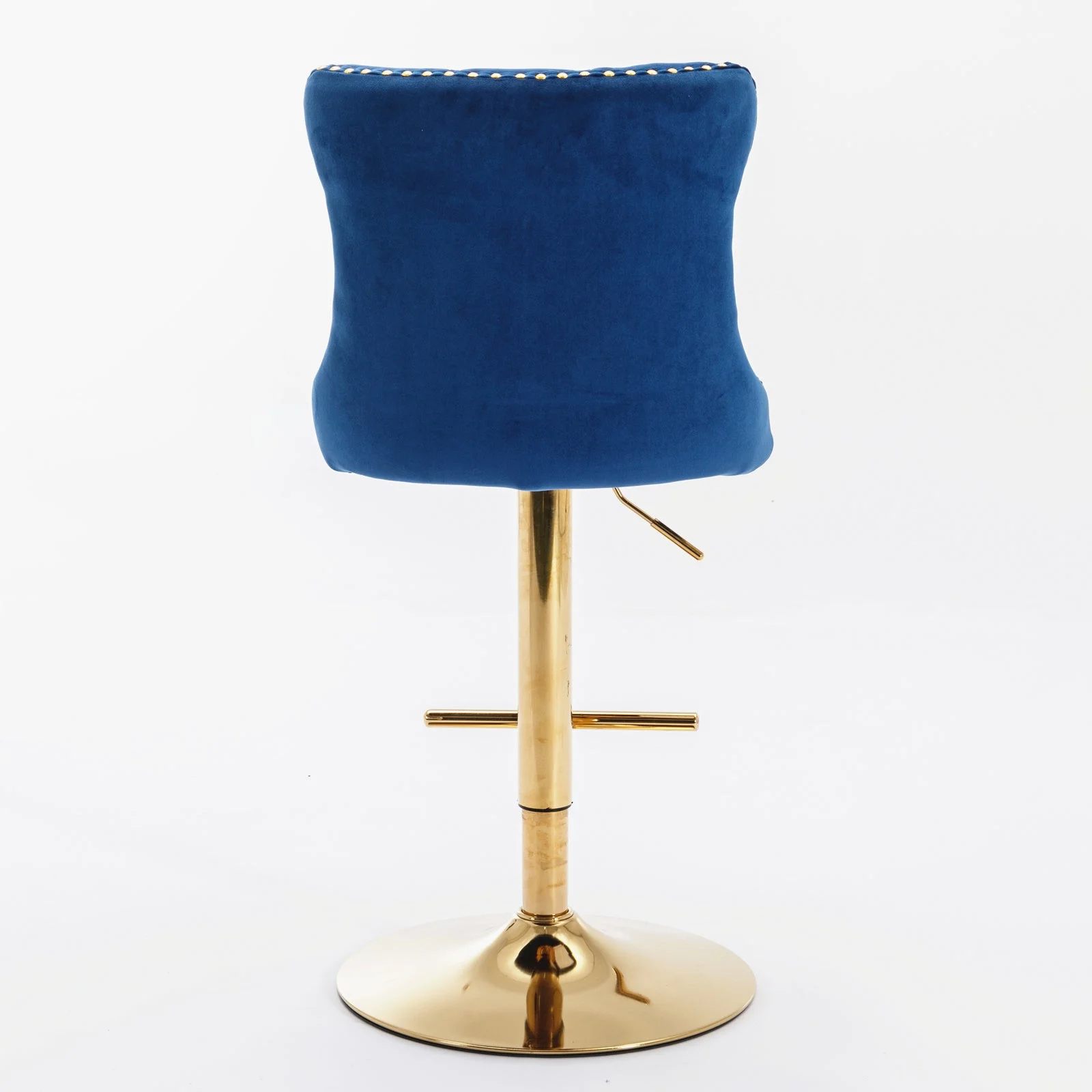Stellar Golden Swivel Velvet Barstools Adjusatble Height - Blue Set of 2