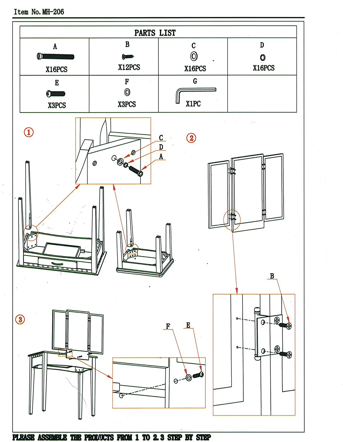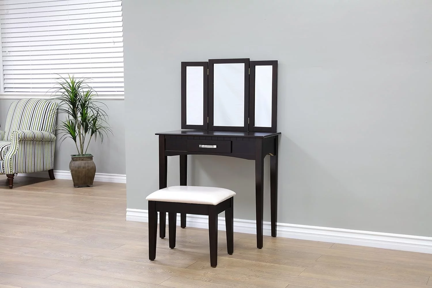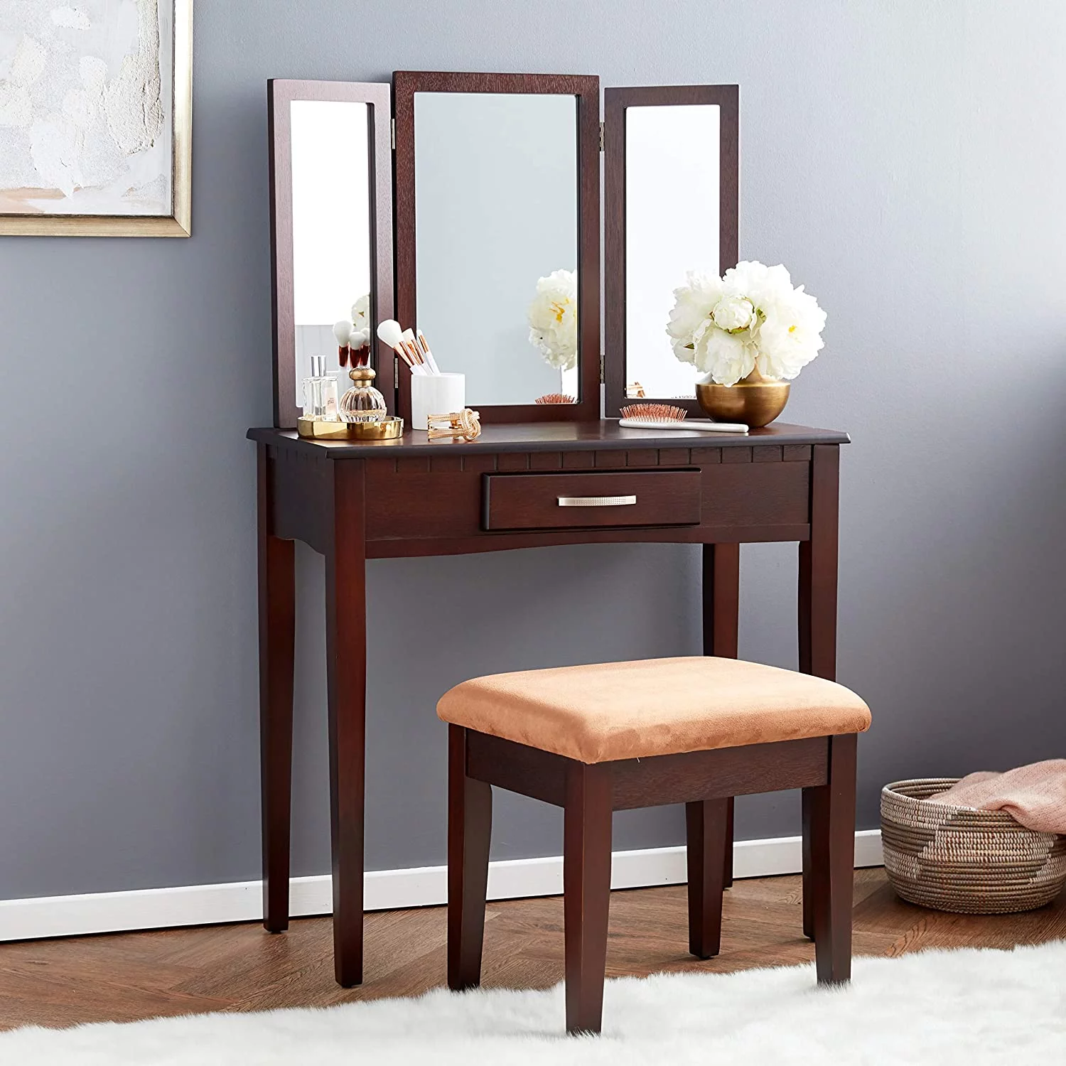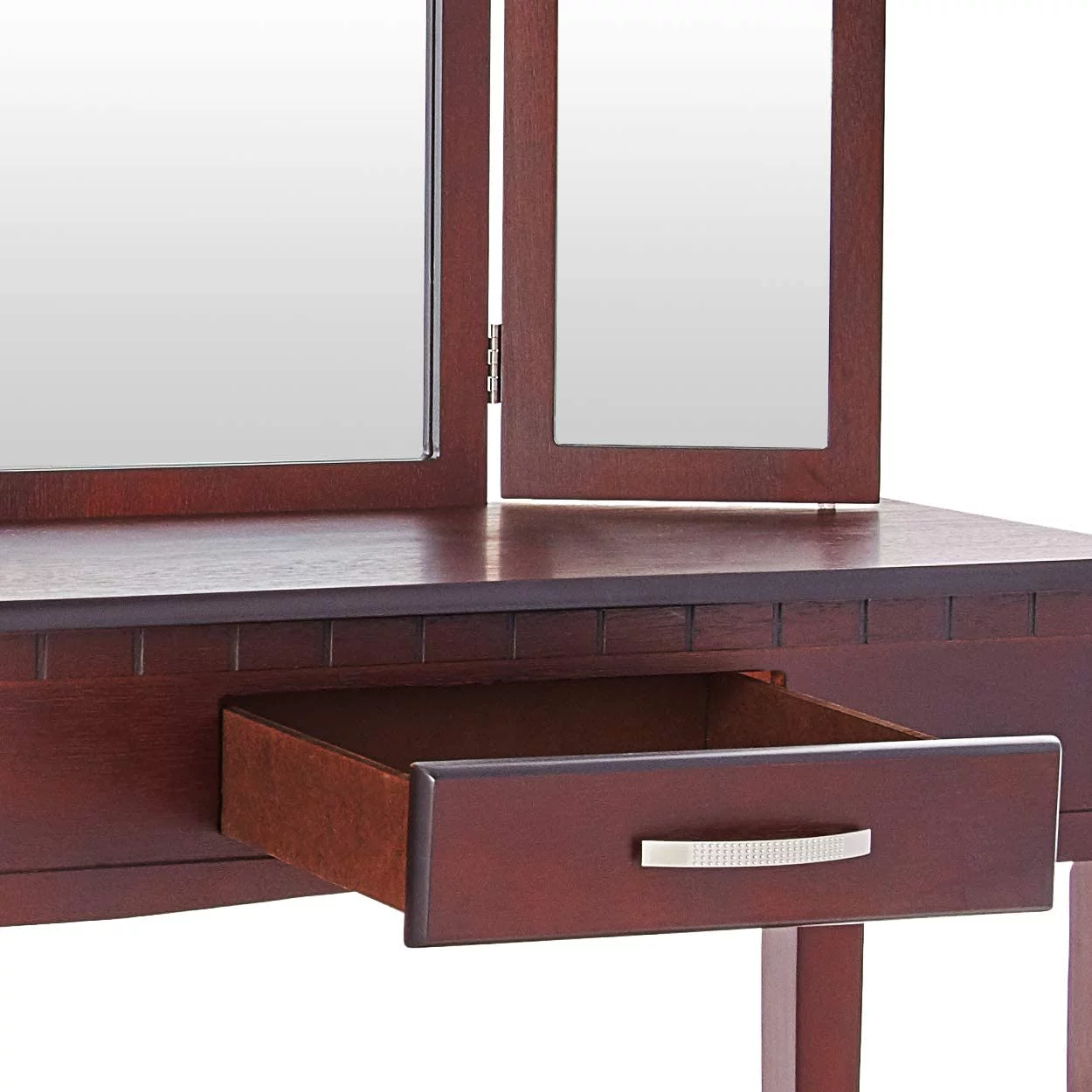 FRENCHI FURNITURE Home Furnishing 2 Piece Home Furnishing Stool Set & Vanity THREE MIRROR Mahogany