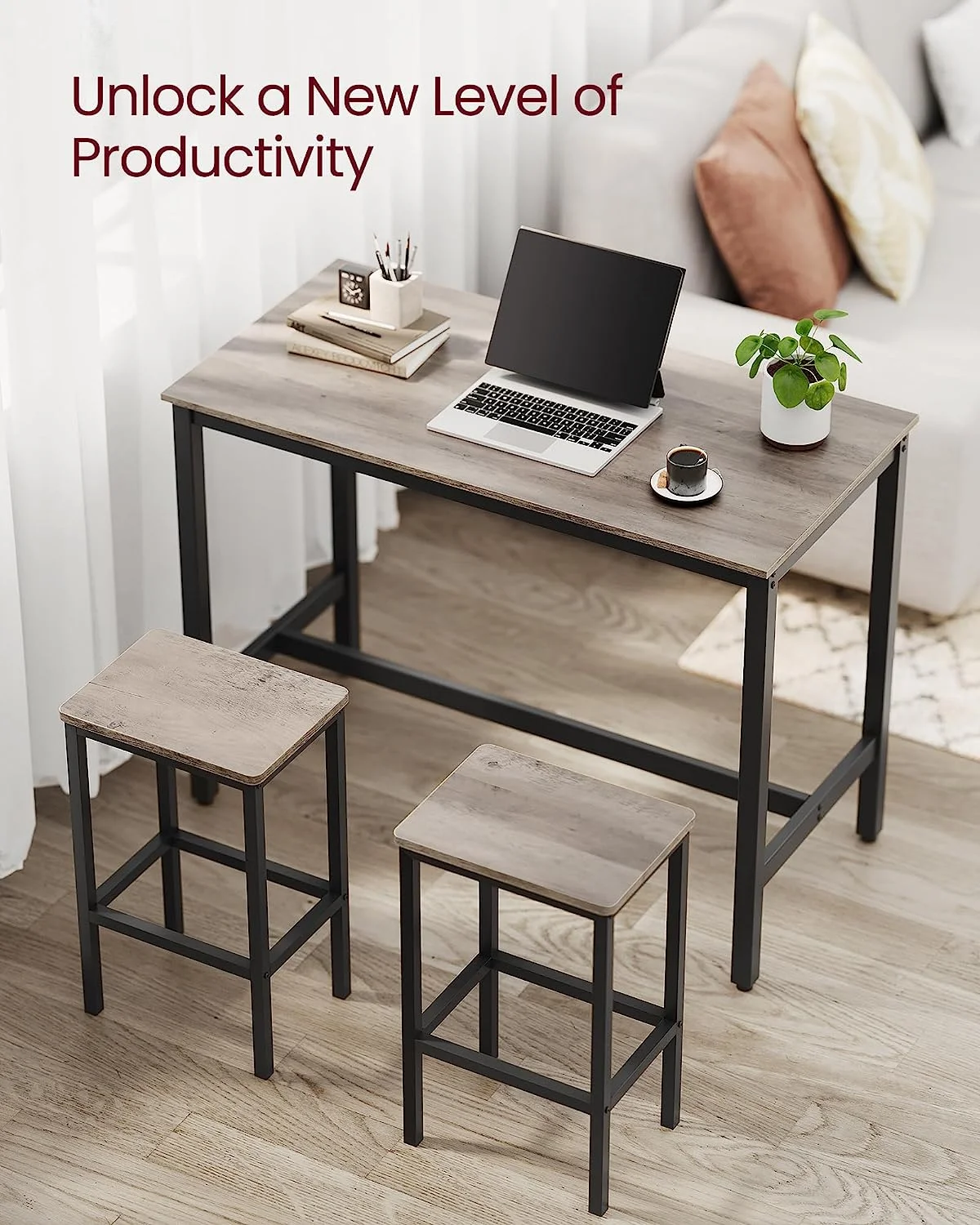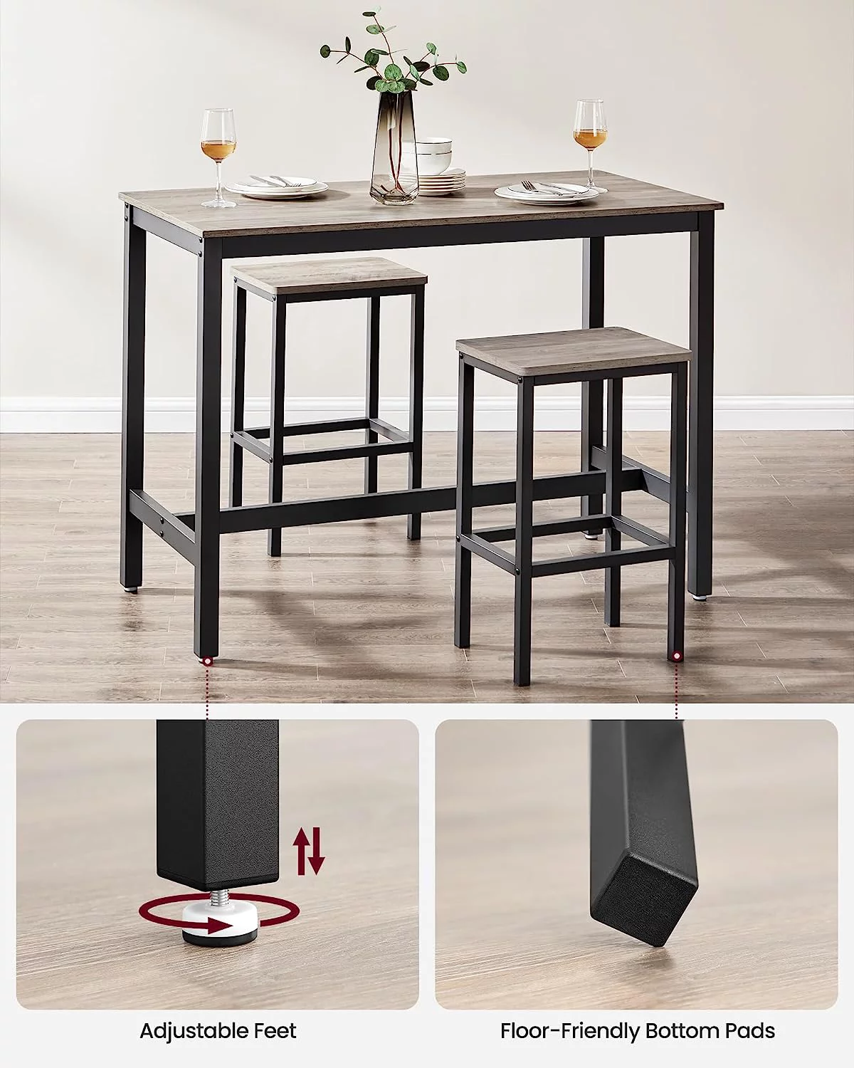 VASAGLE Bar Table Set Bar Table with 2 Bar Stools Dining table set for Kitchen Living Room Greige and Black