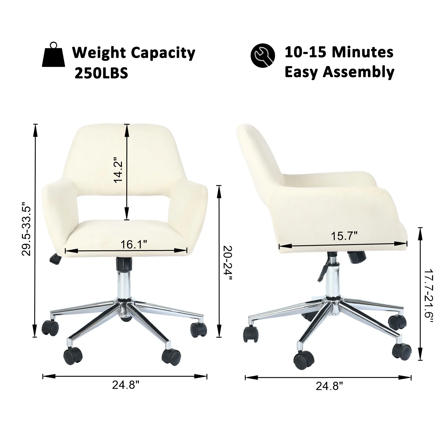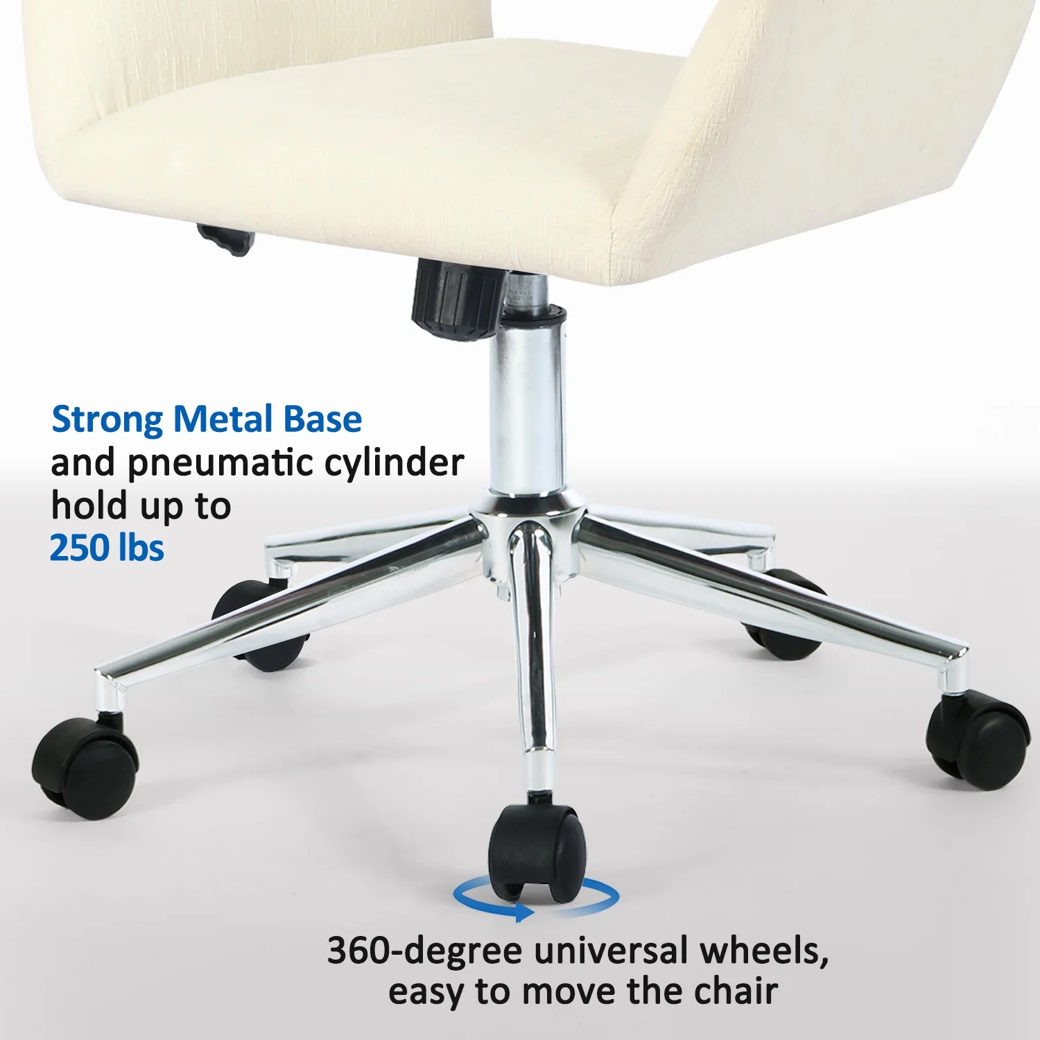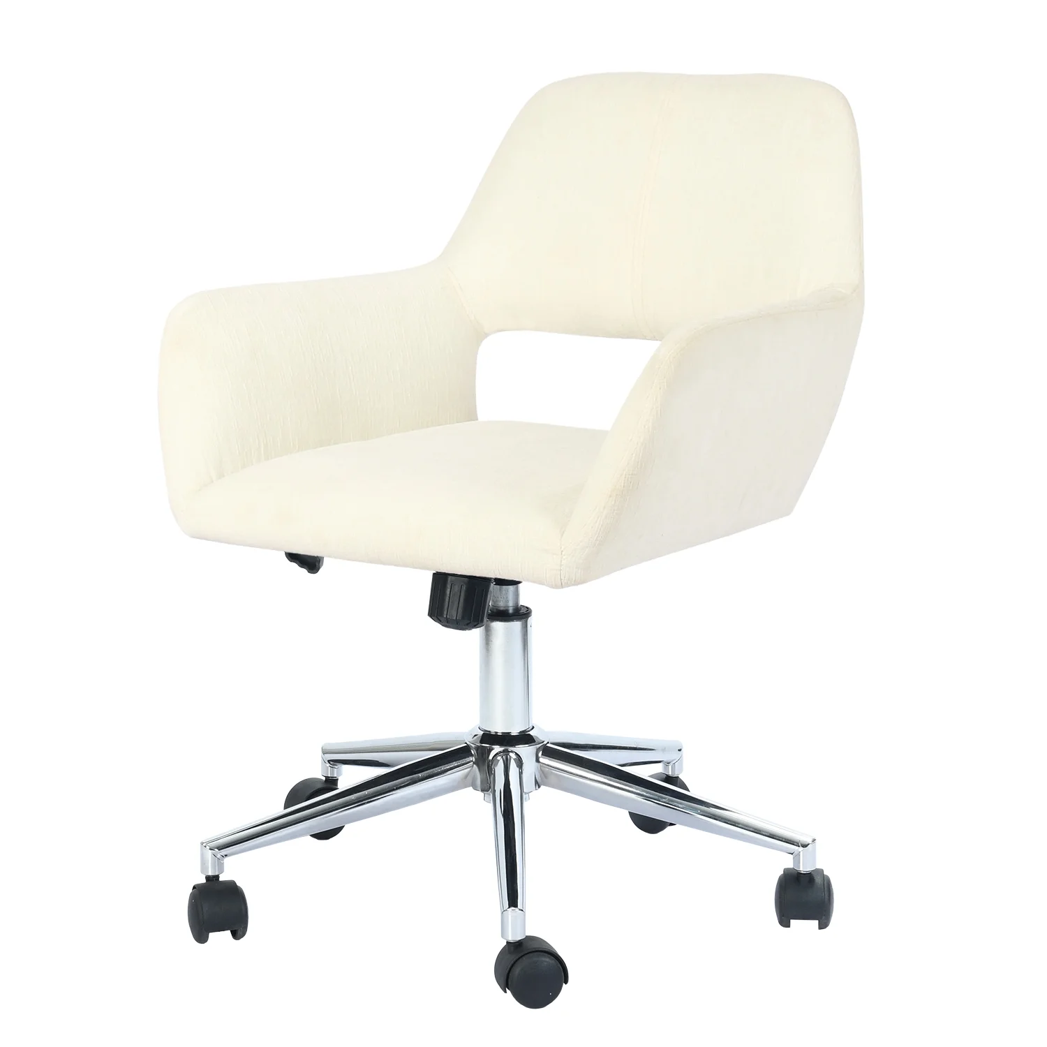 Homy Casa Home Office Chair Swivel Fabric Desk Chair Accent Armchair Upholstered Modern Tufted Chairs with Metal Base Ergonomic Study Seat Computer Task Stools for Living Vanity Room (Cream Beige)