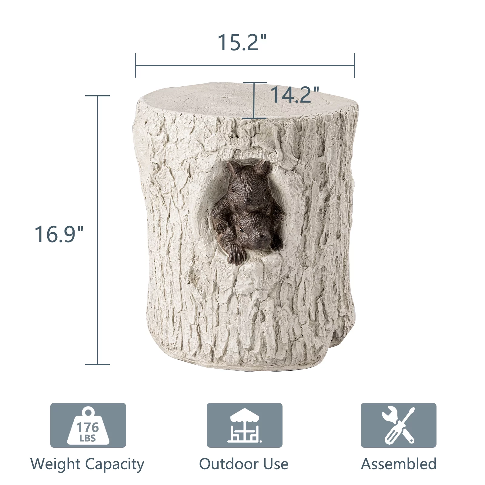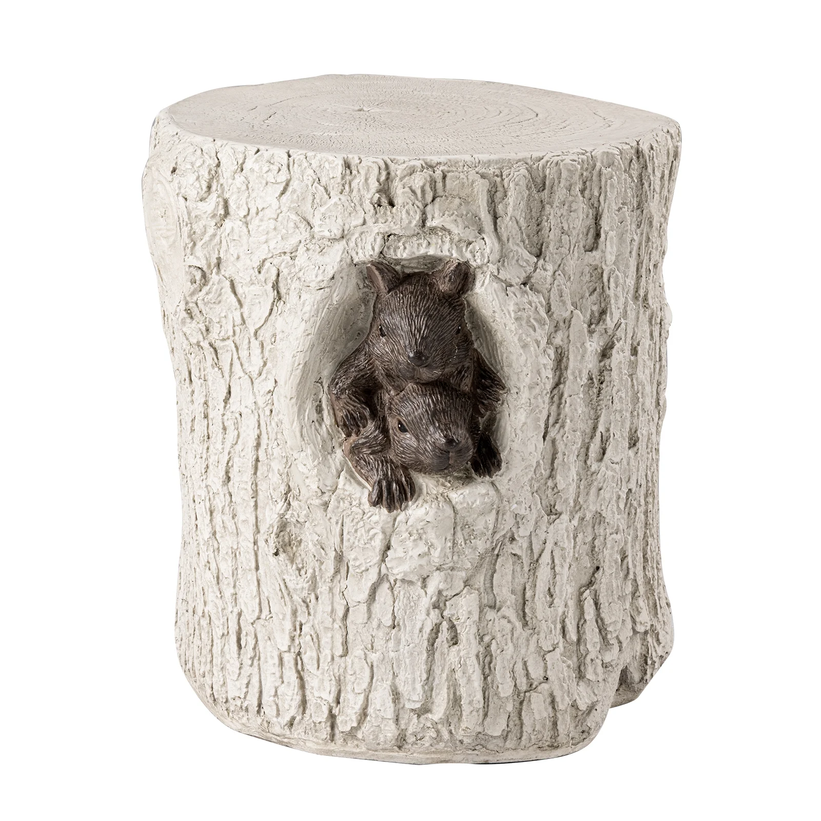 COSIEST Outdoor Hand-Painted Wood Stump Stool w Sculpted Squirrel