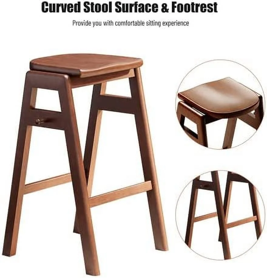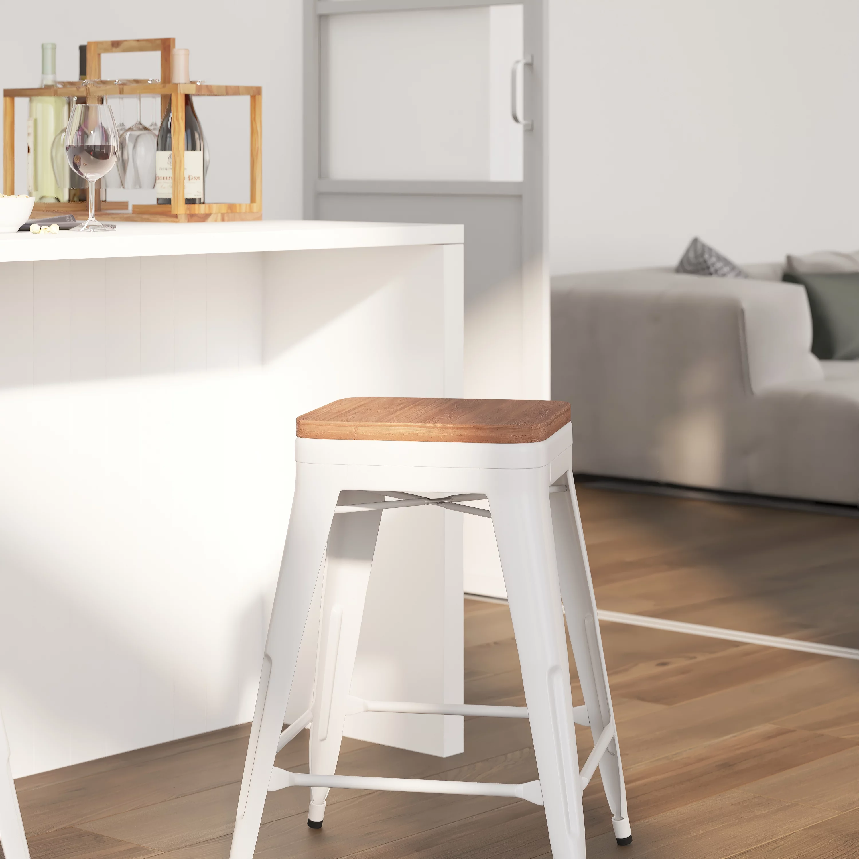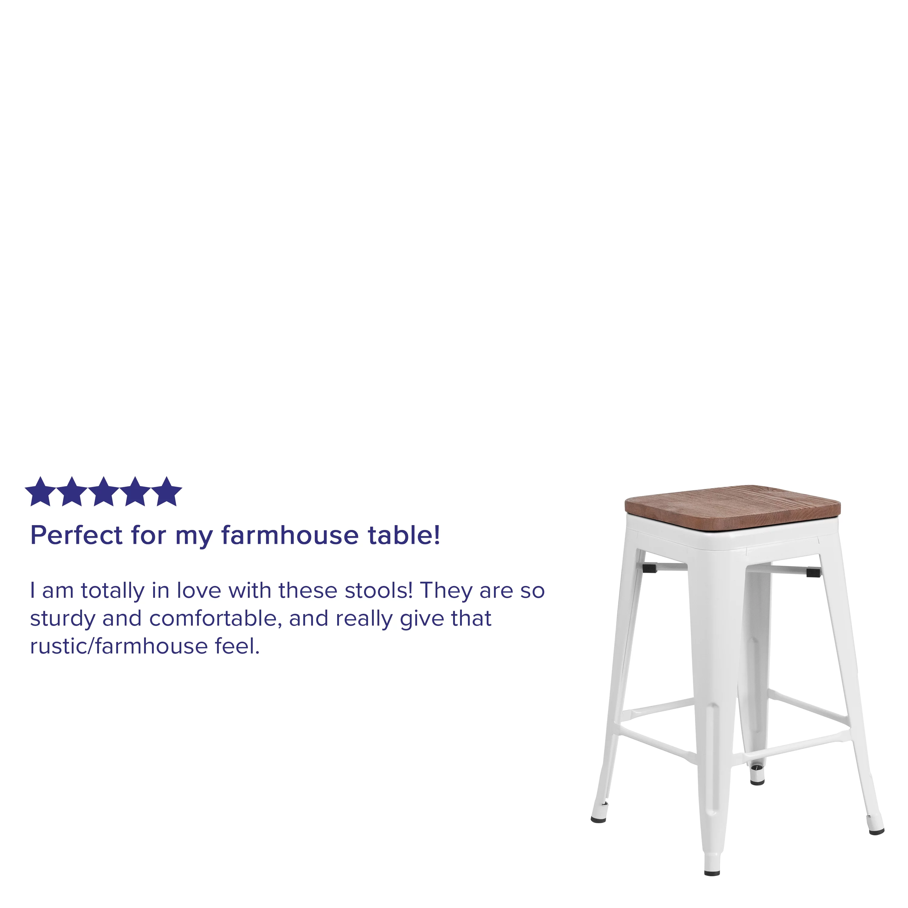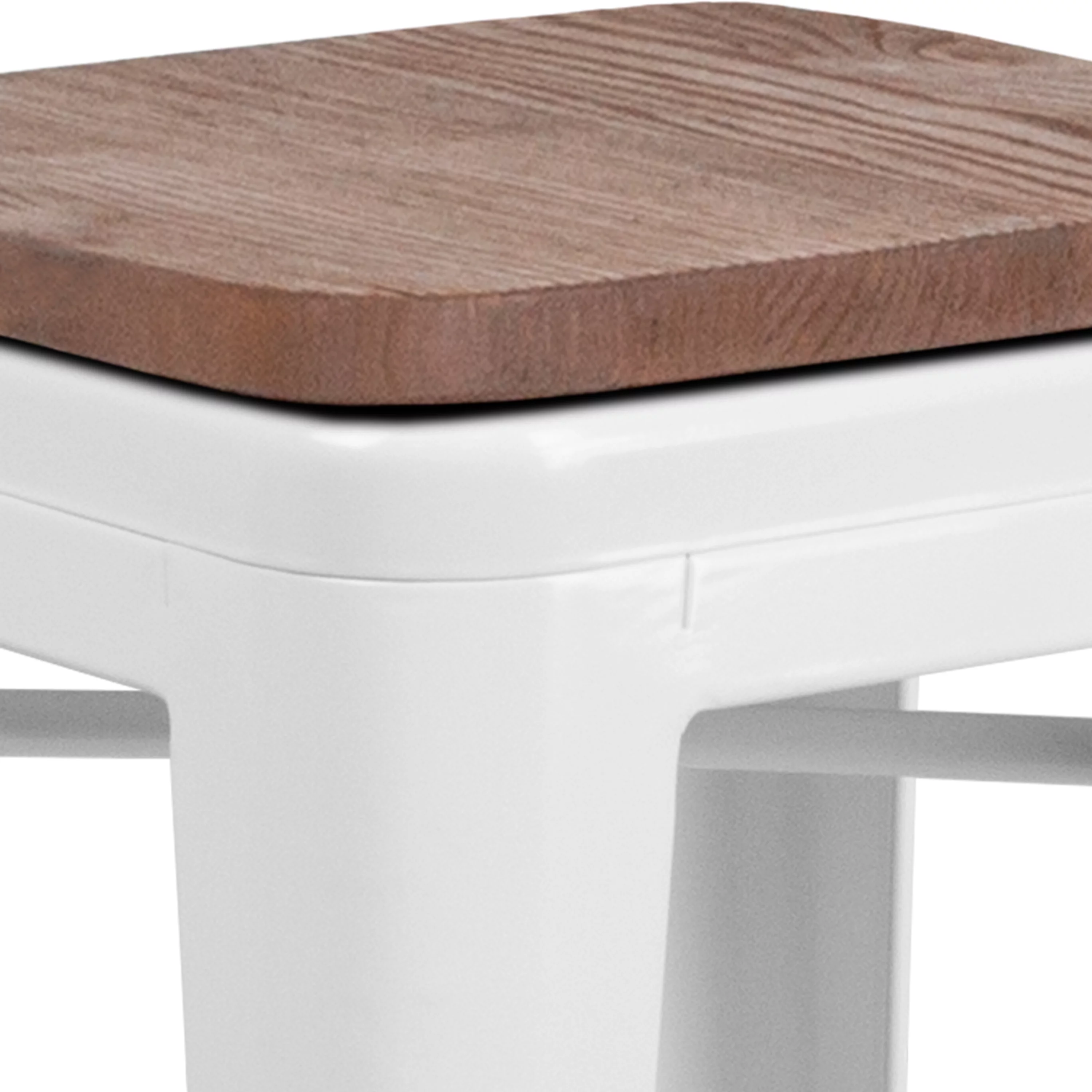 Merrick Lane 24" High Backless White Metal Counter Height Dining Stool with Wooden Seat for Indoor Use