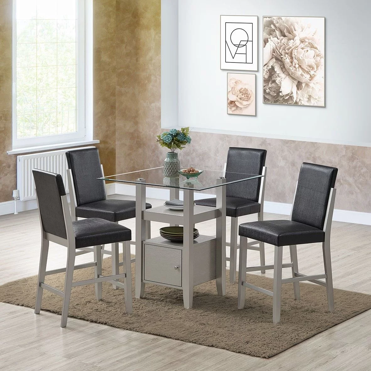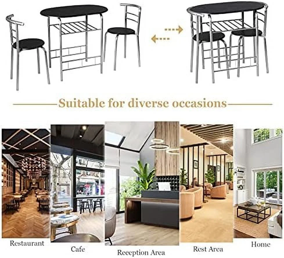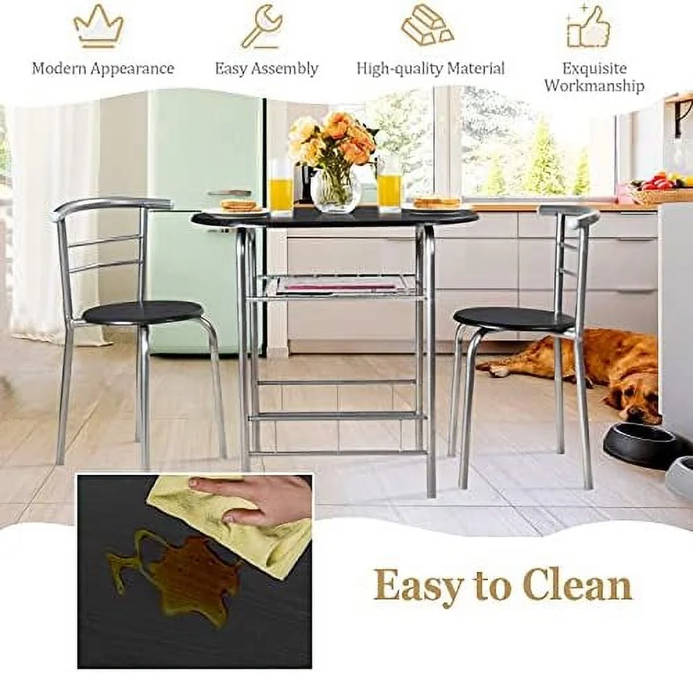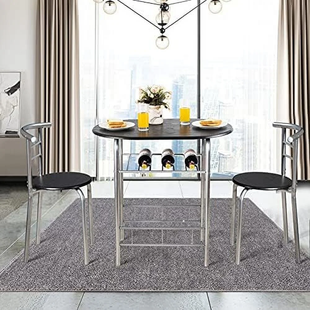 TJUNBOLIFE 3 Piece Dining Table Set for 2 Modern Round Table Set with 2 Stools Pub Table and Chairs Dining Set with Built in Layer Space Saving for Kitchen Apartment and Dining Room