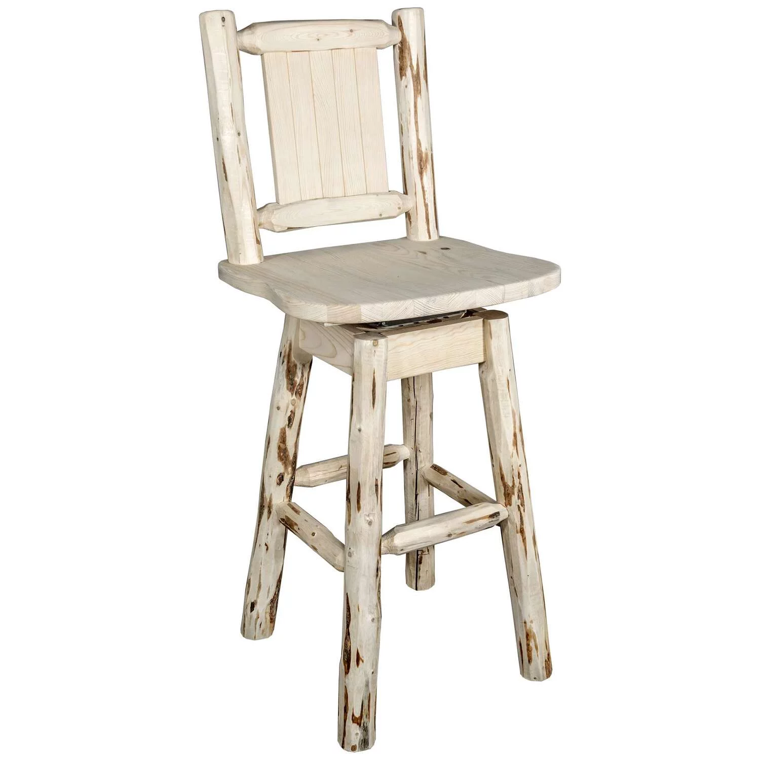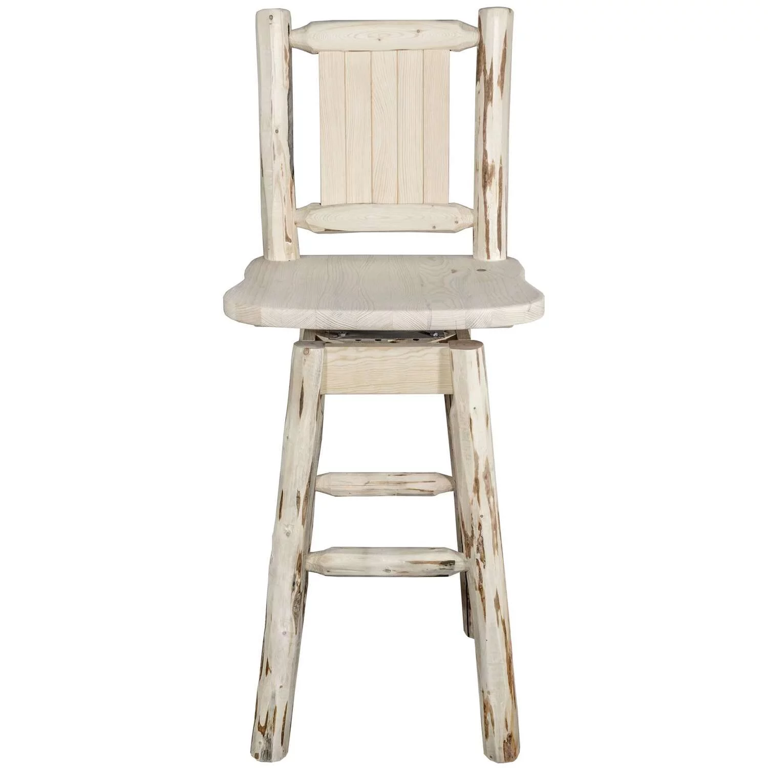Montana Woodworks 24" Wood Swivel Barstool with Pine Tree Design in Natural