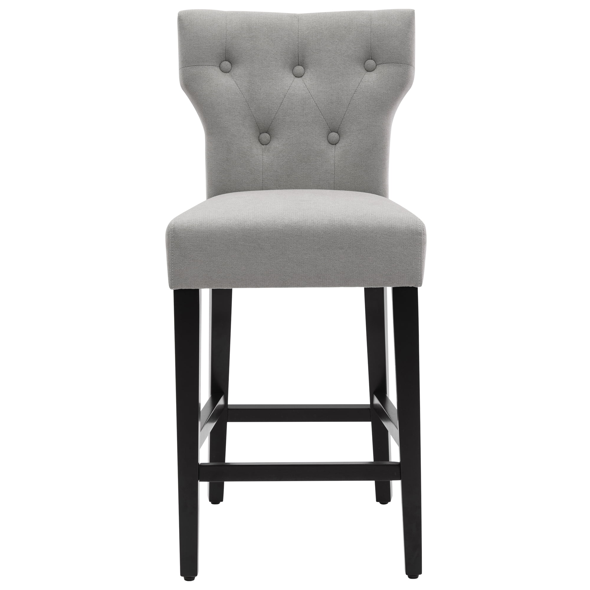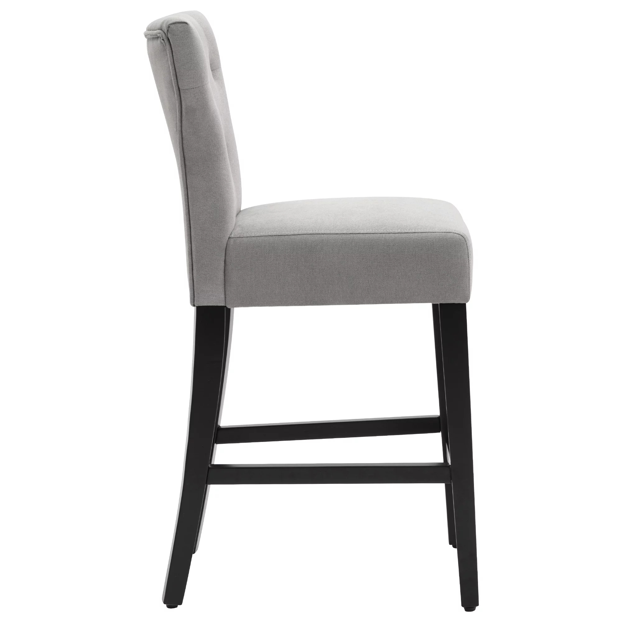 Modern Counter Height Wood and Fabric Bar Chair, Tall Wingback Style Bar Stool, Set of 2, Gray