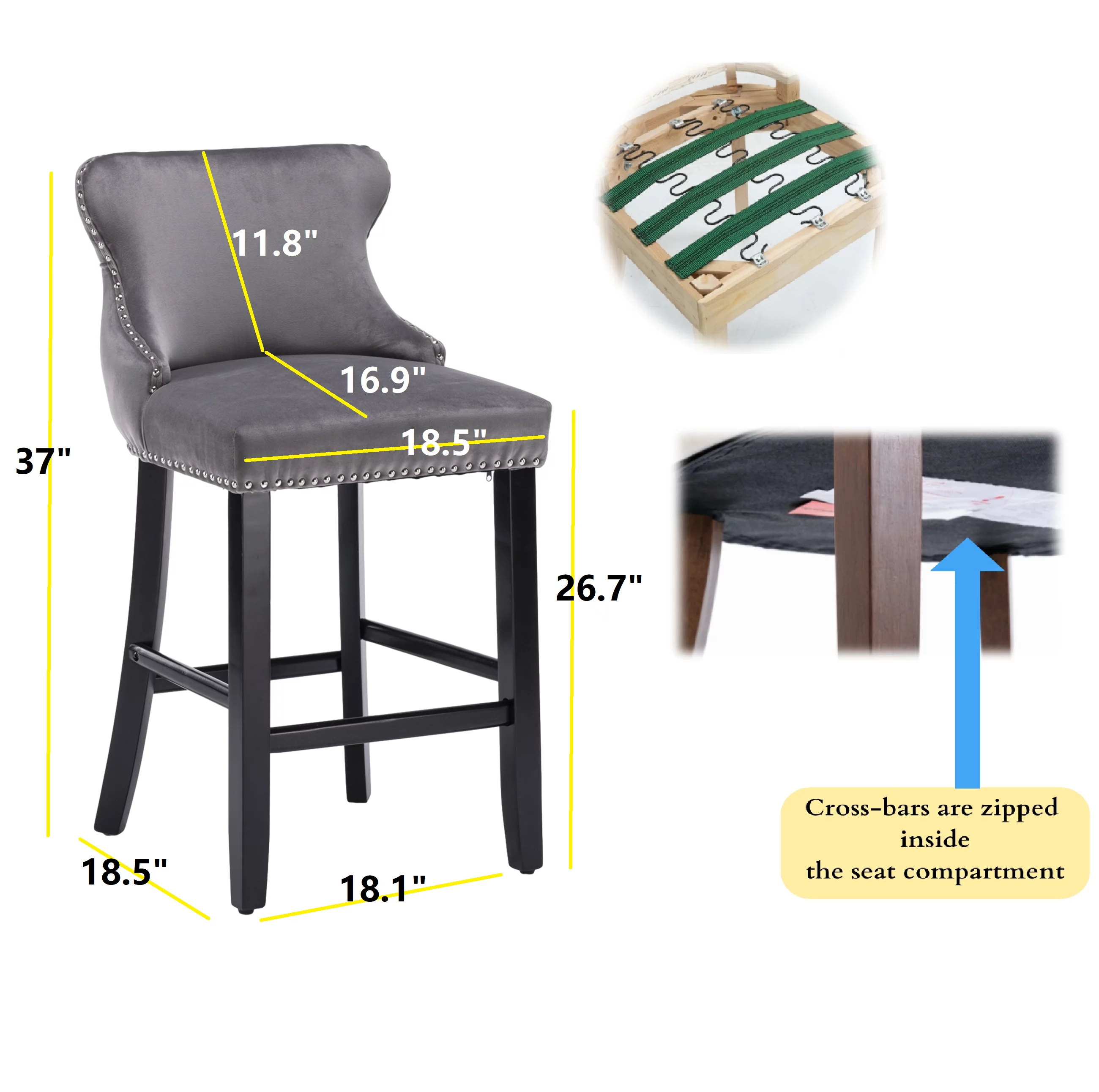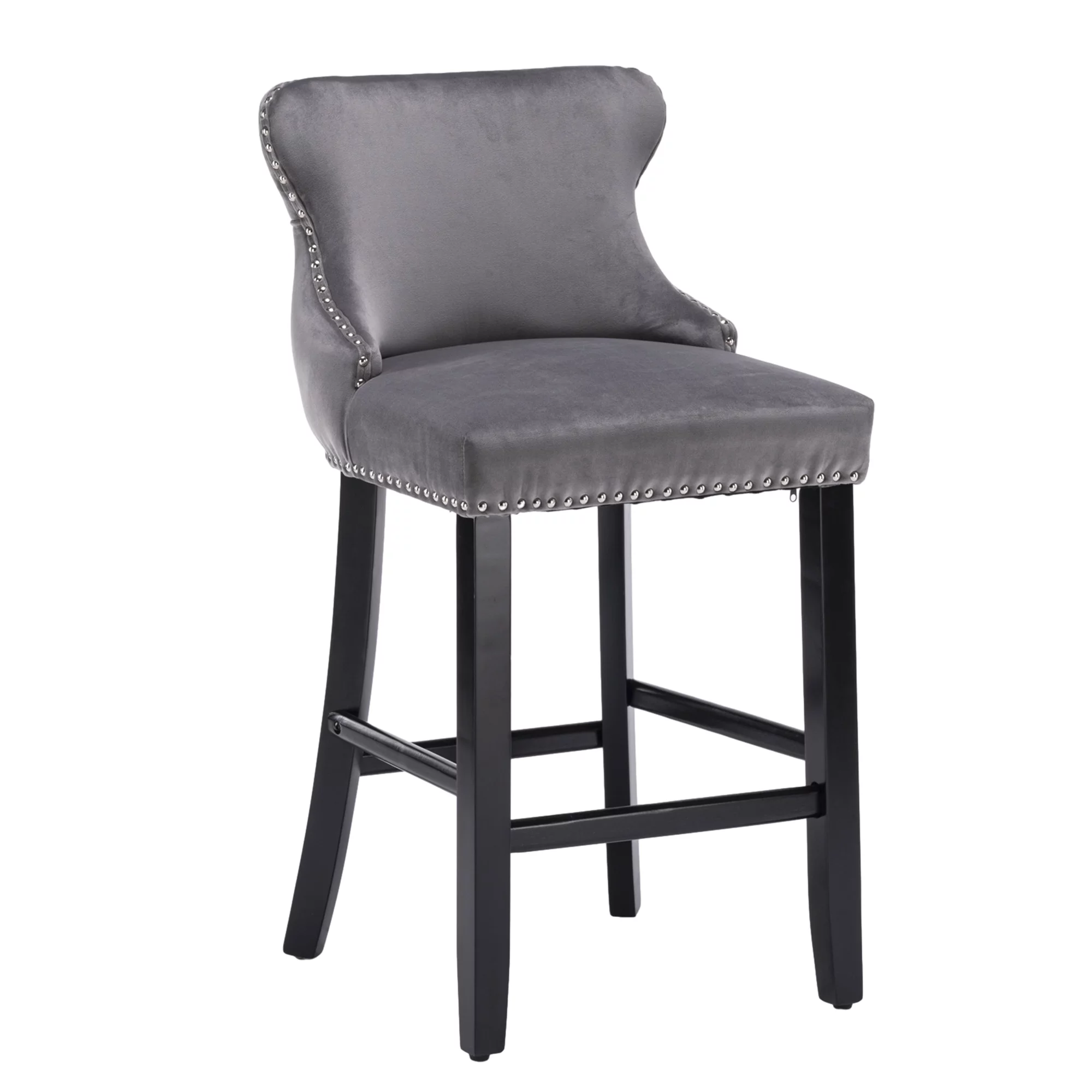 Set of 6 Wingback Upholstered Bar Stools with Nailhead Trim, Velvet Fabric Side Dining Room Chairs with Tufted Button, Living Room Chairs Counter Bar Stools Home Kitchen Island (Grey)
