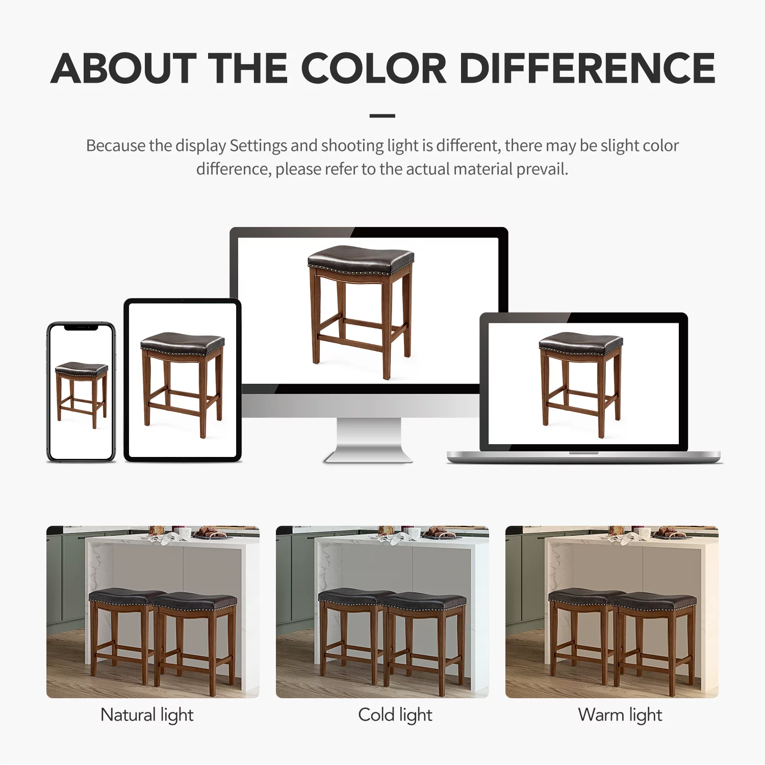 Counter Height Bar Stools with Footrest 26-Inch Backless Bar Stools,Upholstered Wooden Bar Stool,Set of 2,Walnut