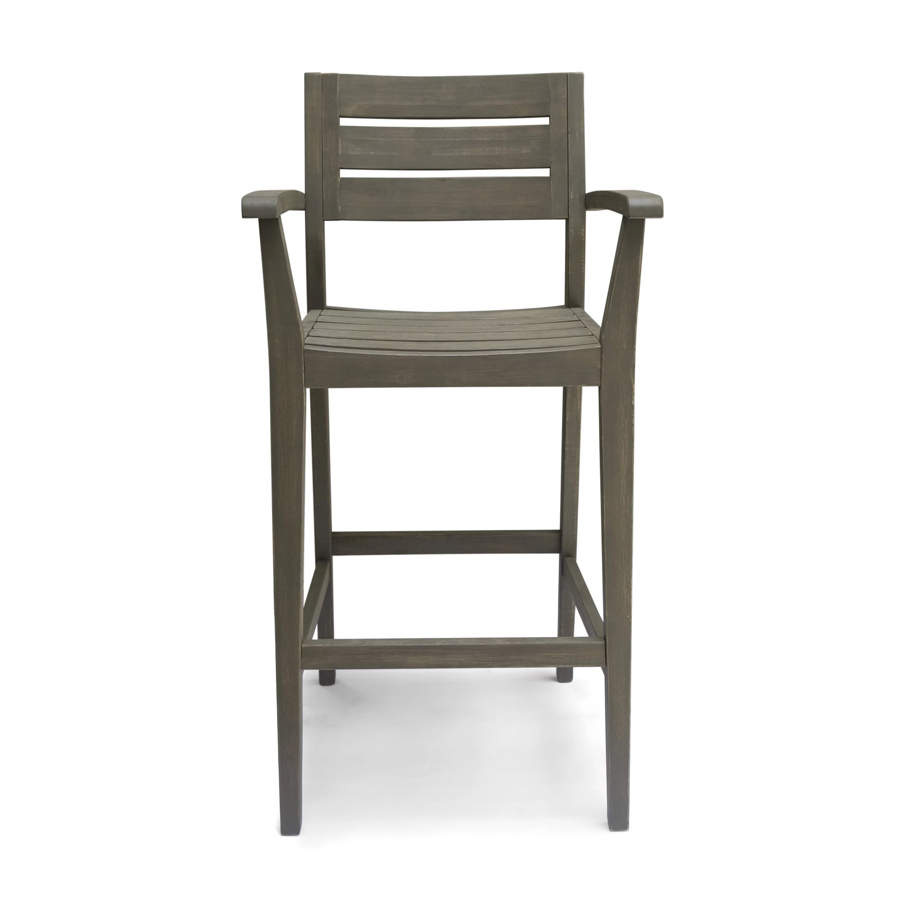 Jaxson Outdoor Rustic Acacia Wood Barstool (Set of 2), Gray
