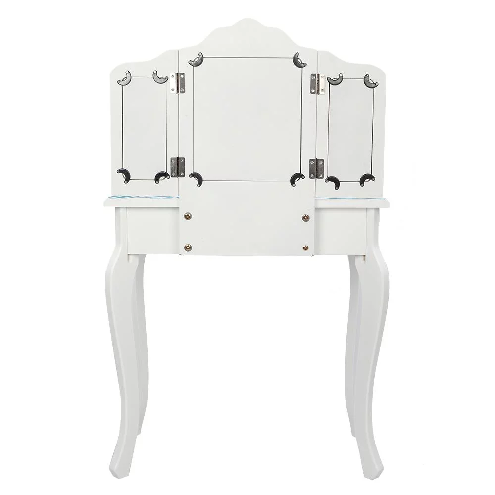Winado Kids Vanity Table Set, Princess Wooden Dressing Table and Stool Vanity Set, Little Girls Pretend Beauty Makeup Playset w/Mirror & Stool,Blue
