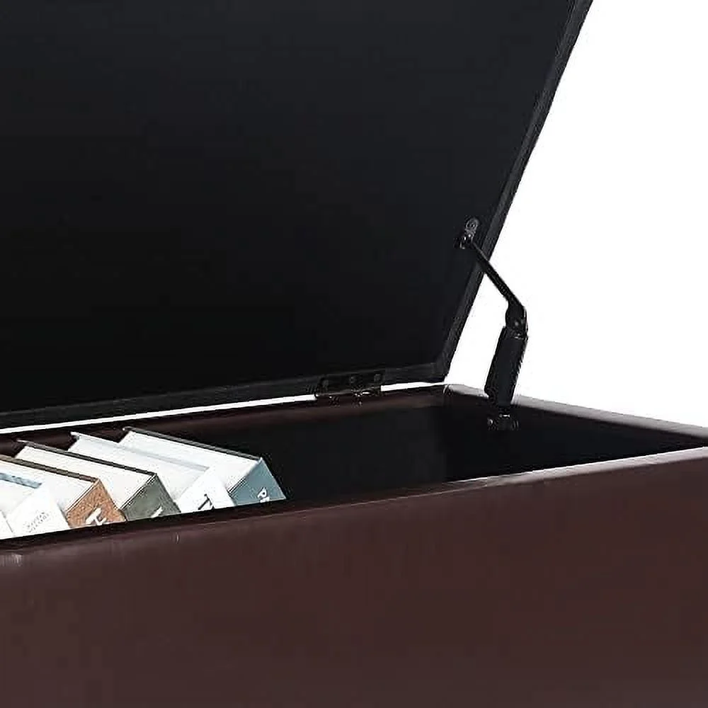 Leatheaire Ottoman Bench Rectangular Footstool Coffee Table with Lift Tabletop (Blue)