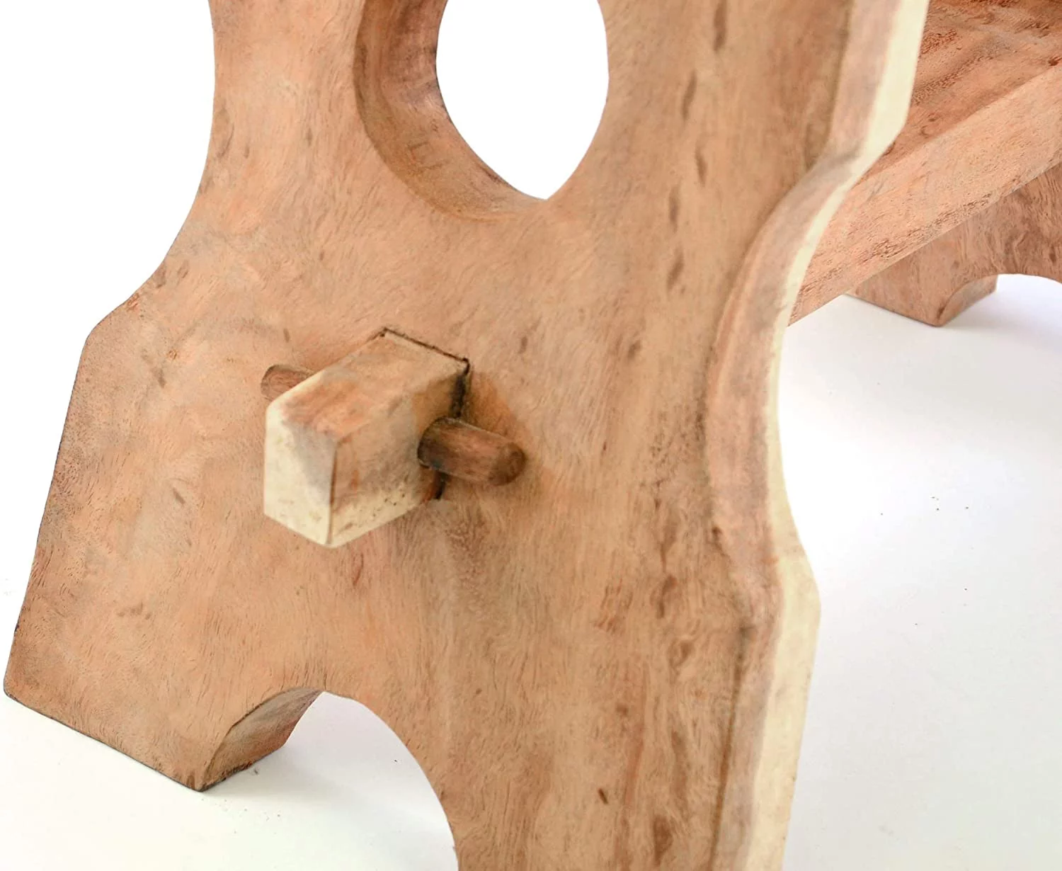 18" Solid Wood Shower Stool Footstool Foot Rest Stool Bench, for Bathroom Kitchen Living Room Bedroom Entryway, Fully Assembled (Suar Wood)