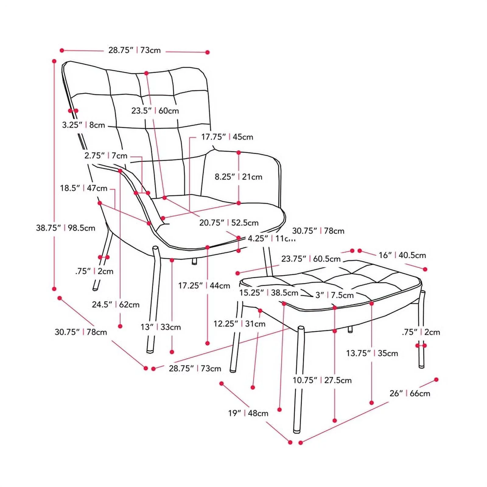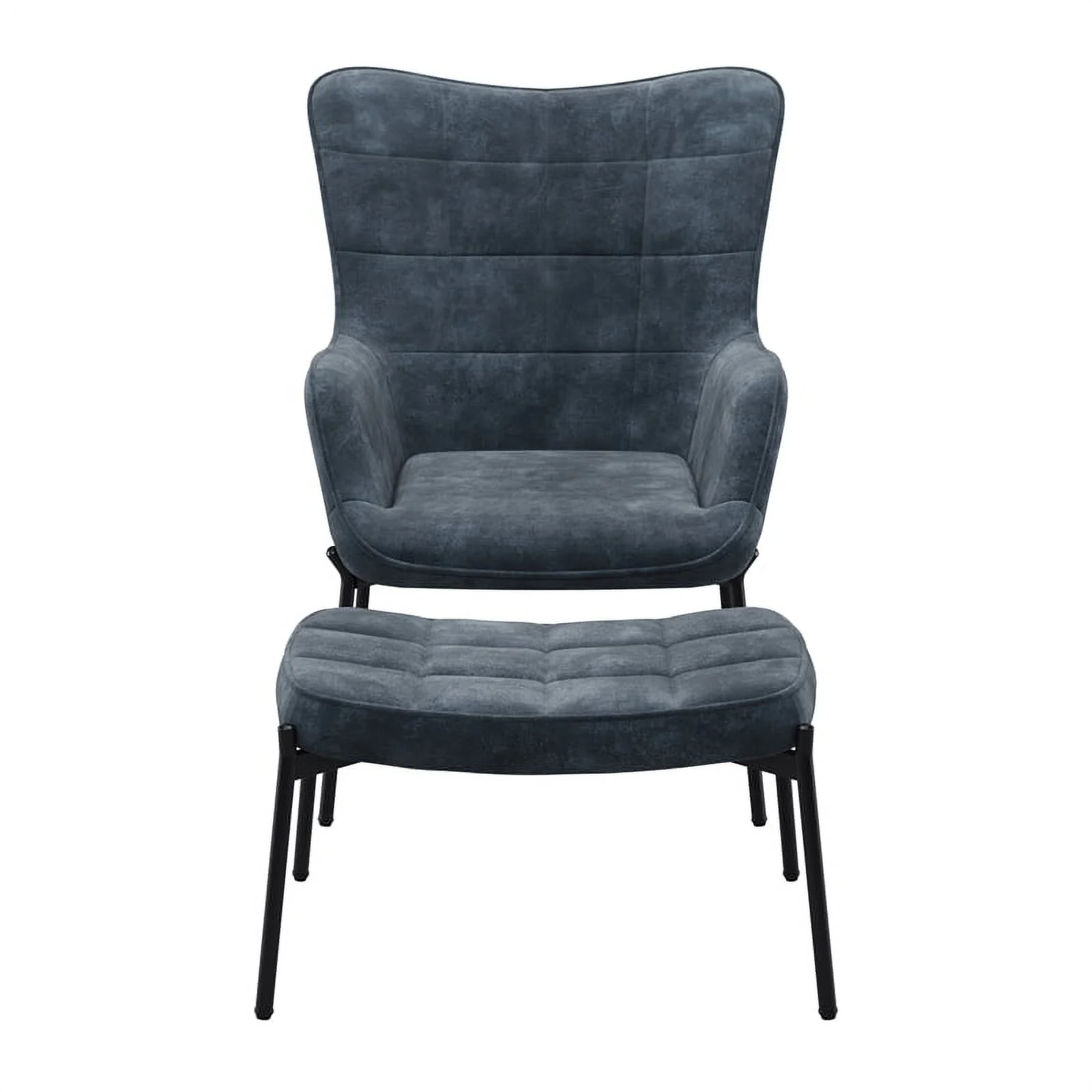 Charlotte Dark Teal Blue Velvet Fabric Wingback Accent Chair with Stool