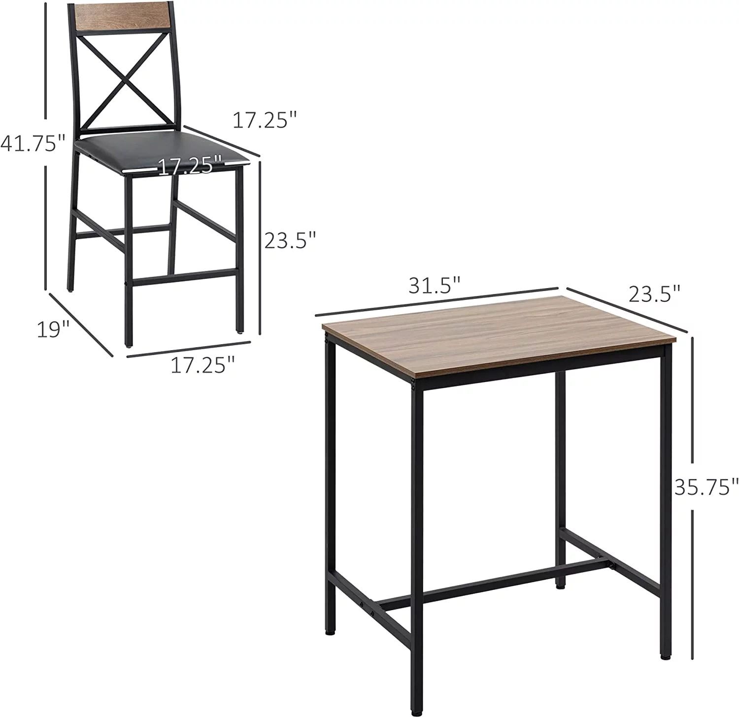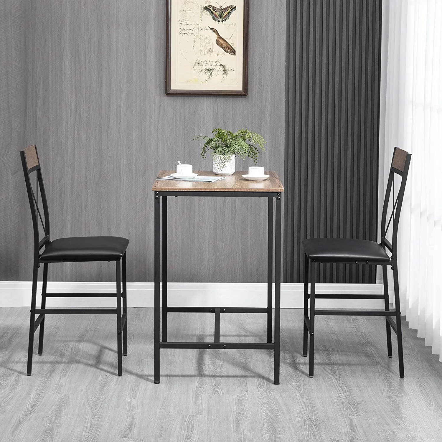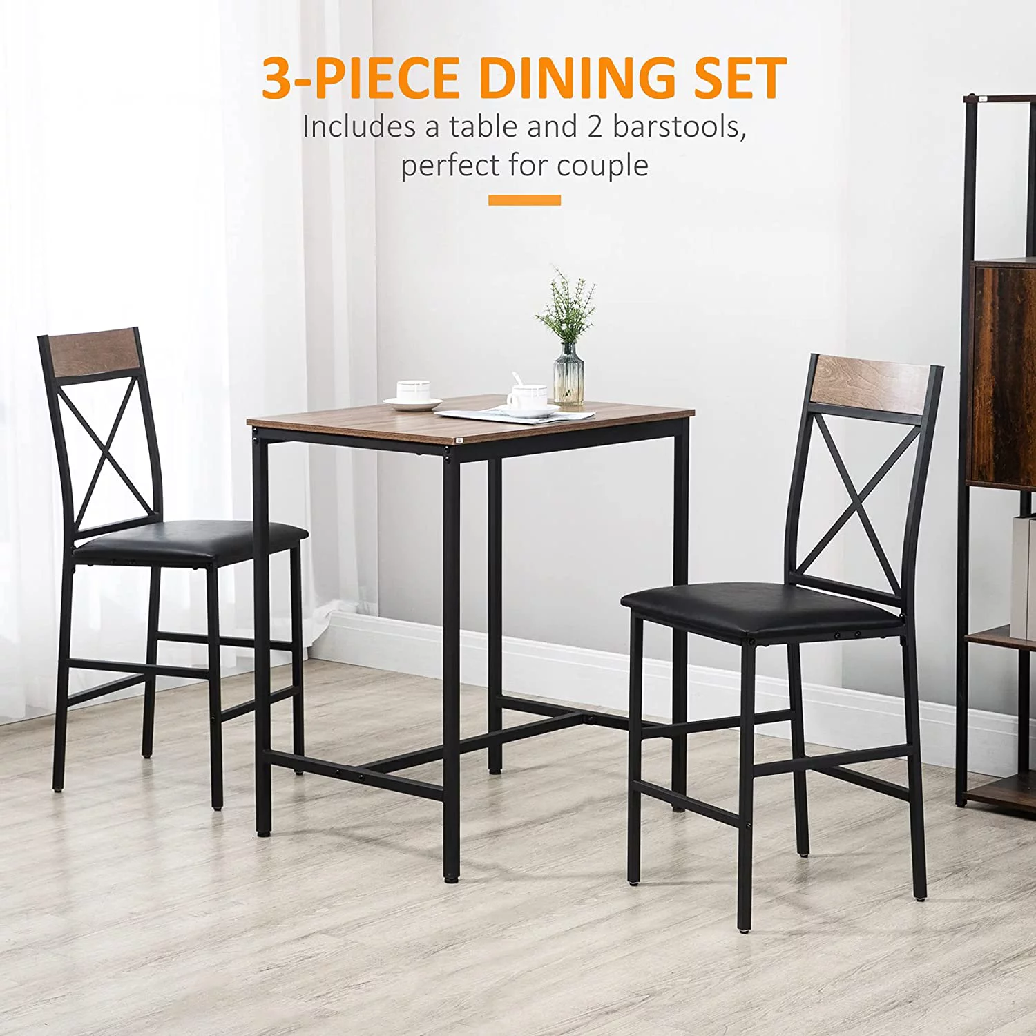 xrboomlife 3 Piece Table and Chairs Set Dining Table Set with PU Padded Stools and Steel Frame for Kitchen Small Spaces Brown