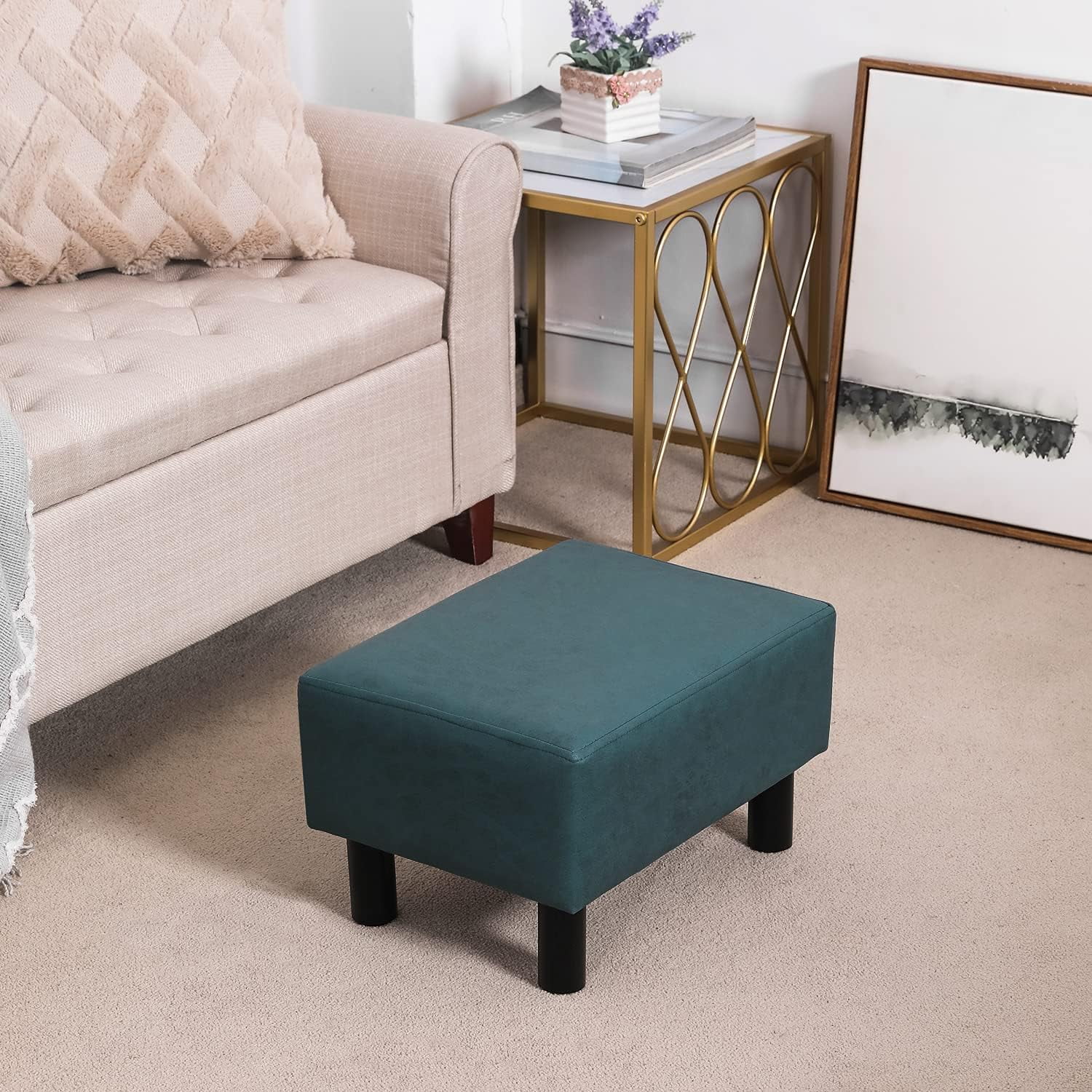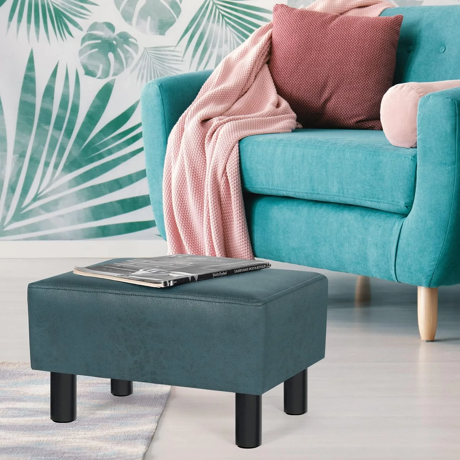 Small Footstool Ottoman Footrest Modern Rectangular Foot Stools For Living Room Bedroom (Blue)
