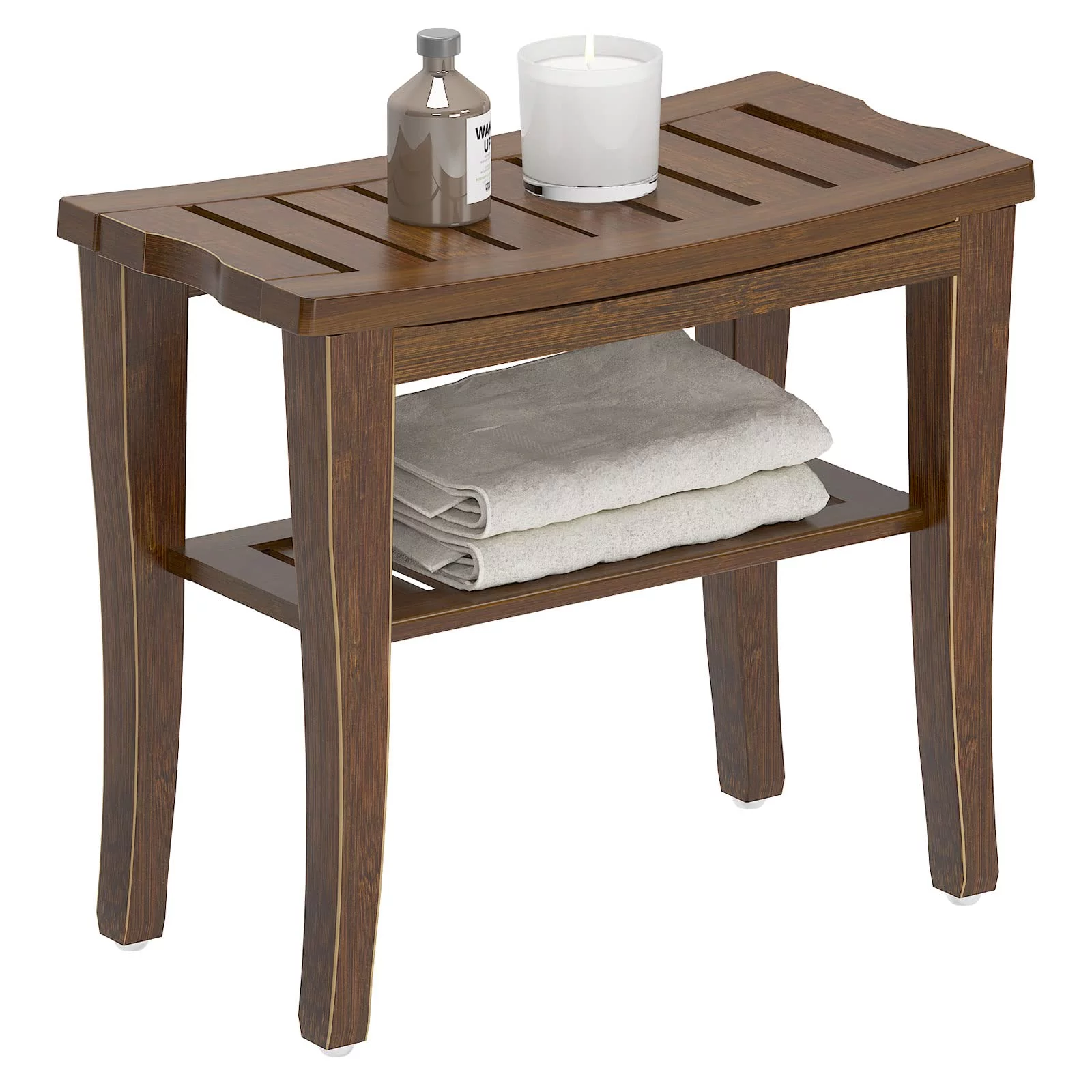 Wellynap 18.5" Bamboo Shower Bench, Bathroom Stool with Storage Shelf - Walnut