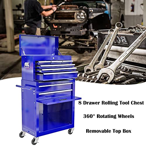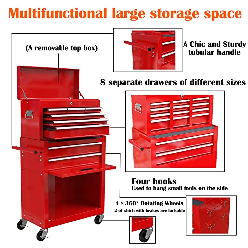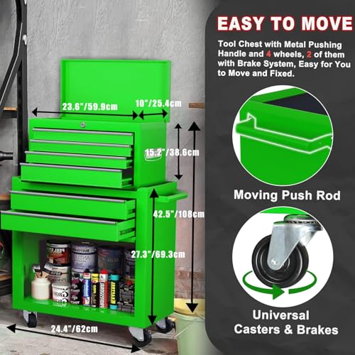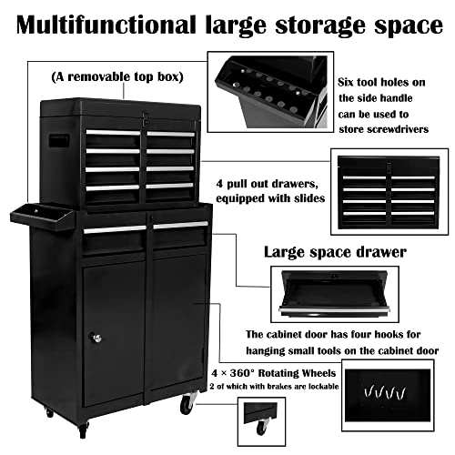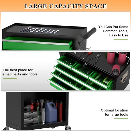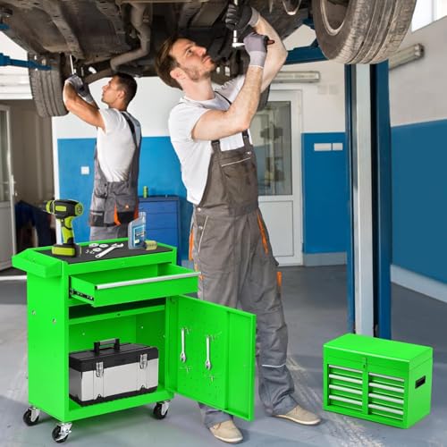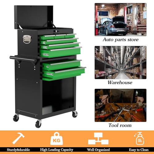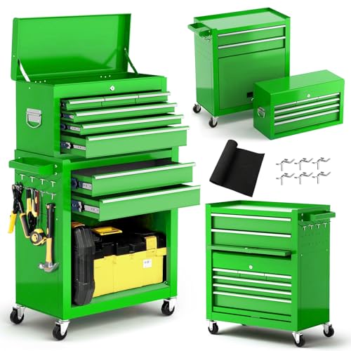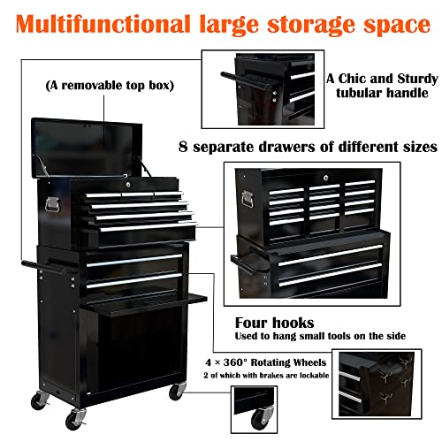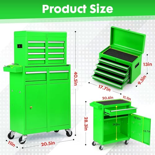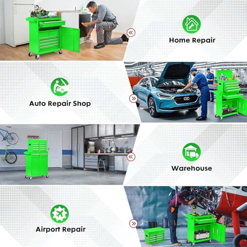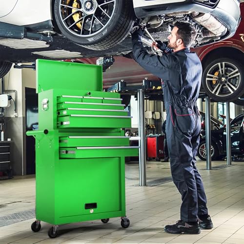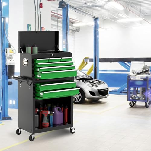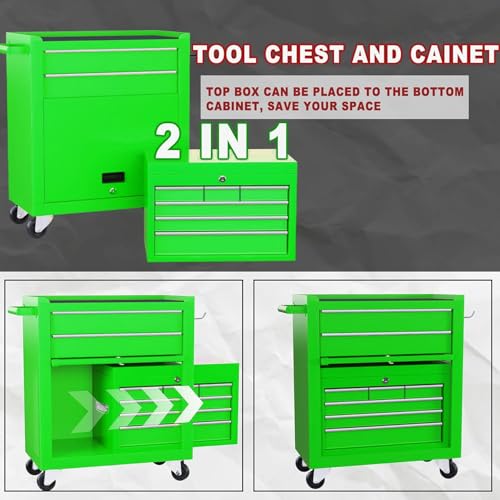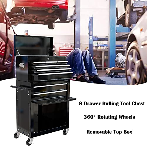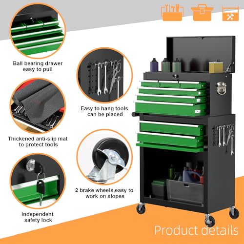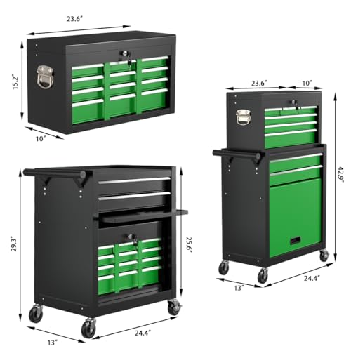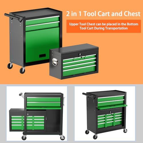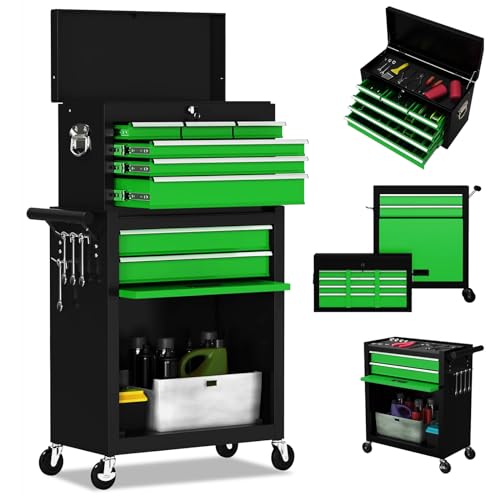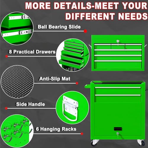8-Drawer High Capacity Rolling Tool Chest, Removable Cabinet Storage Tool Box with Wheels and Drawers, Detachable Toolbox with Lock for Workshop Mechanics Garage(Black&Green)