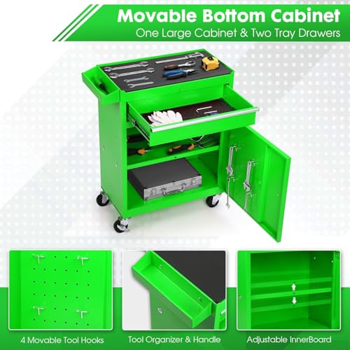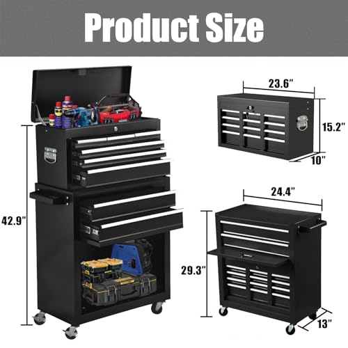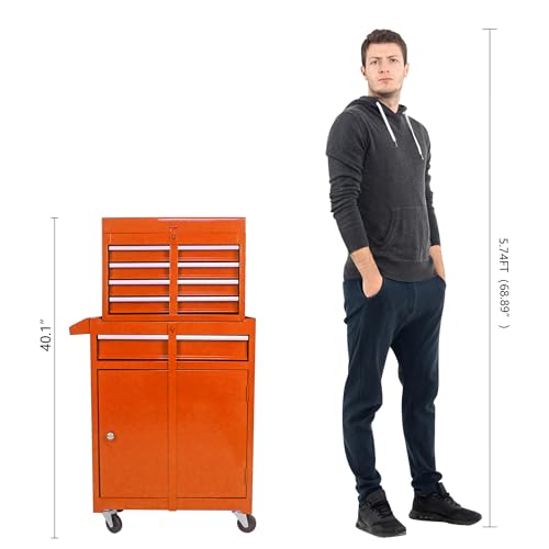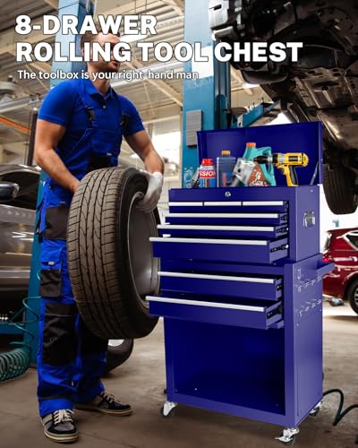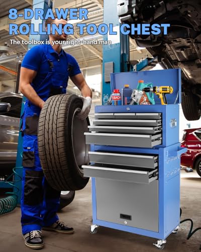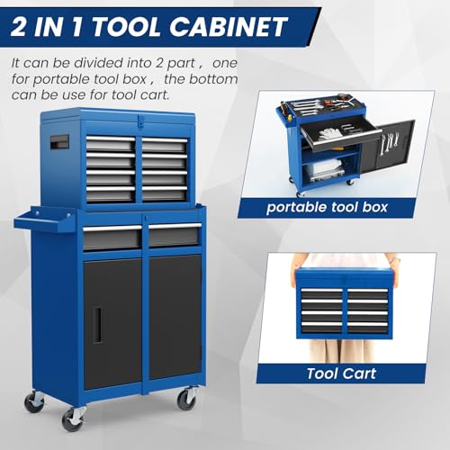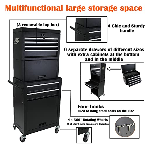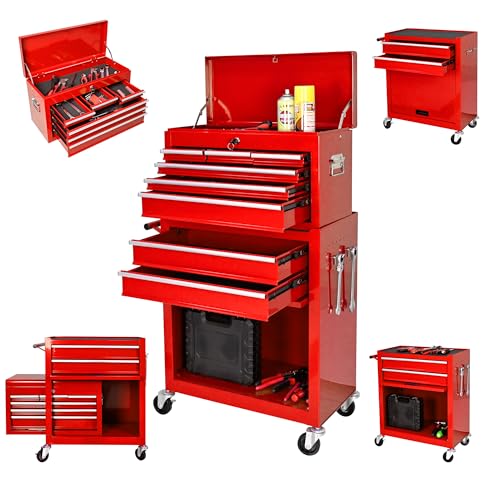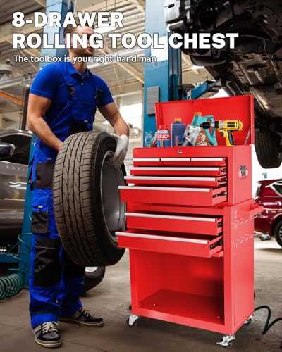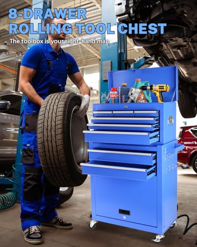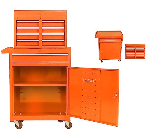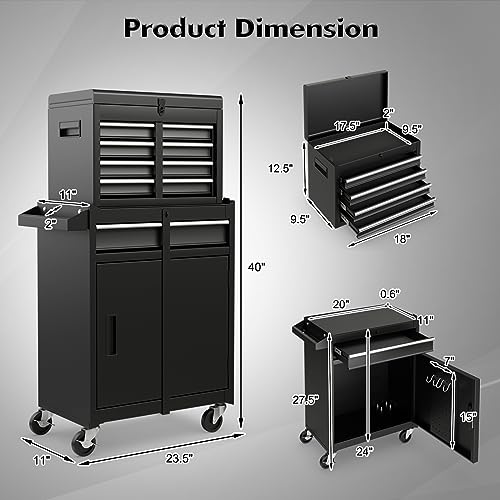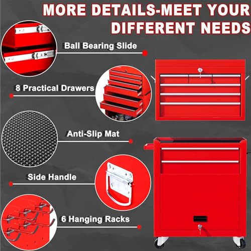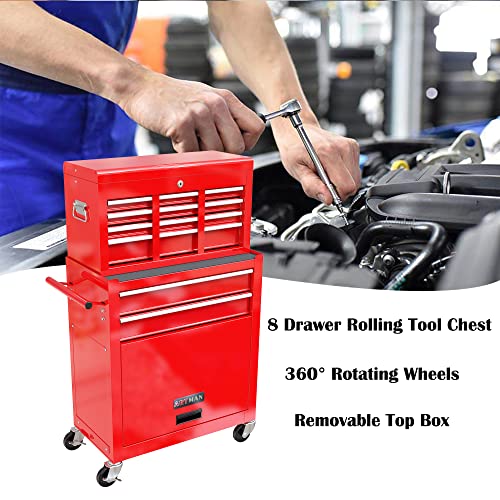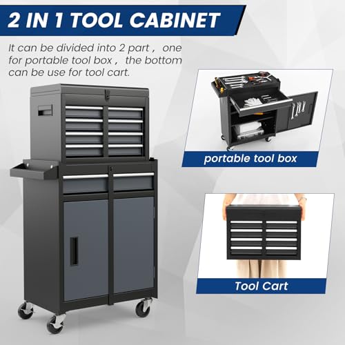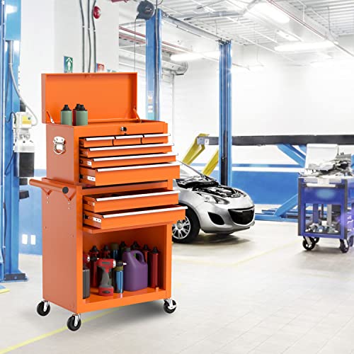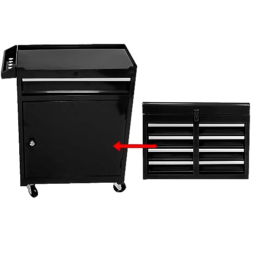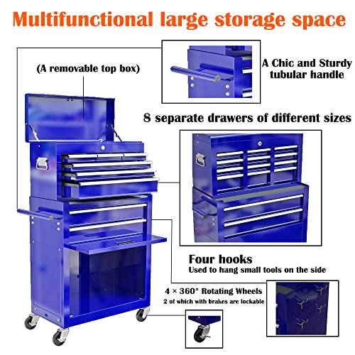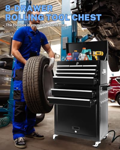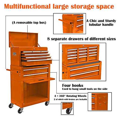 8-Drawer High Capacity Rolling Tool Chest, Removable Cabinet Storage Tool Box with Wheels and Drawers, Detachable Toolbox with Lock for Workshop Mechanics Garage(Black&Green)