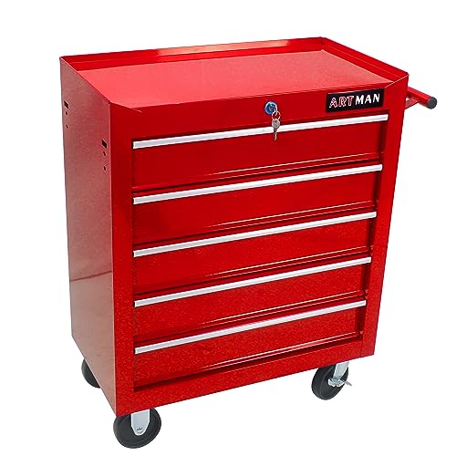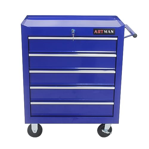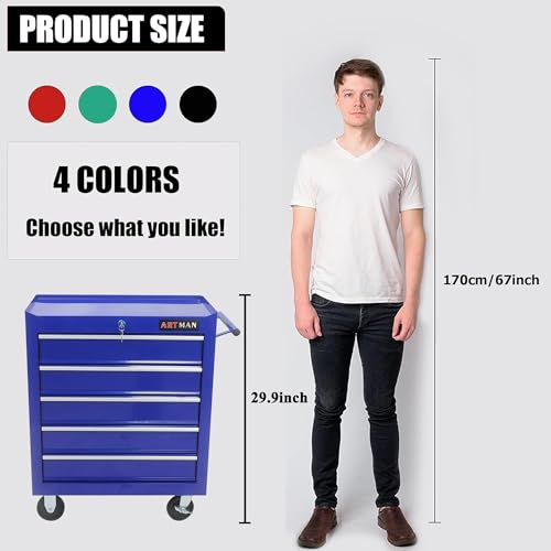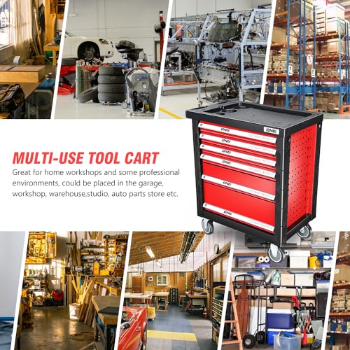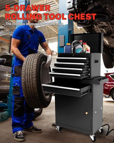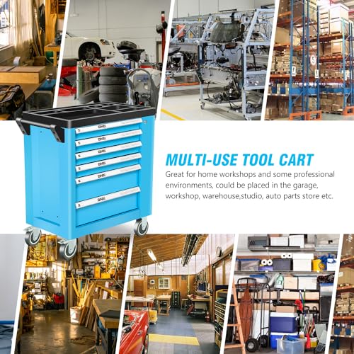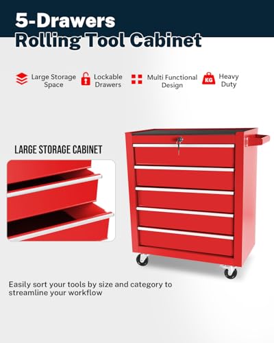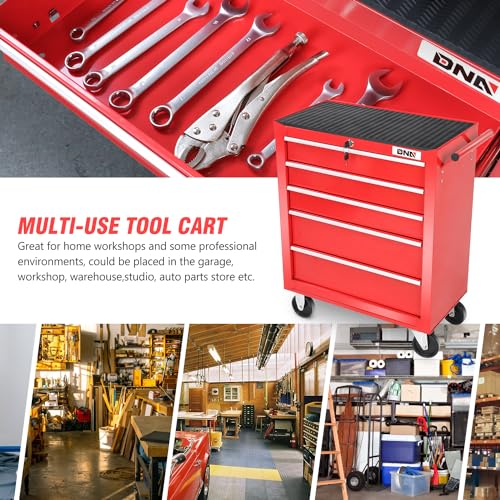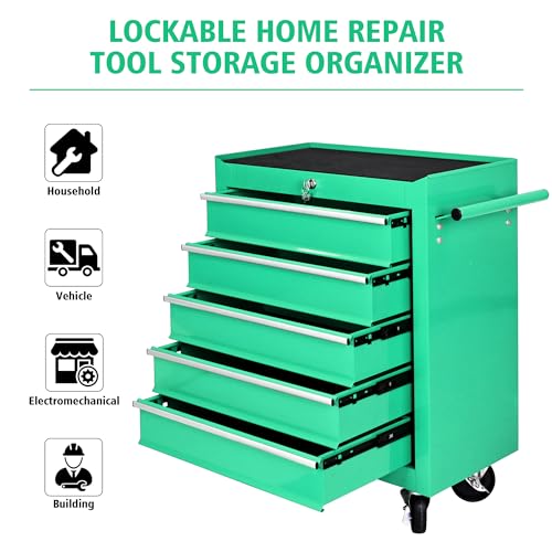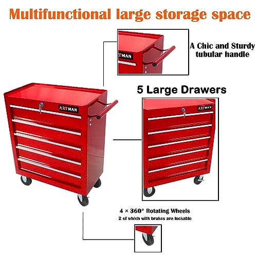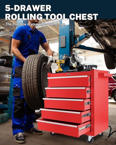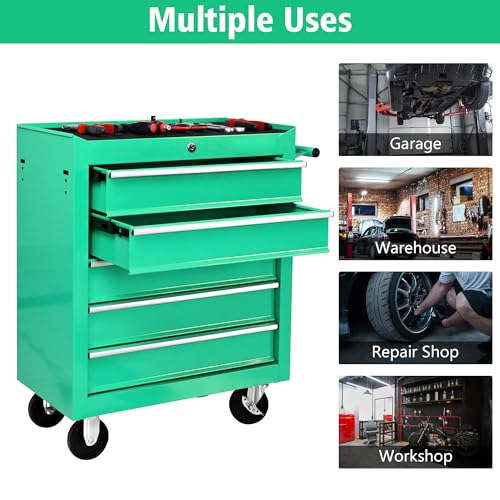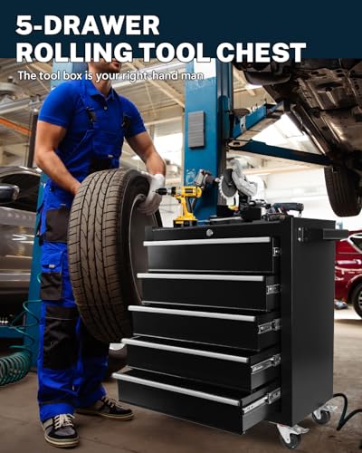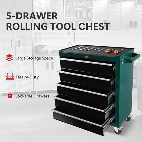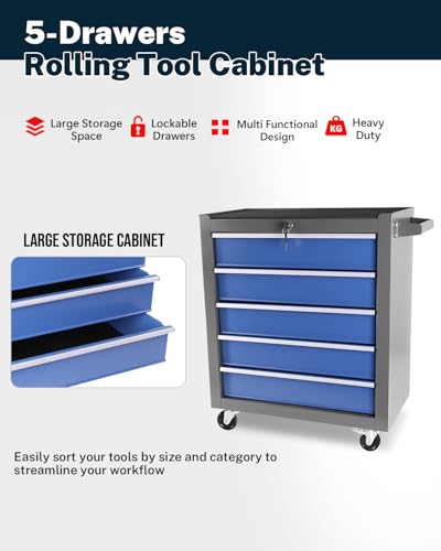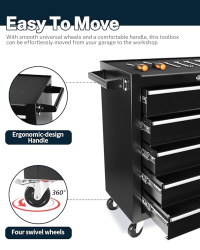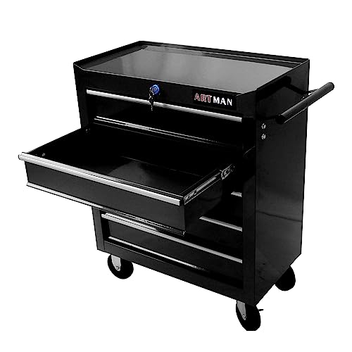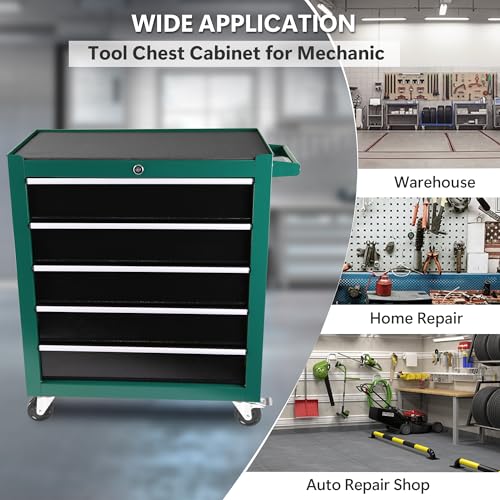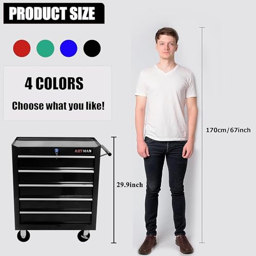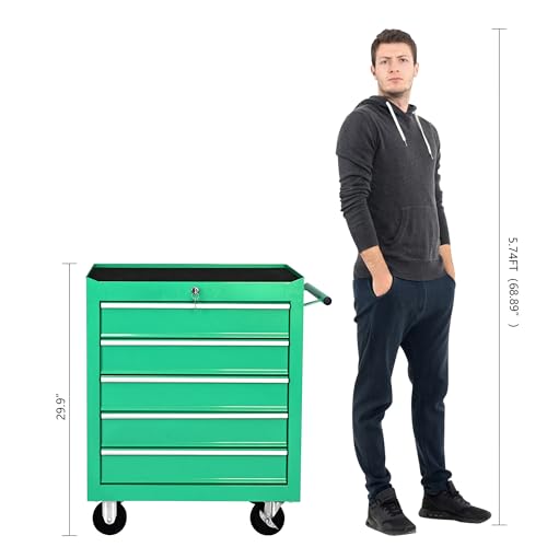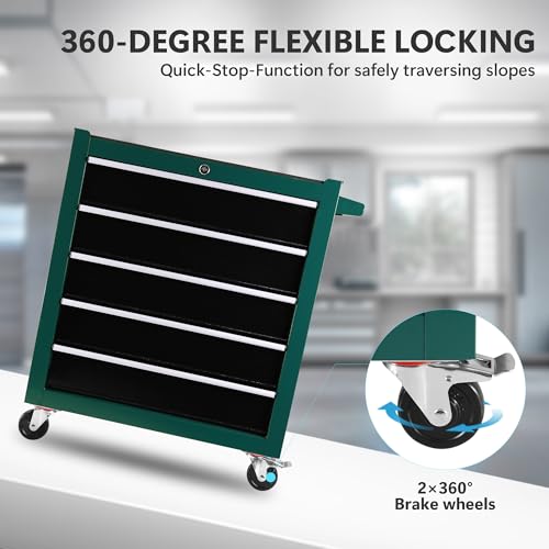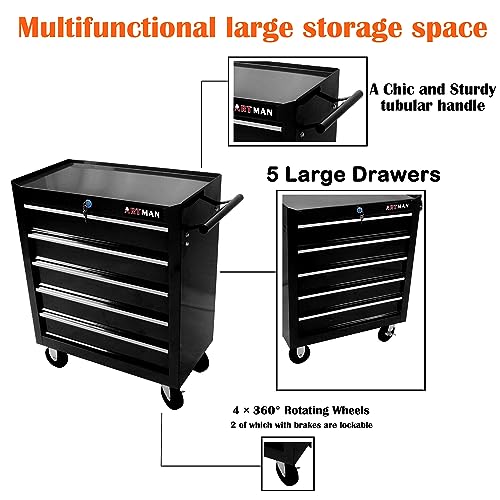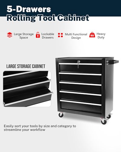 5-Drawer Tool Cart on Wheels, Rolling Tool Chest Storage, Trolley Organizer for Garage, Warehouse, Workshop, Repair Shop (5 Large Drawers-29.3"H-Black)