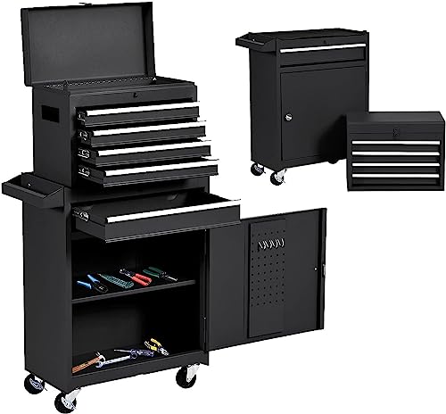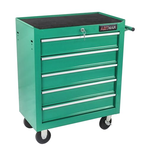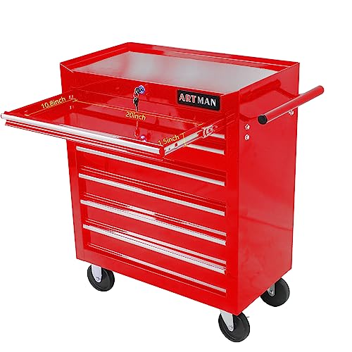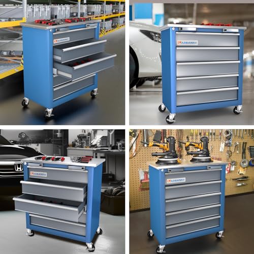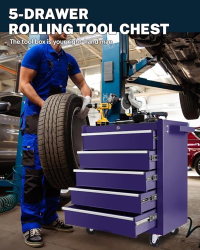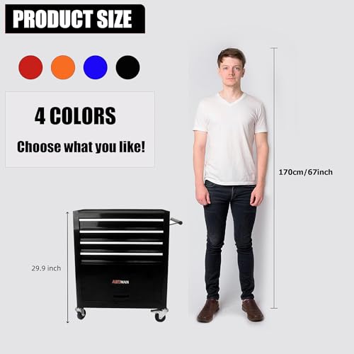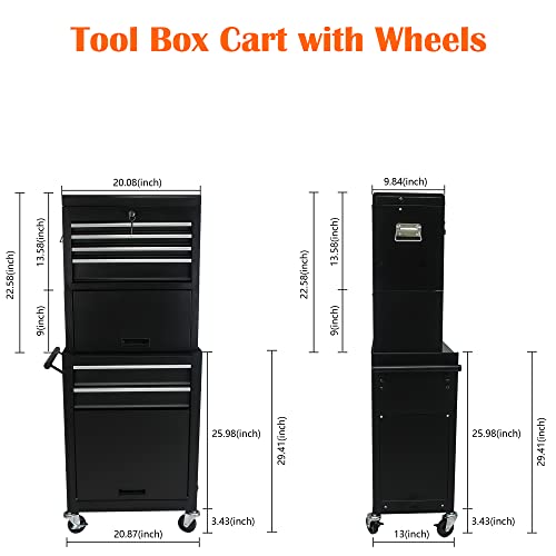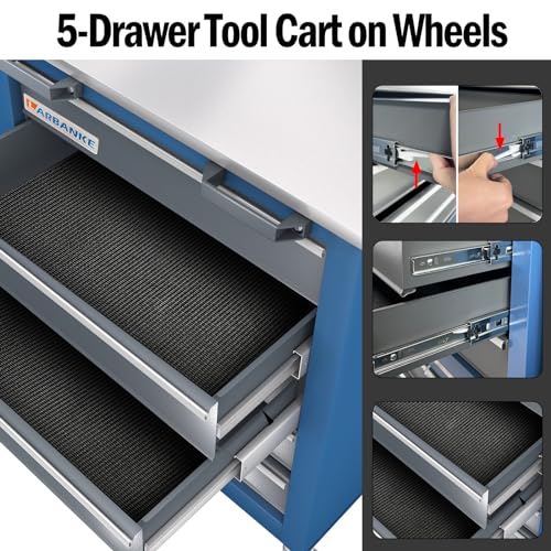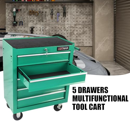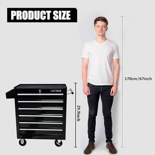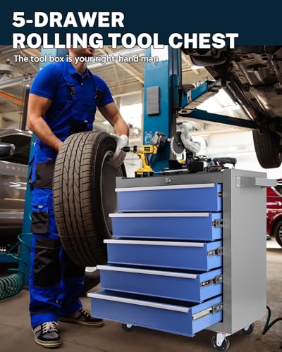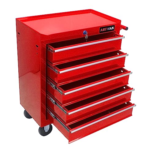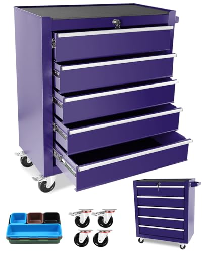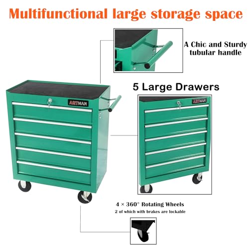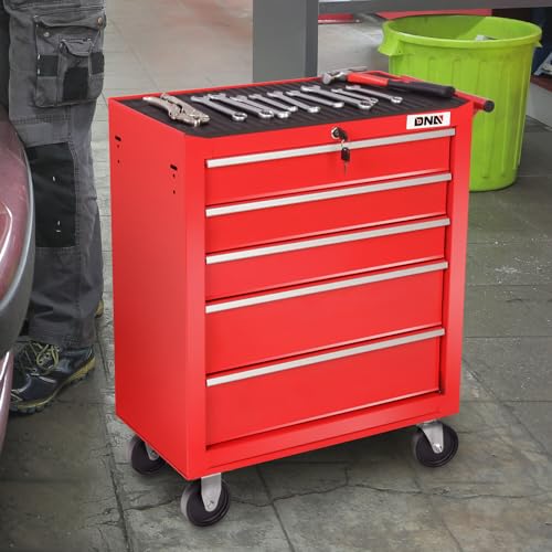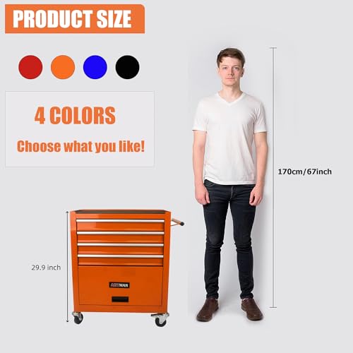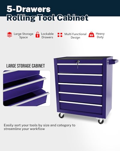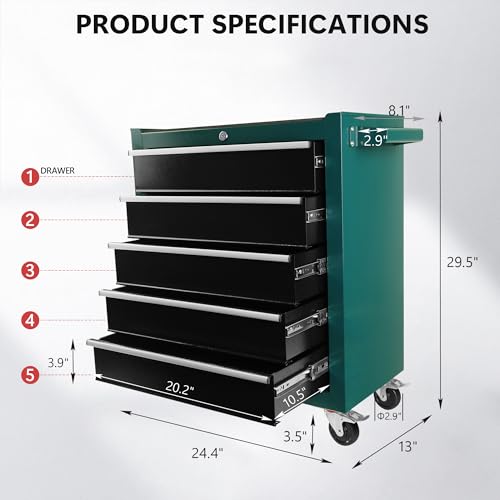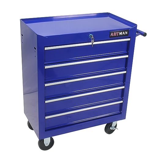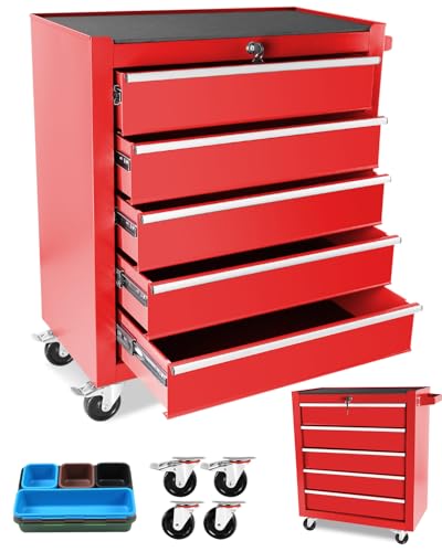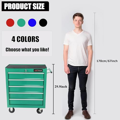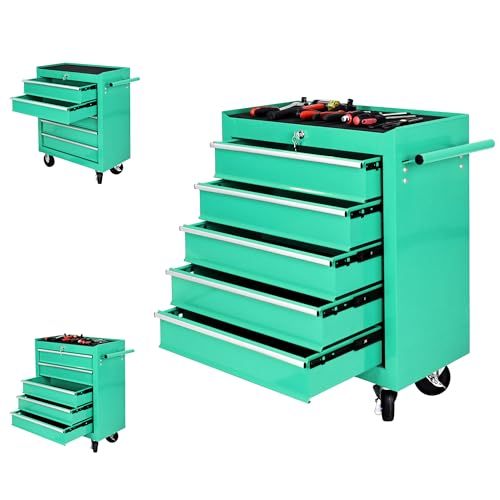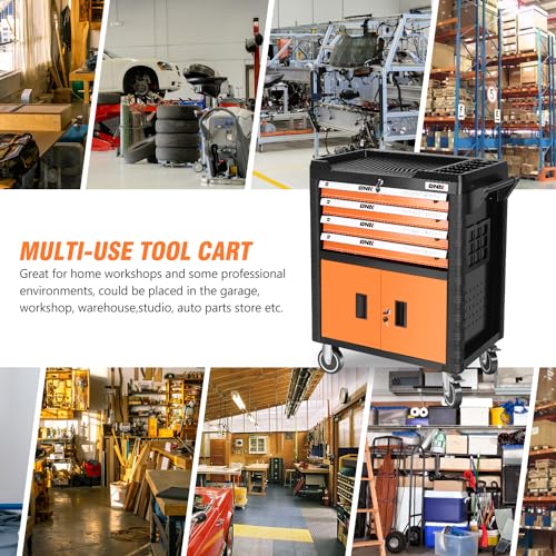 5-Drawer Tool Cart on Wheels, Rolling Tool Chest Storage, Trolley Organizer for Garage, Warehouse, Workshop, Repair Shop (5 Large Drawers-29.3"H-Black)