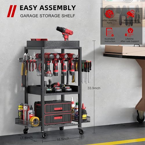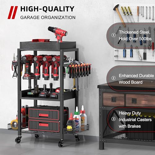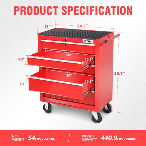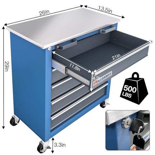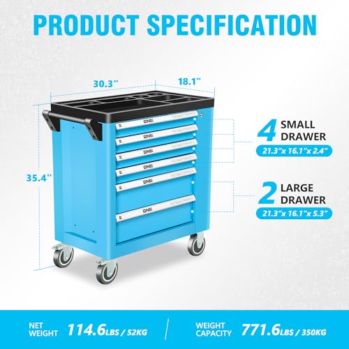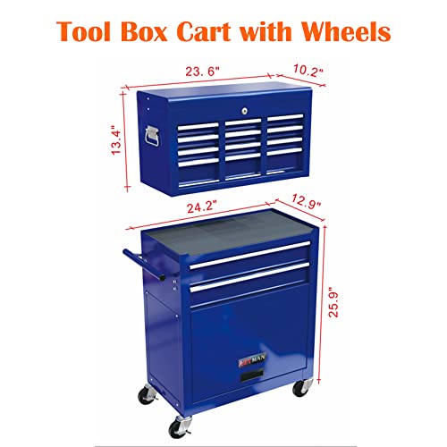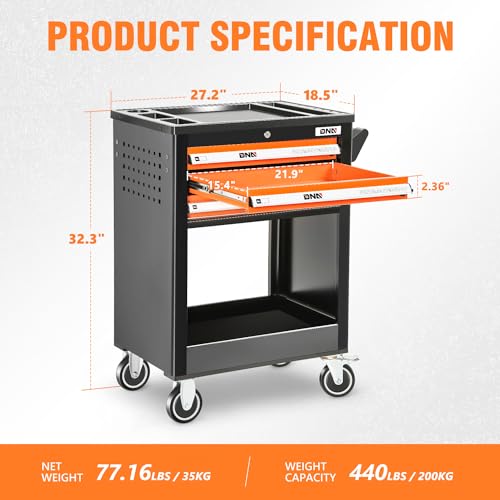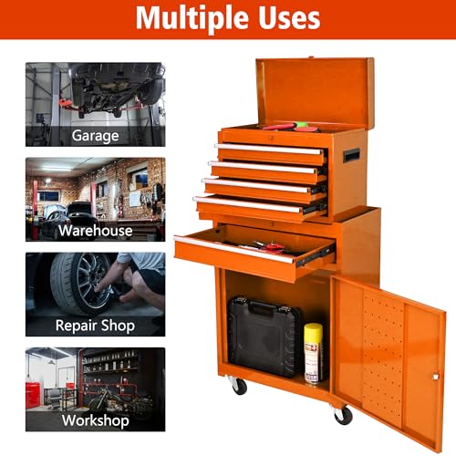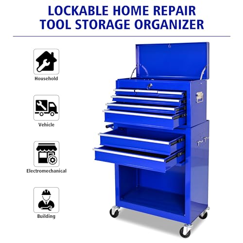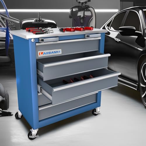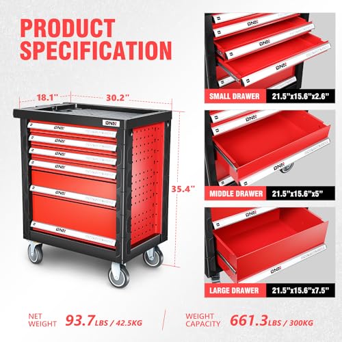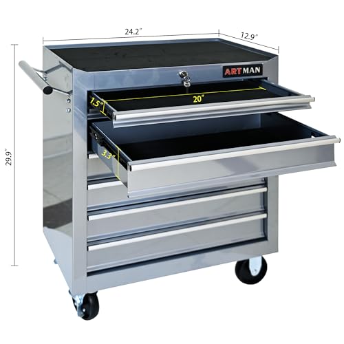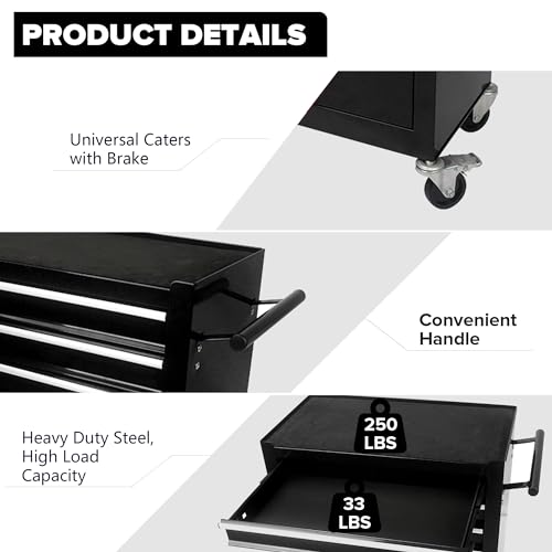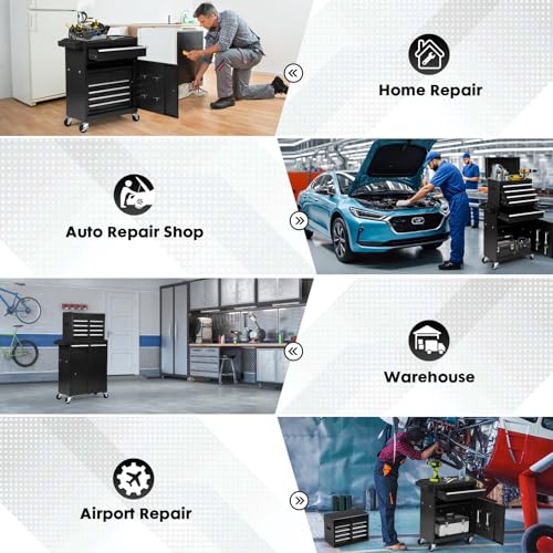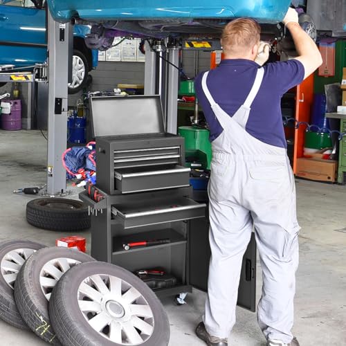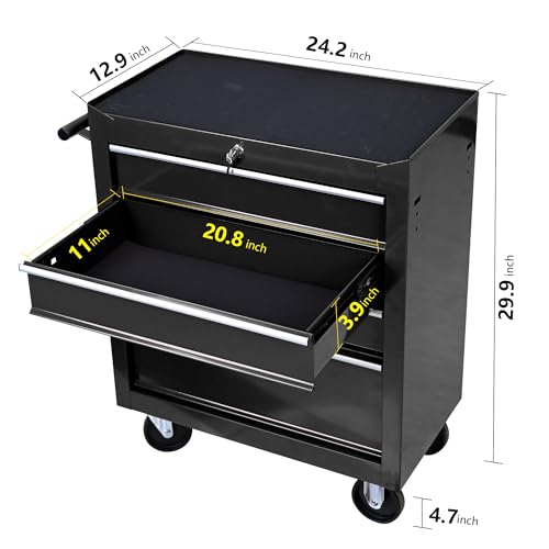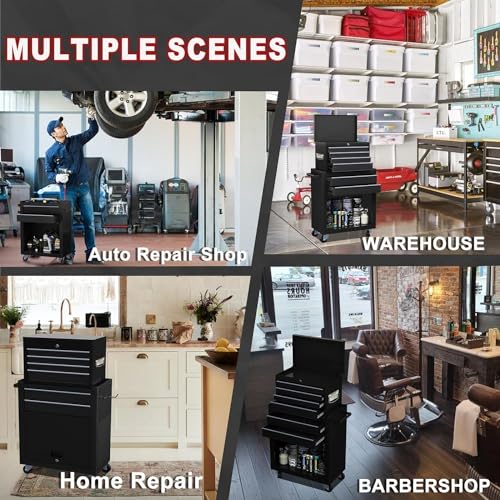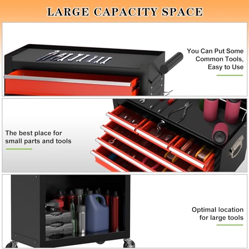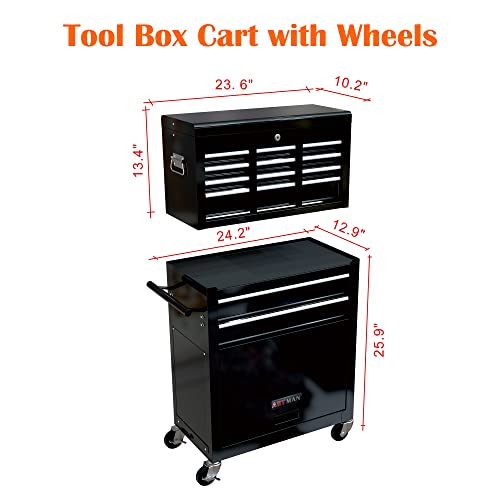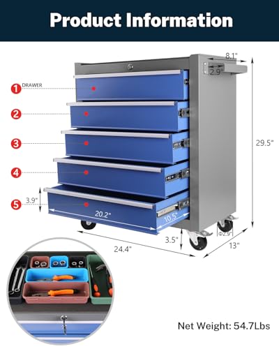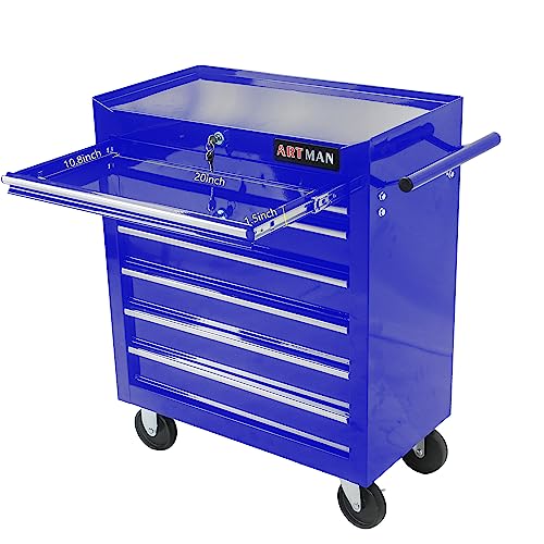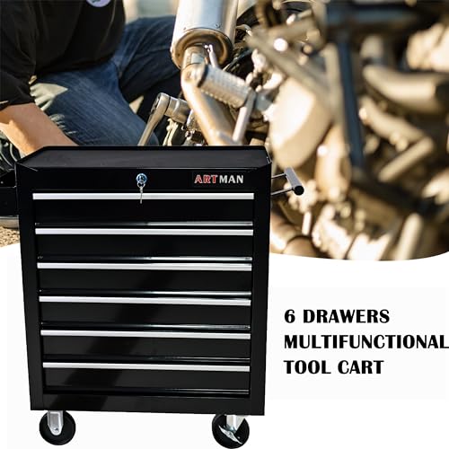 5-Drawer Tool Cart on Wheels, Rolling Tool Chest Storage, Trolley Organizer for Garage, Warehouse, Workshop, Repair Shop (5 Large Drawers-29.3"H-Black)