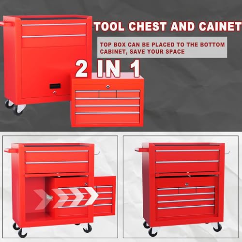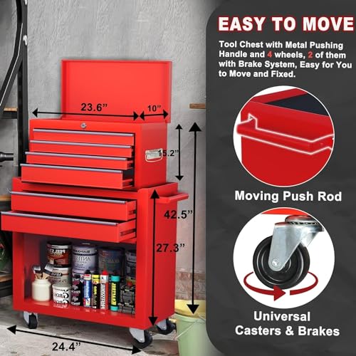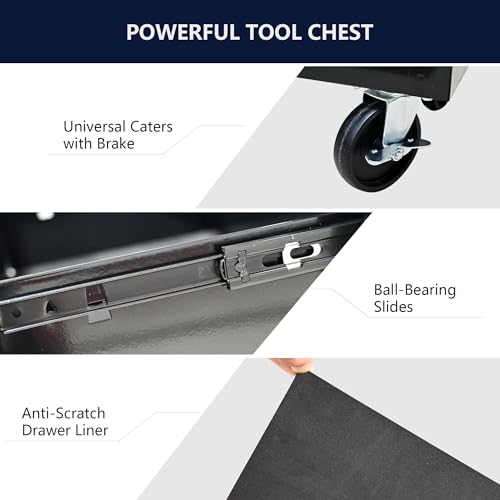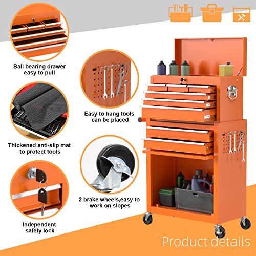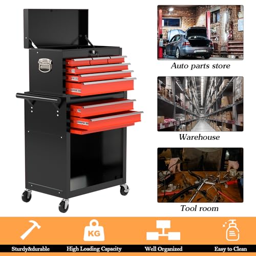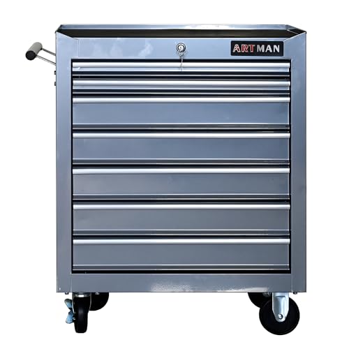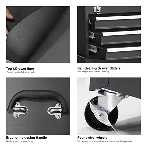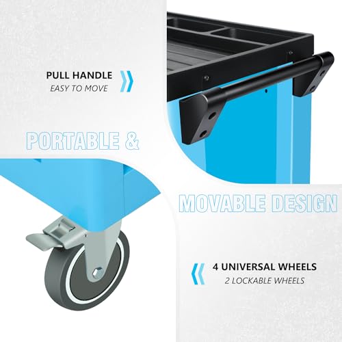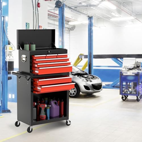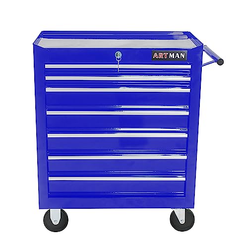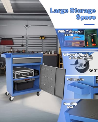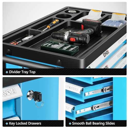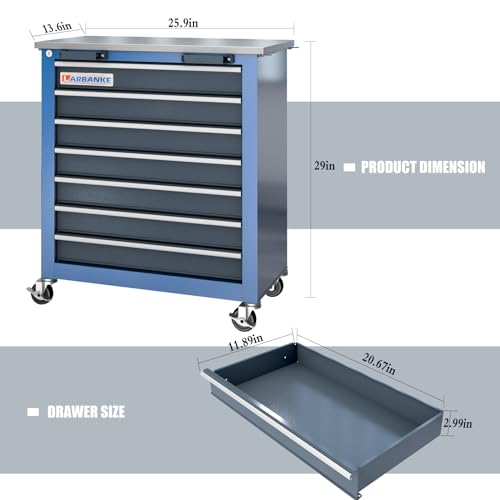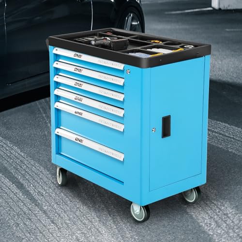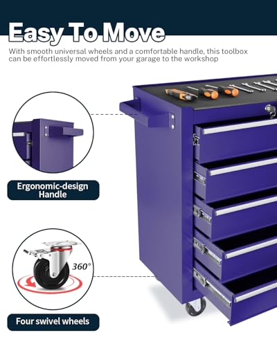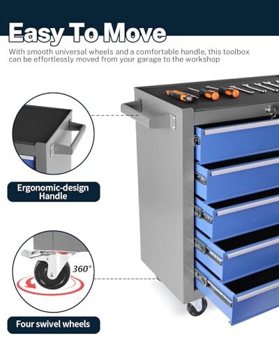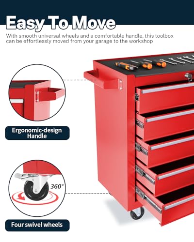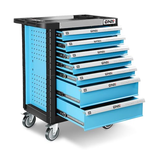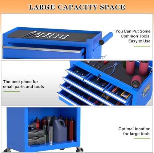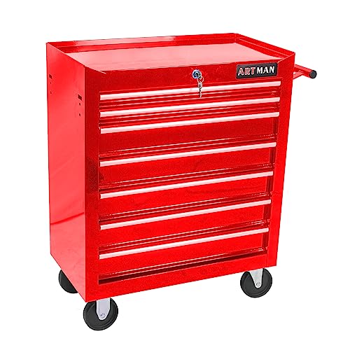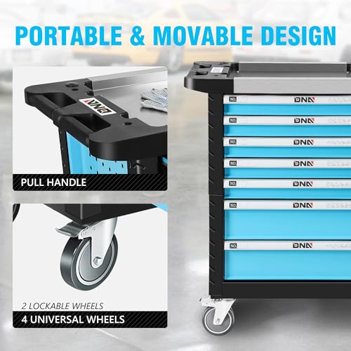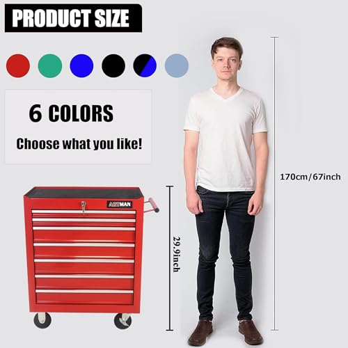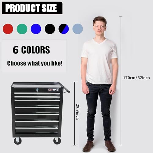 7-Drawer Rolling Toolbox,Tool Box with 360° Lockable Wheels and Padded Feet,Tool Chest with Keyed Locking System and Drawer Liners,can be Combined Storage System with Tool Chest