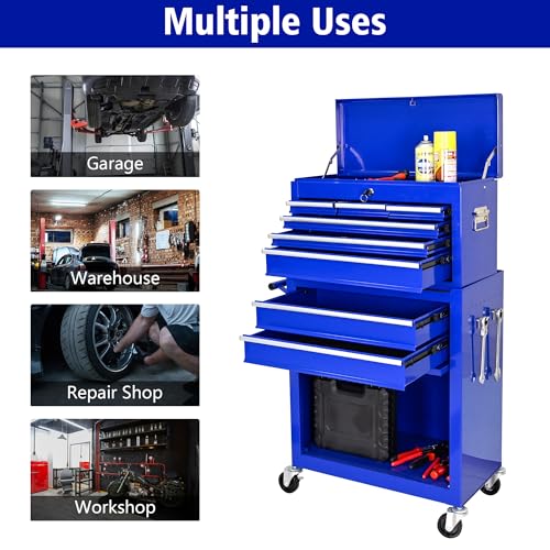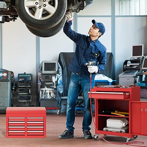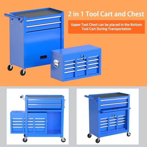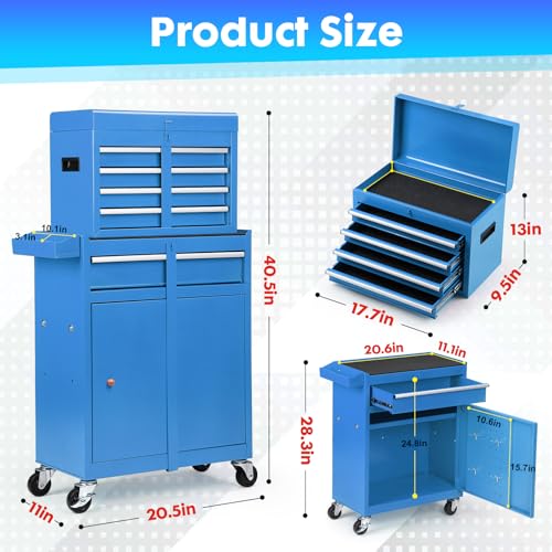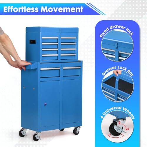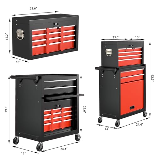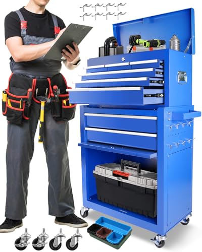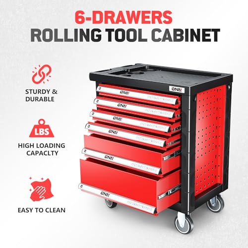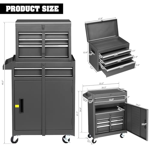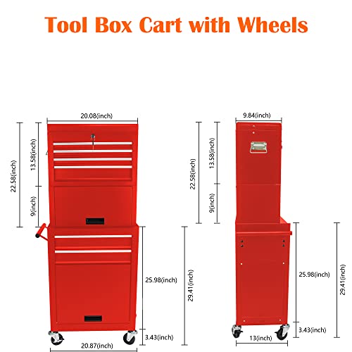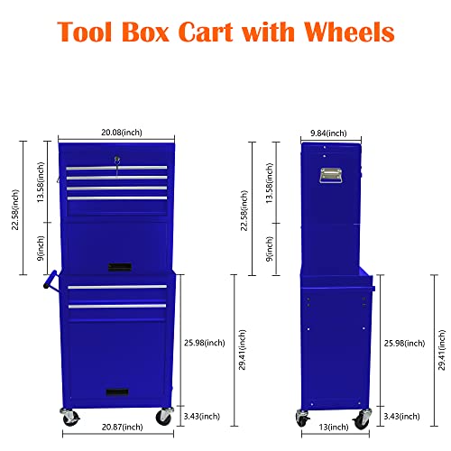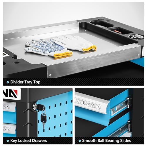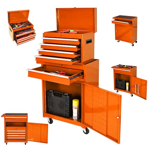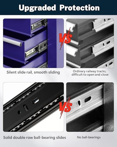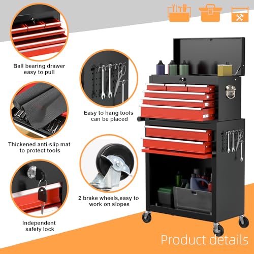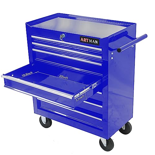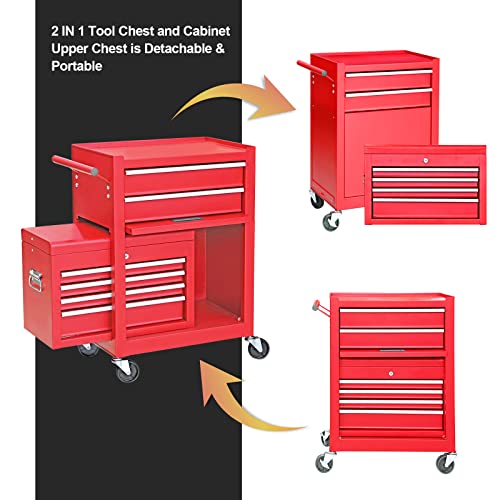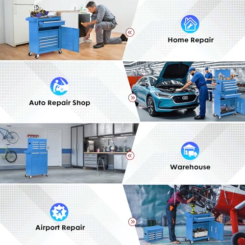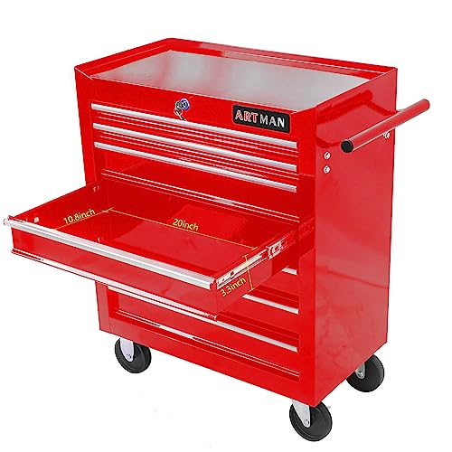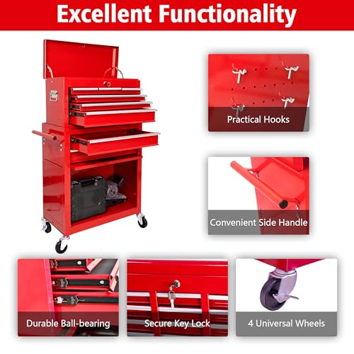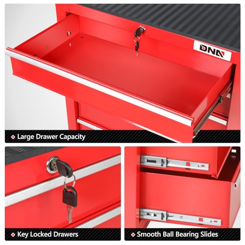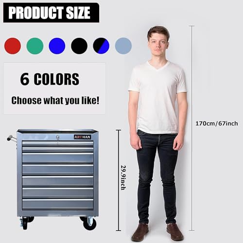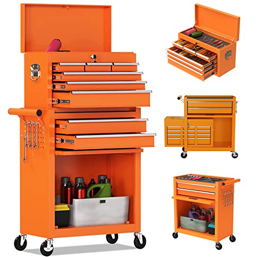 7-Drawer Rolling Toolbox,Tool Box with 360° Lockable Wheels and Padded Feet,Tool Chest with Keyed Locking System and Drawer Liners,can be Combined Storage System with Tool Chest