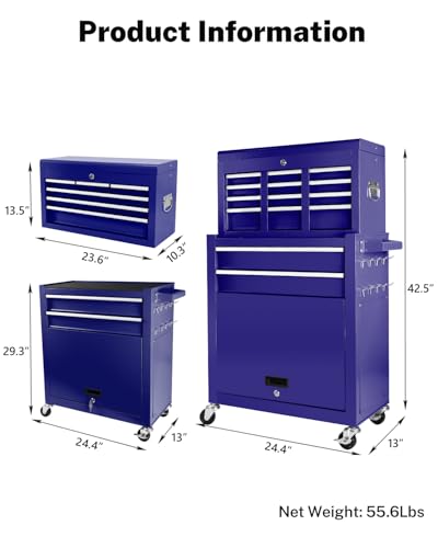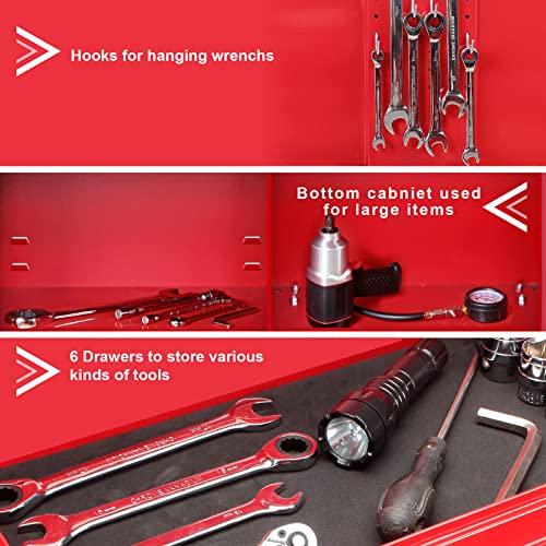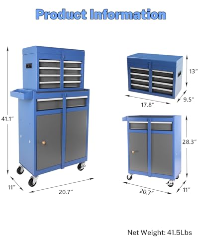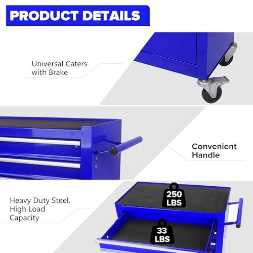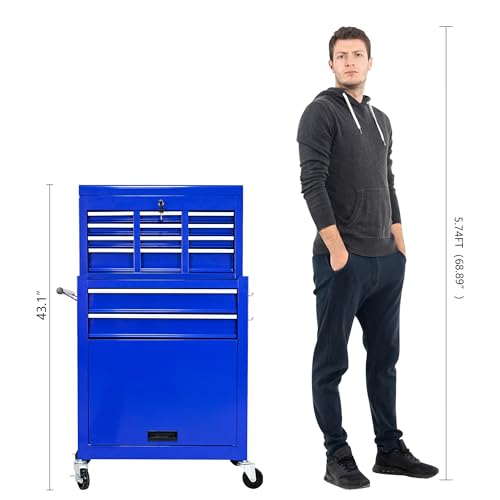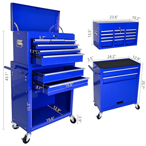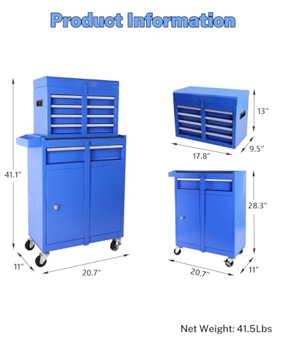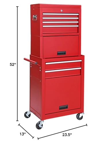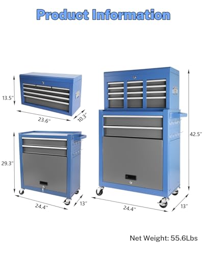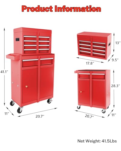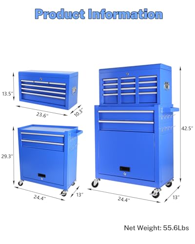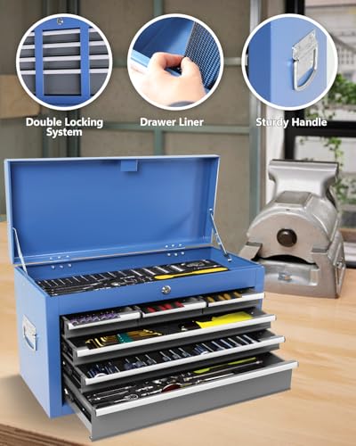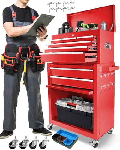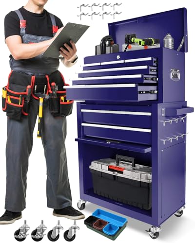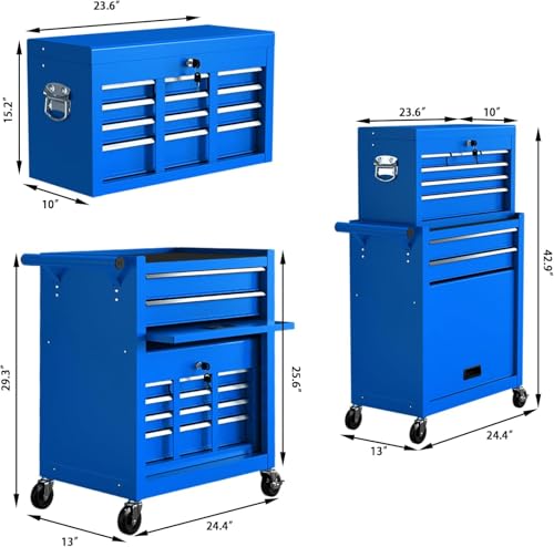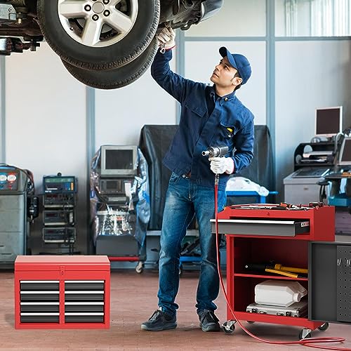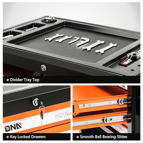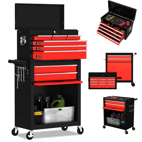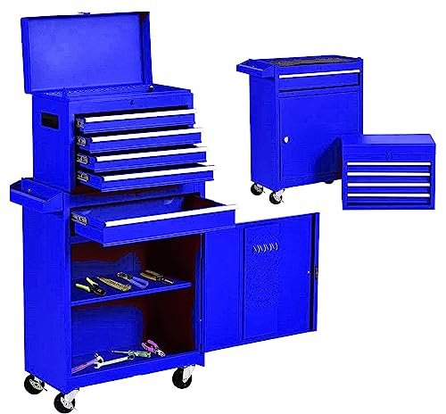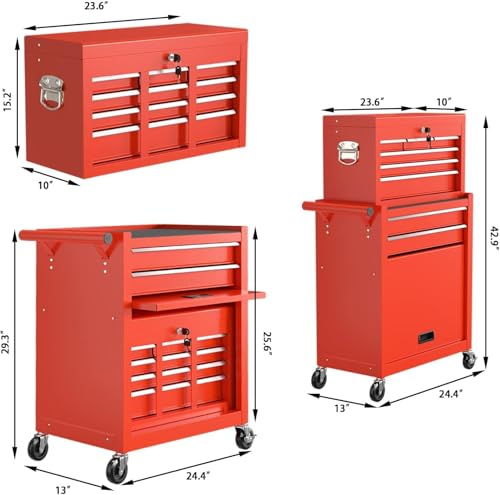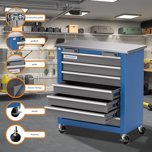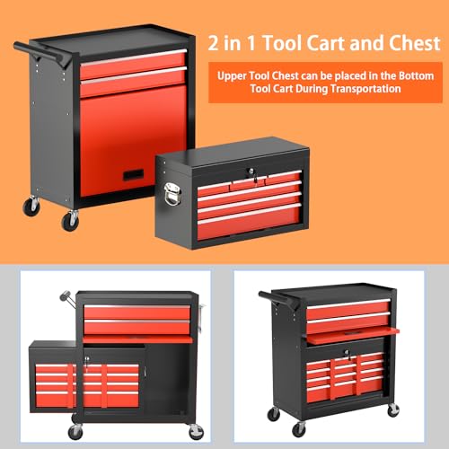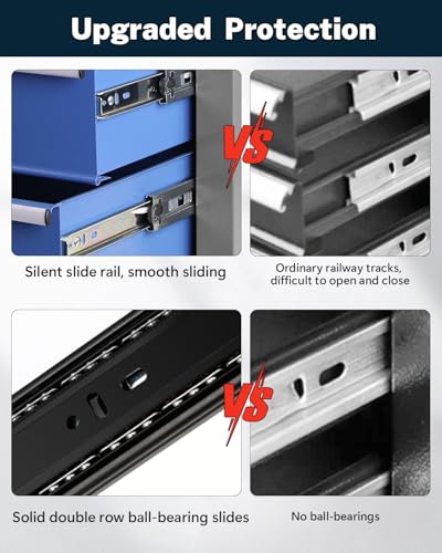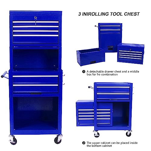 7-Drawer Rolling Toolbox,Tool Box with 360° Lockable Wheels and Padded Feet,Tool Chest with Keyed Locking System and Drawer Liners,can be Combined Storage System with Tool Chest