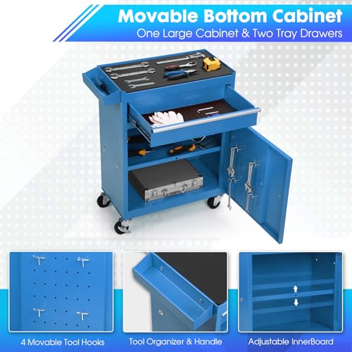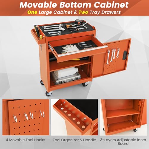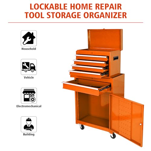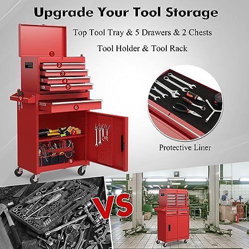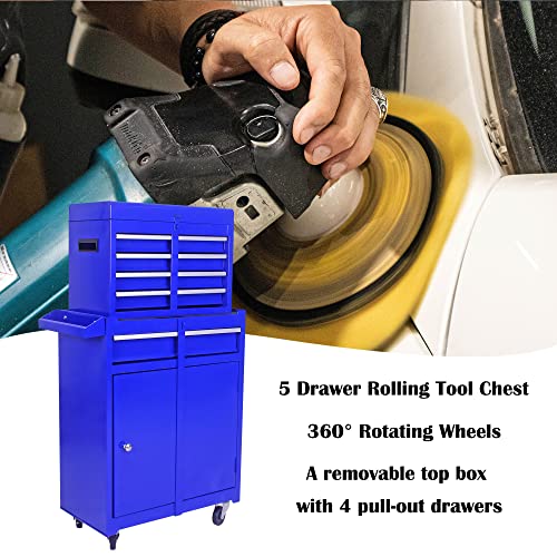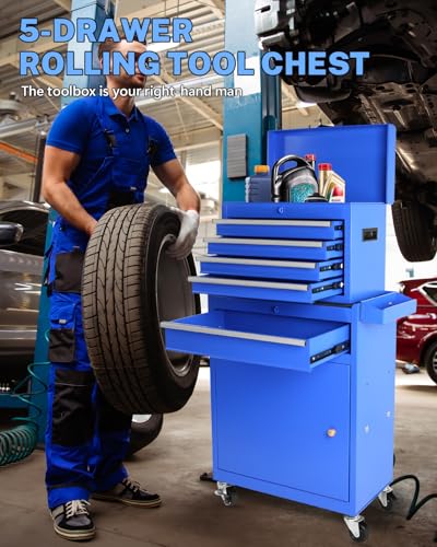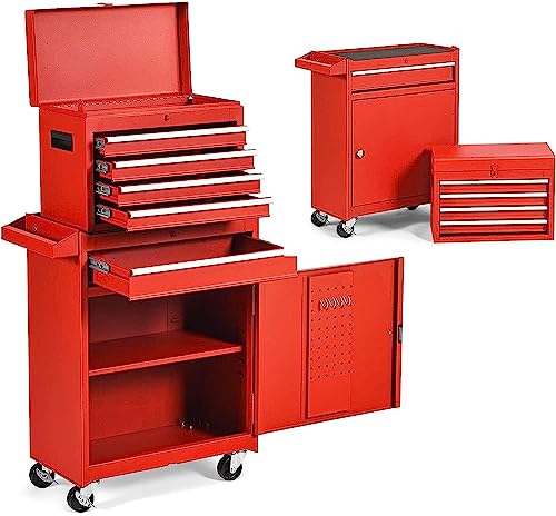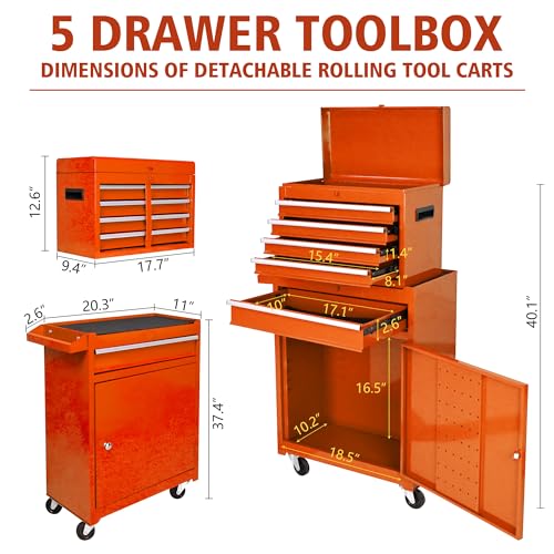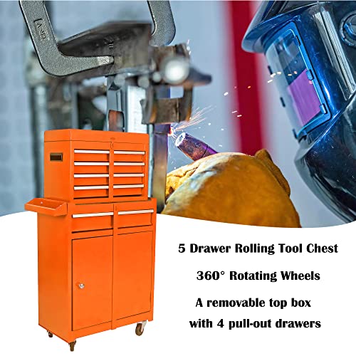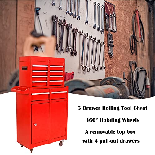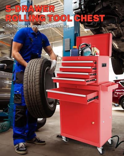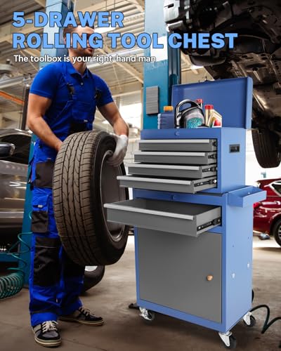 Goplus Rolling Tool Chest, 5-Drawer Tool Box Organizer w/Lockable Wheels & Sliding Drawers & Detachable Top & Adjustable Shelf, Tool Storage Cabinet for Garage Workshop(Gray)