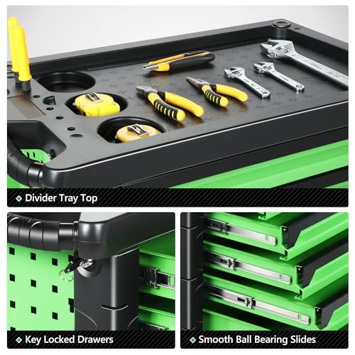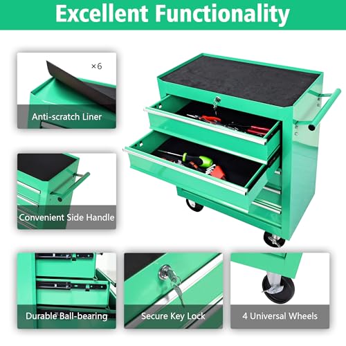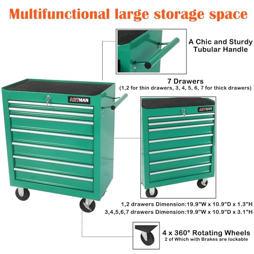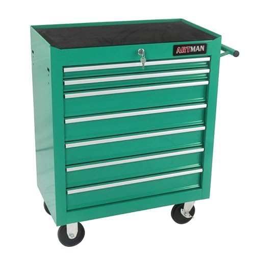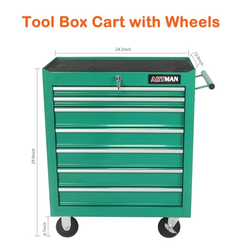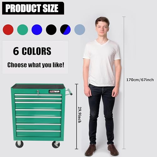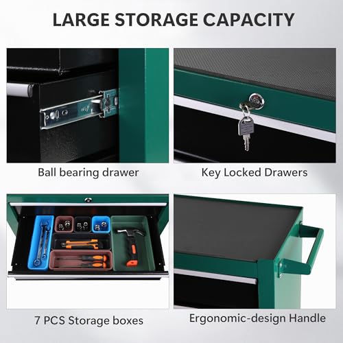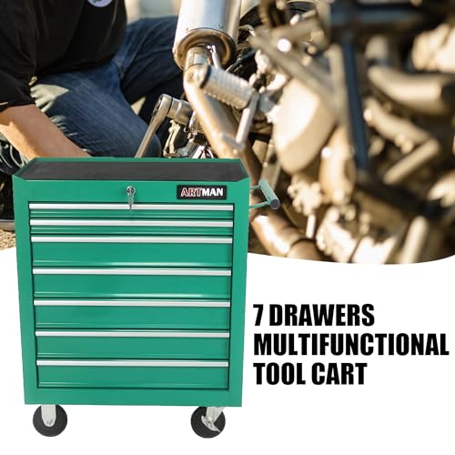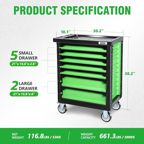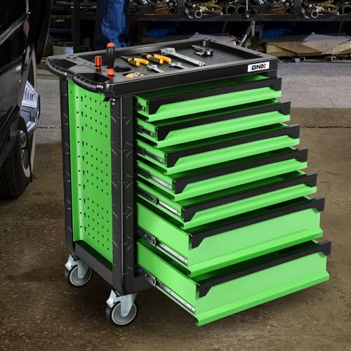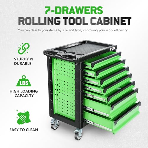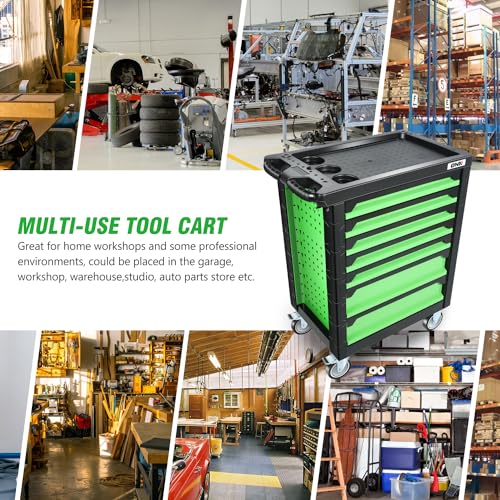 DNA MOTORING 7-Drawer Rolling Tool Cabinet Chest with Keyed Locking System Non-Slip Mat, for Garage Warehouse Workshop, Green, TOOLS-00399