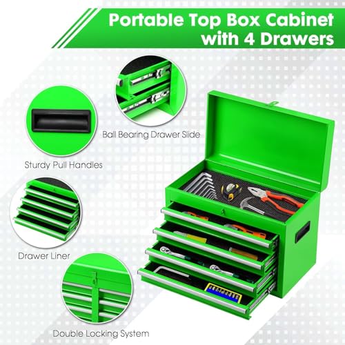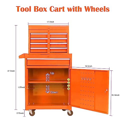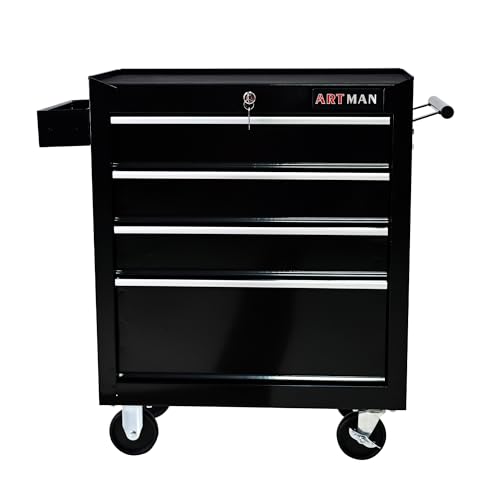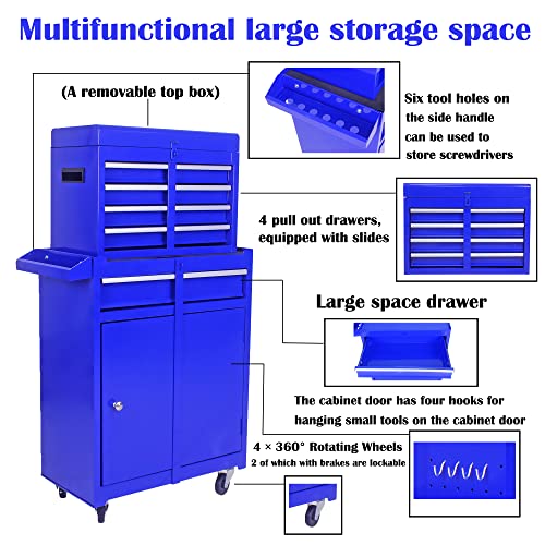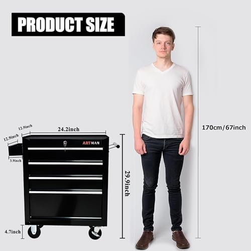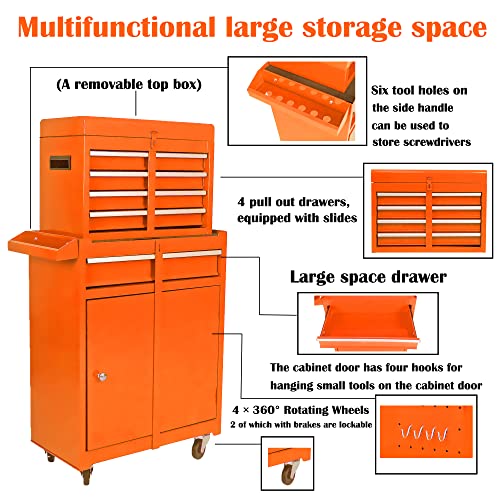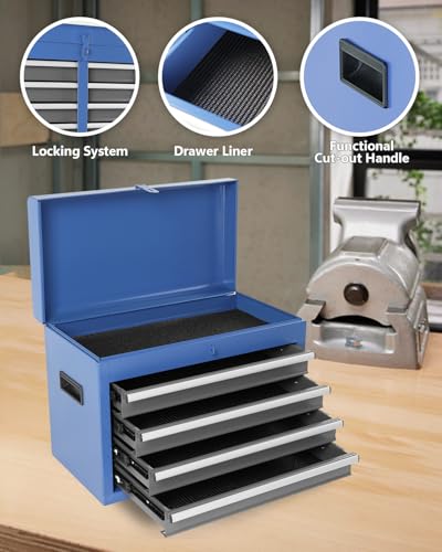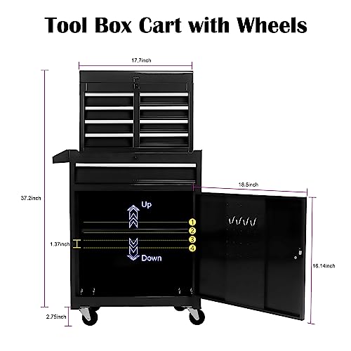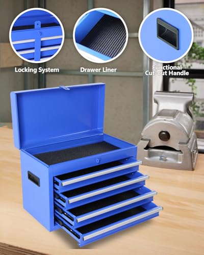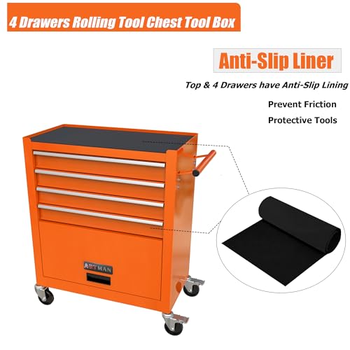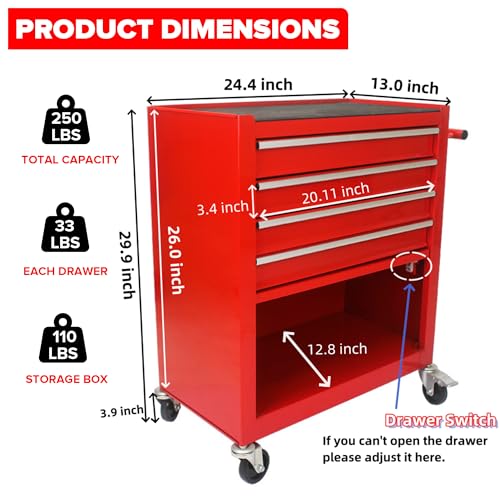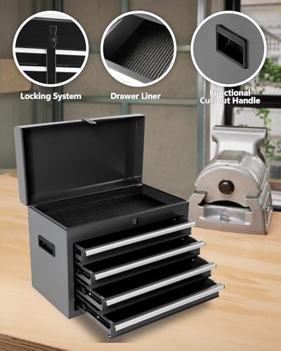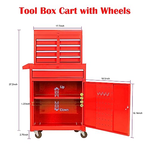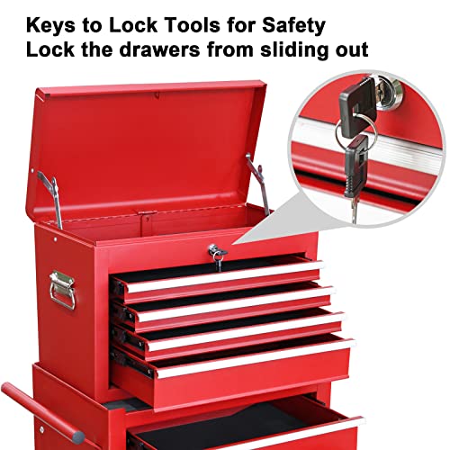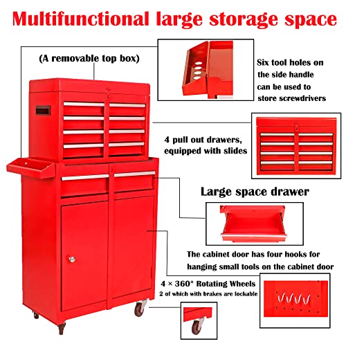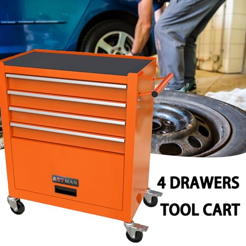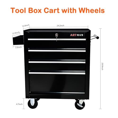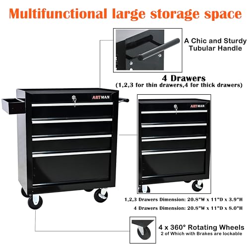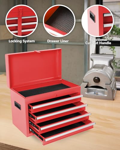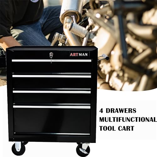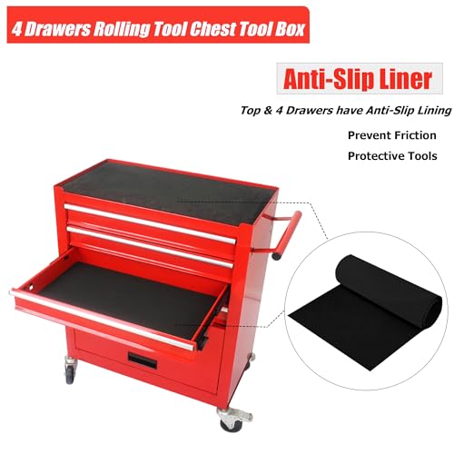 Winado 4-Drawer Rolling Tool Chest with Wheels & Lock, Tool Box with Large Storage Cabinet and Adjustable Shelf, Removable Portable Top Box for Garage, Warehouse, Factory