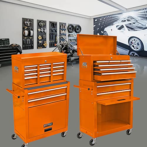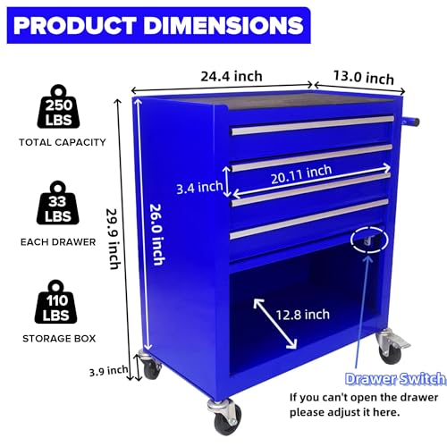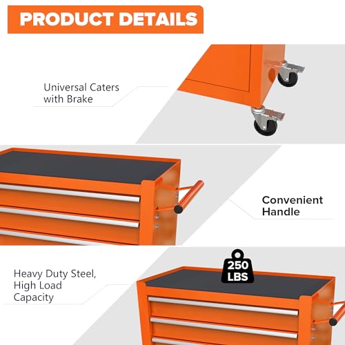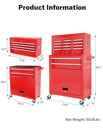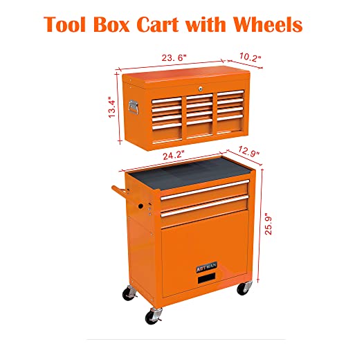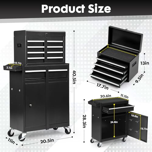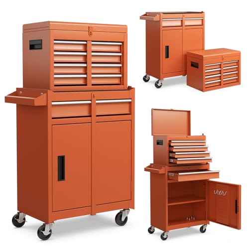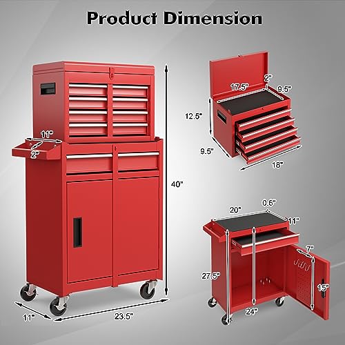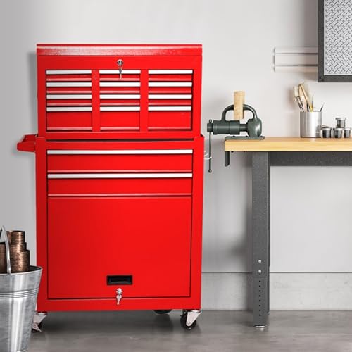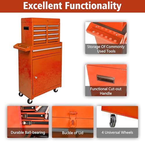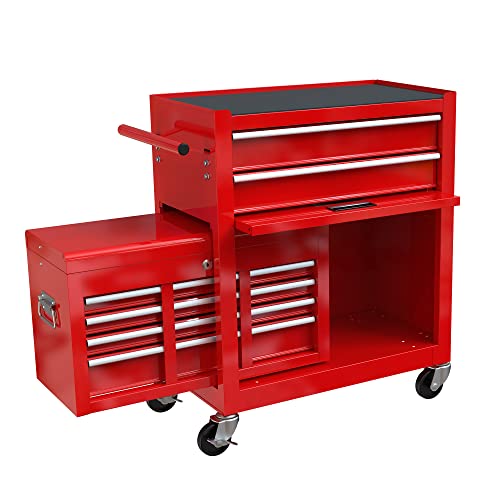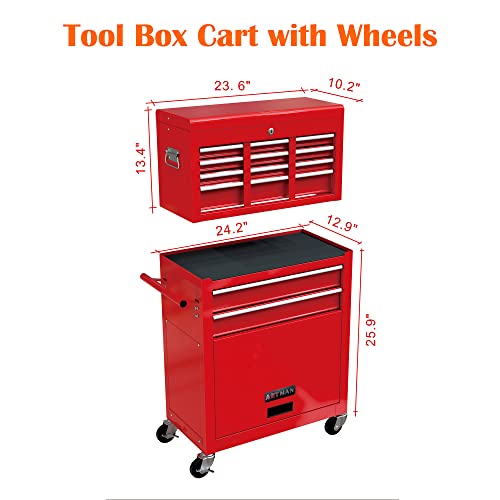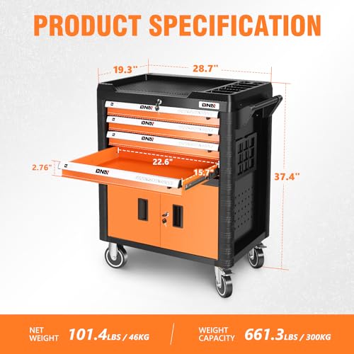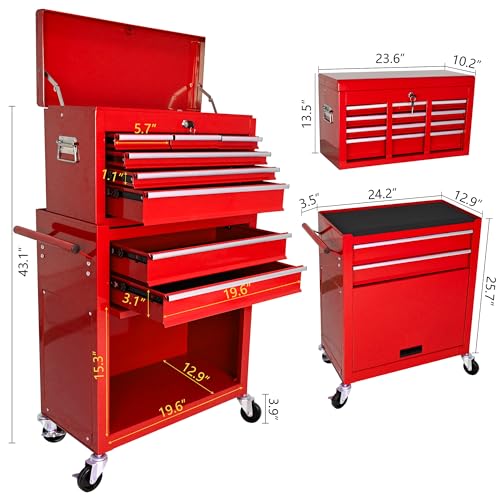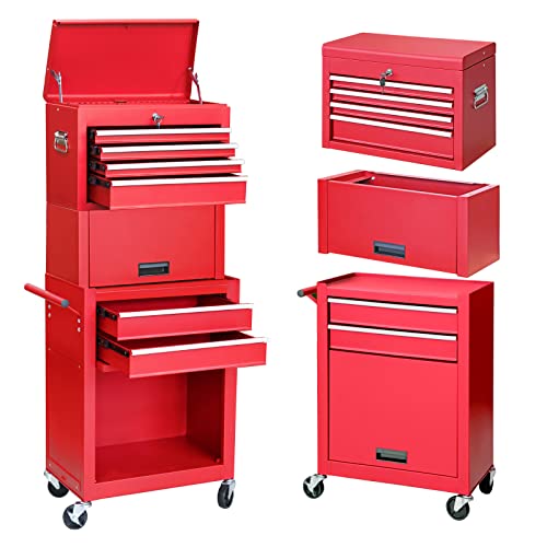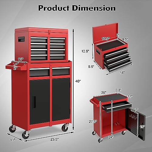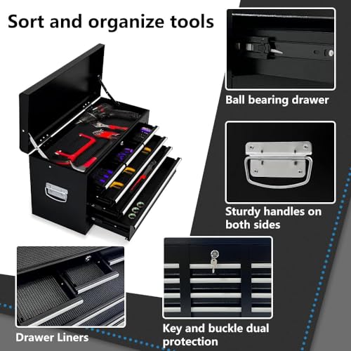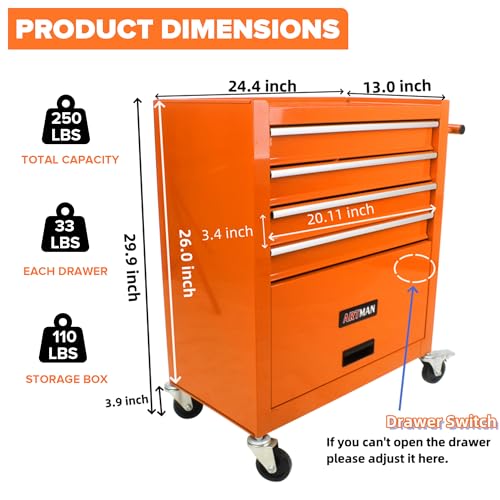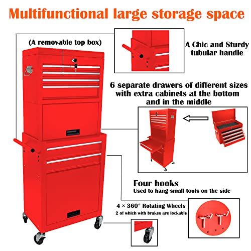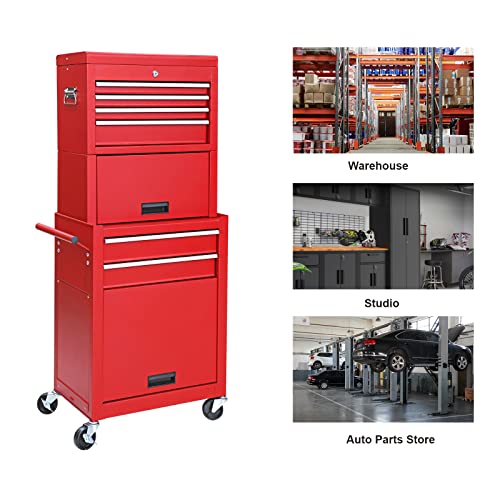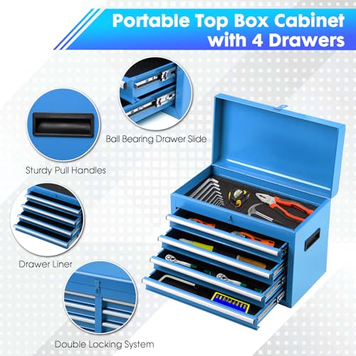 Winado 4-Drawer Rolling Tool Chest with Wheels & Lock, Tool Box with Large Storage Cabinet and Adjustable Shelf, Removable Portable Top Box for Garage, Warehouse, Factory