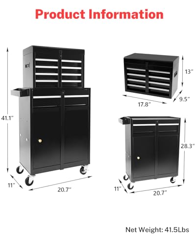 5-Drawer Rolling Tool Chest, Modular Tool Cabinet with Brake Casters & Removable Drawers, Workshop Toolbox Cart for Factory/Garage, Black