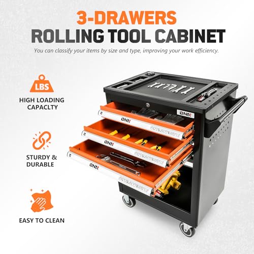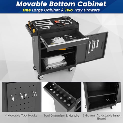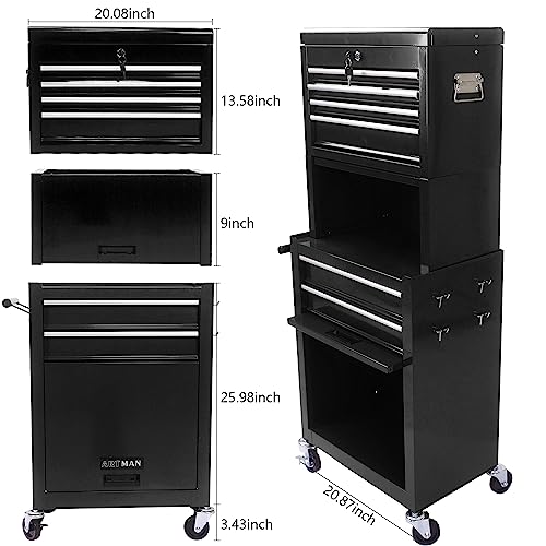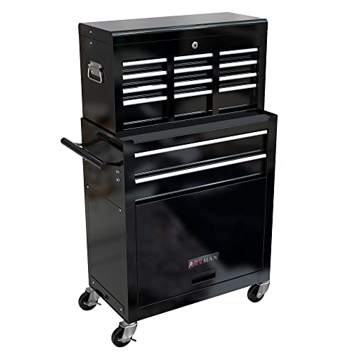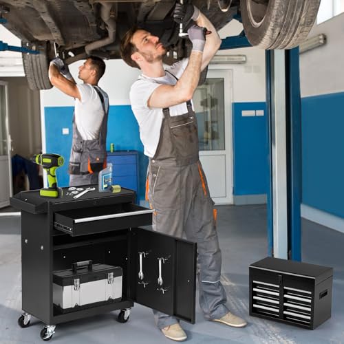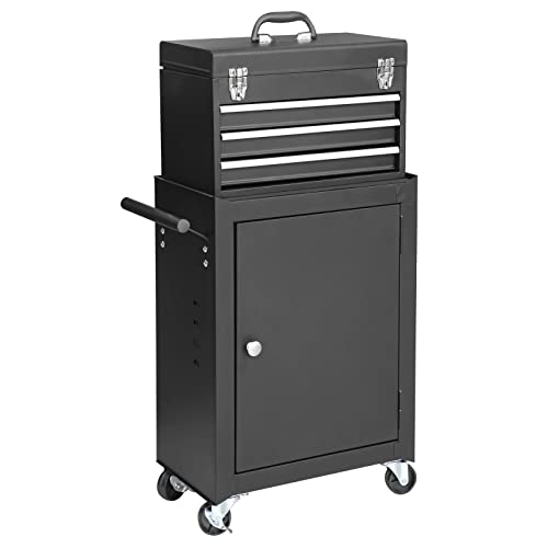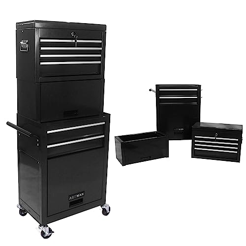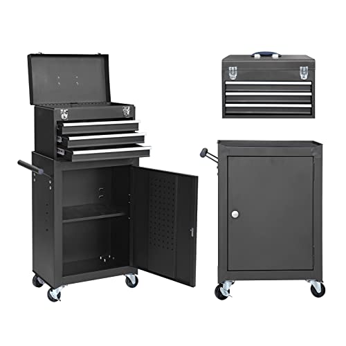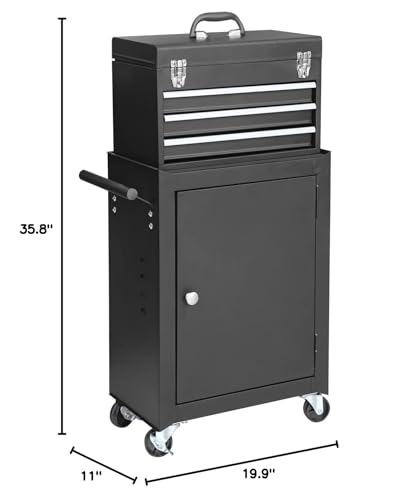 GSTANDARD APTB202B Torin Rolling Garage Tool Cabinet: Detachable 3 Drawer Tool Chest with Large Storage Cabinet and Adjustable Shelf, Black
