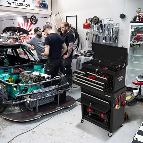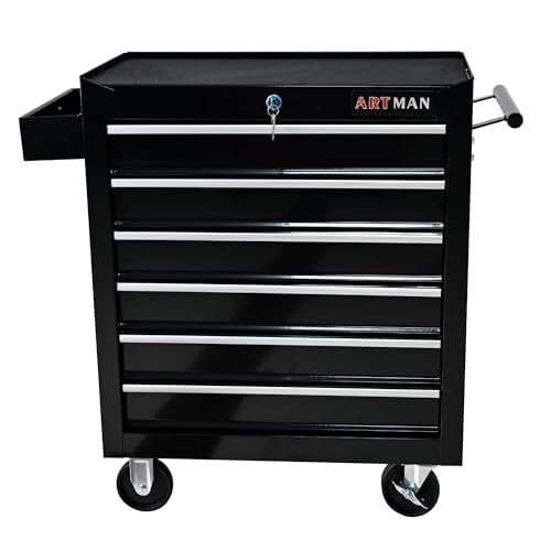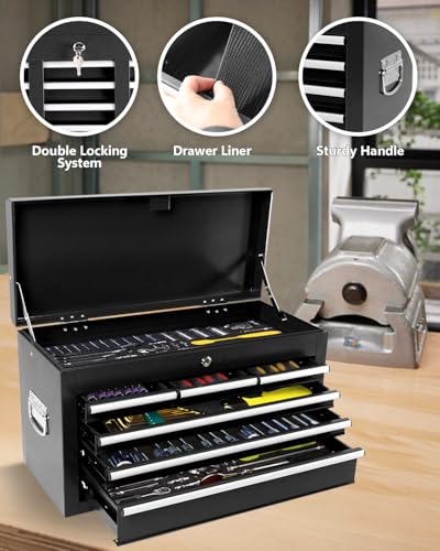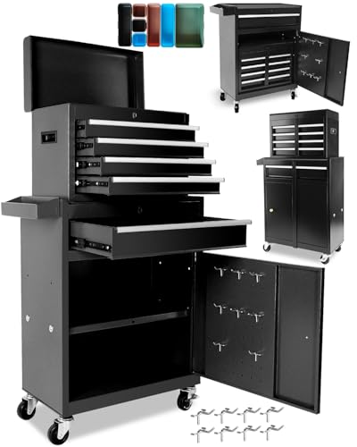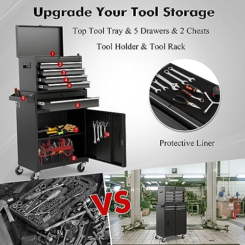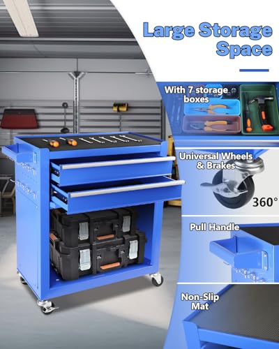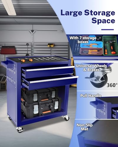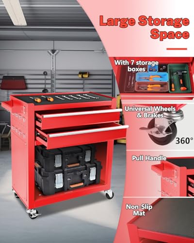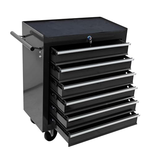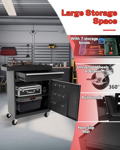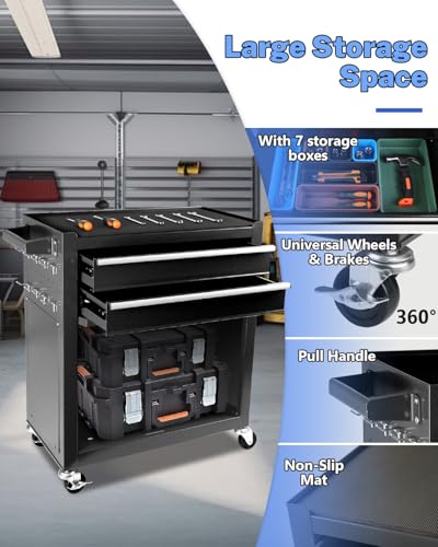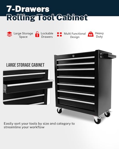Heavy-Duty 7-Drawer Rolling Tool Chest with Wheels, Steel Tool Storage Cabinet with Lock & Liner for Workshop for Workshop/Garage - Includes 7 Organizer Boxes, Black