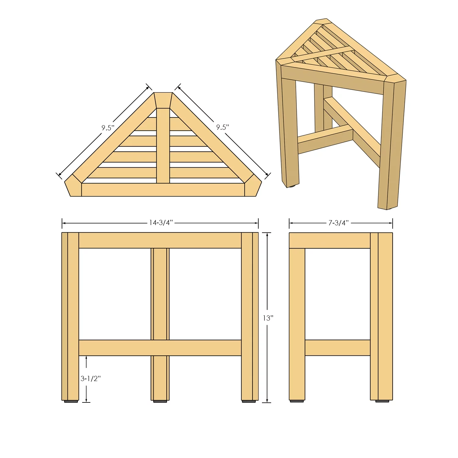 Asta Brio Solid Teak Fully Assembled Shower/Bath/Spa Corner Foot Stool/Side Table, SPATEAK Collection, TB-008