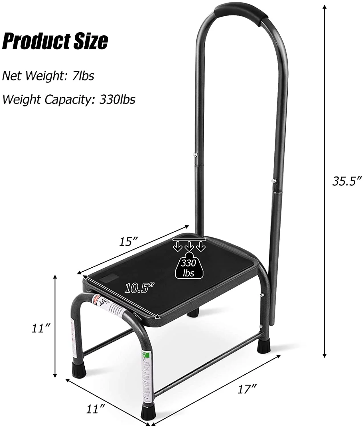 Medical Step Stool with Handle & Non-Skid Rubber Platform, Heavy Duty Safety Step for Old People, Elderly Adults, 330 Lbs Load Capacity