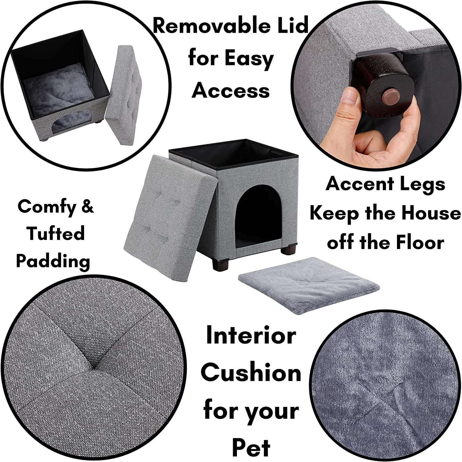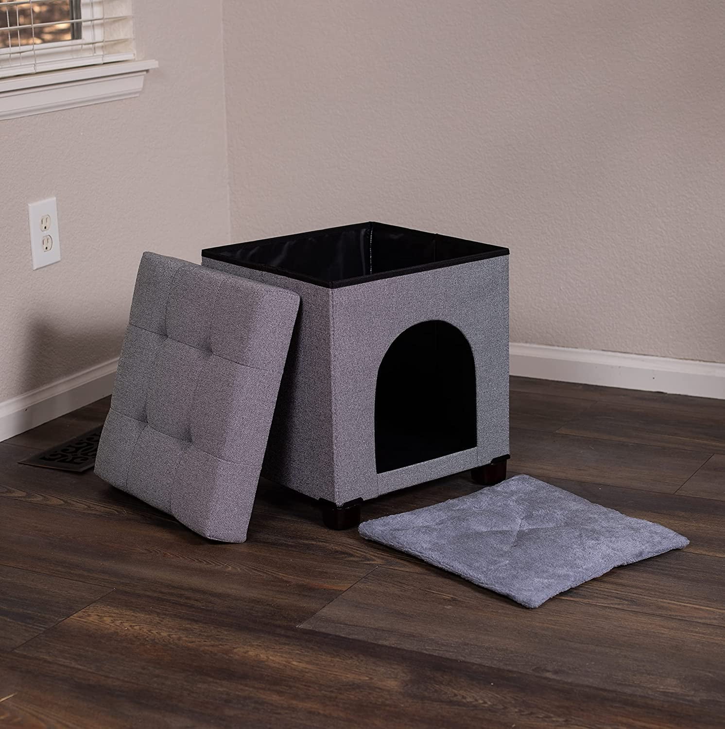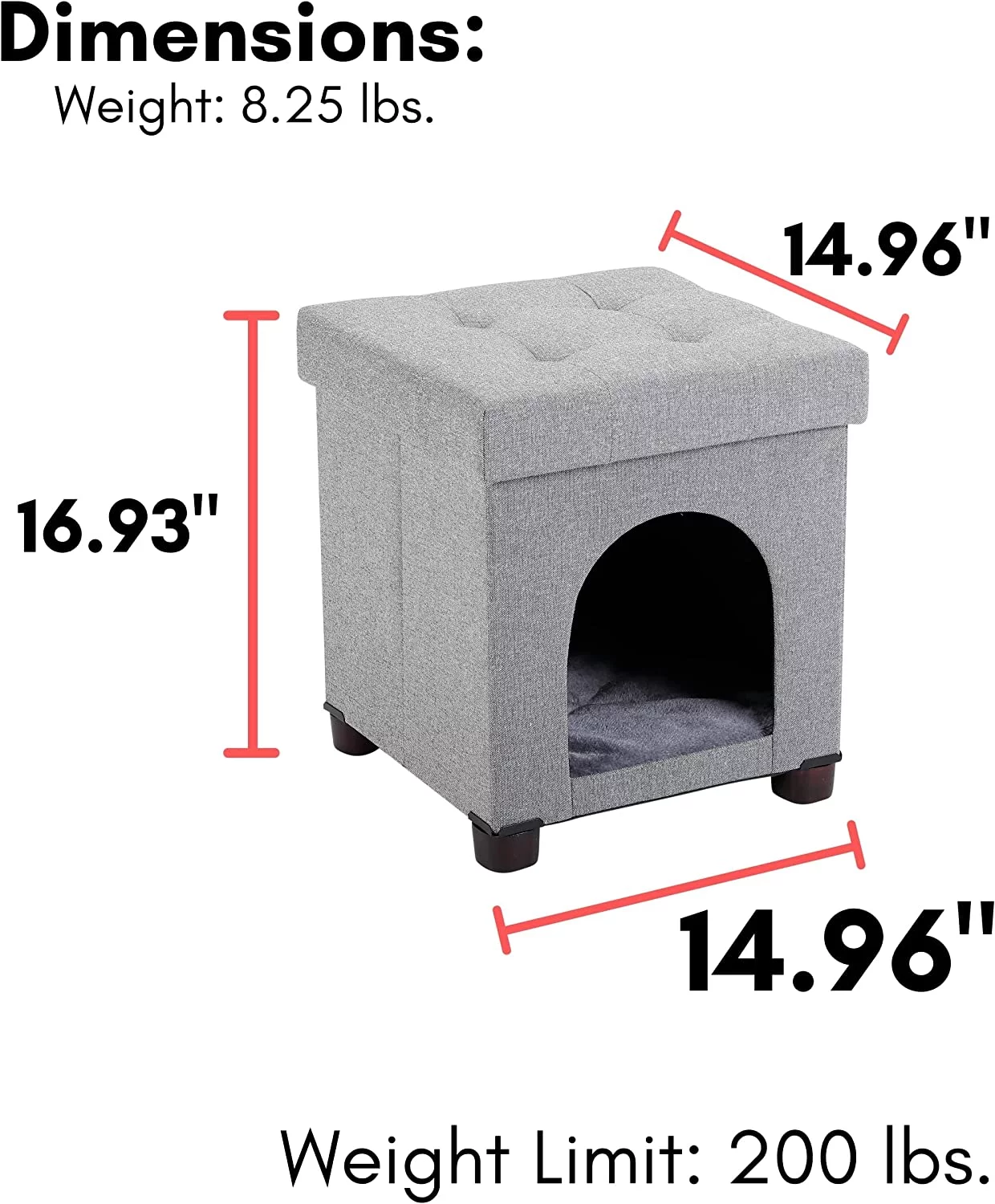 Pet House Bench Ottoman - Cat or Dog Furniture Bed - Footstool - Cozy Condo Cave