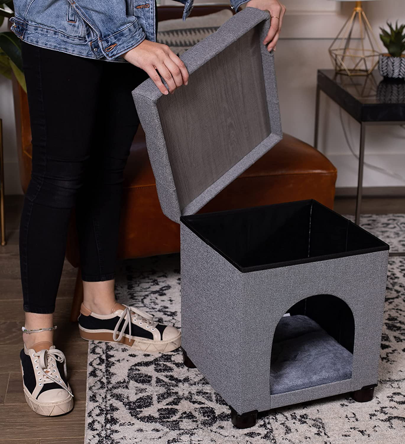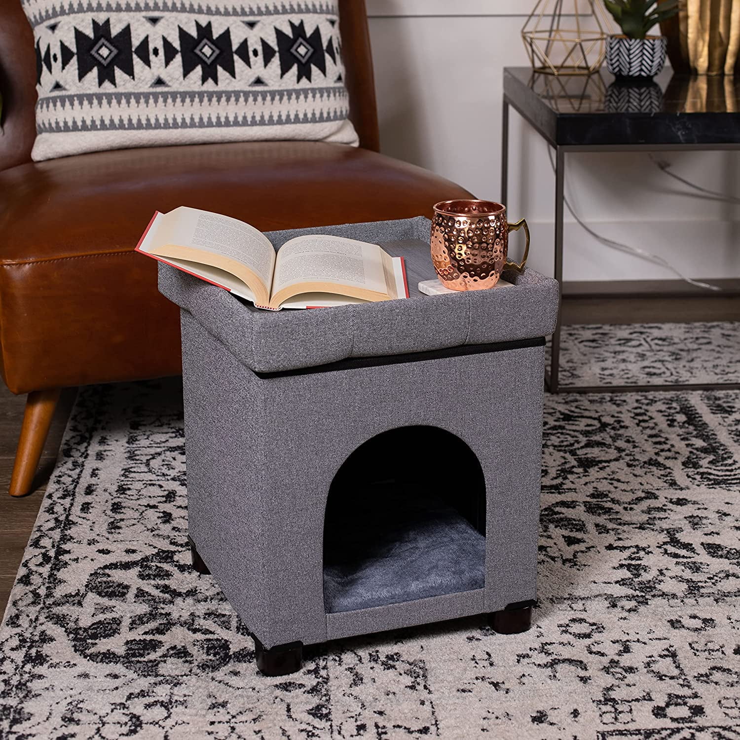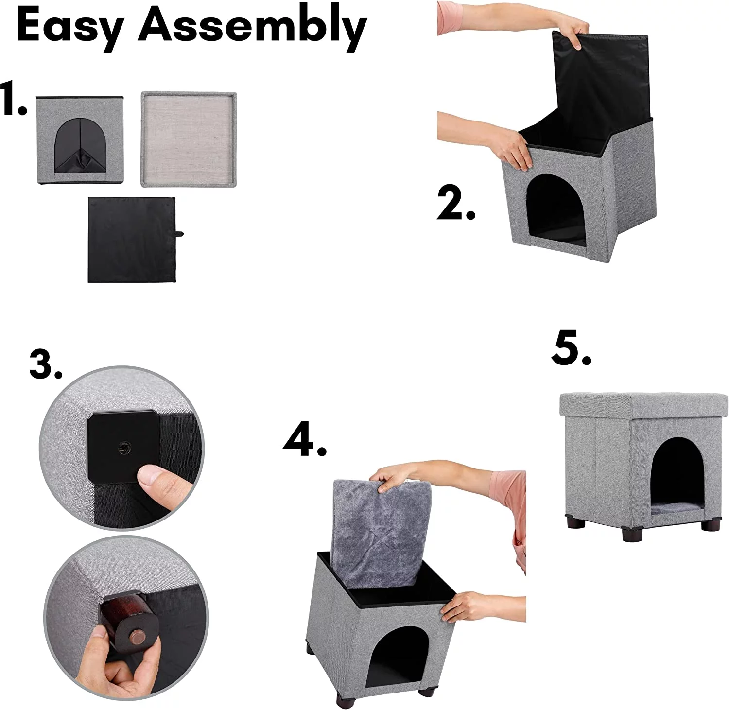 Pet House Bench Ottoman - Cat or Dog Furniture Bed - Footstool - Cozy Condo Cave