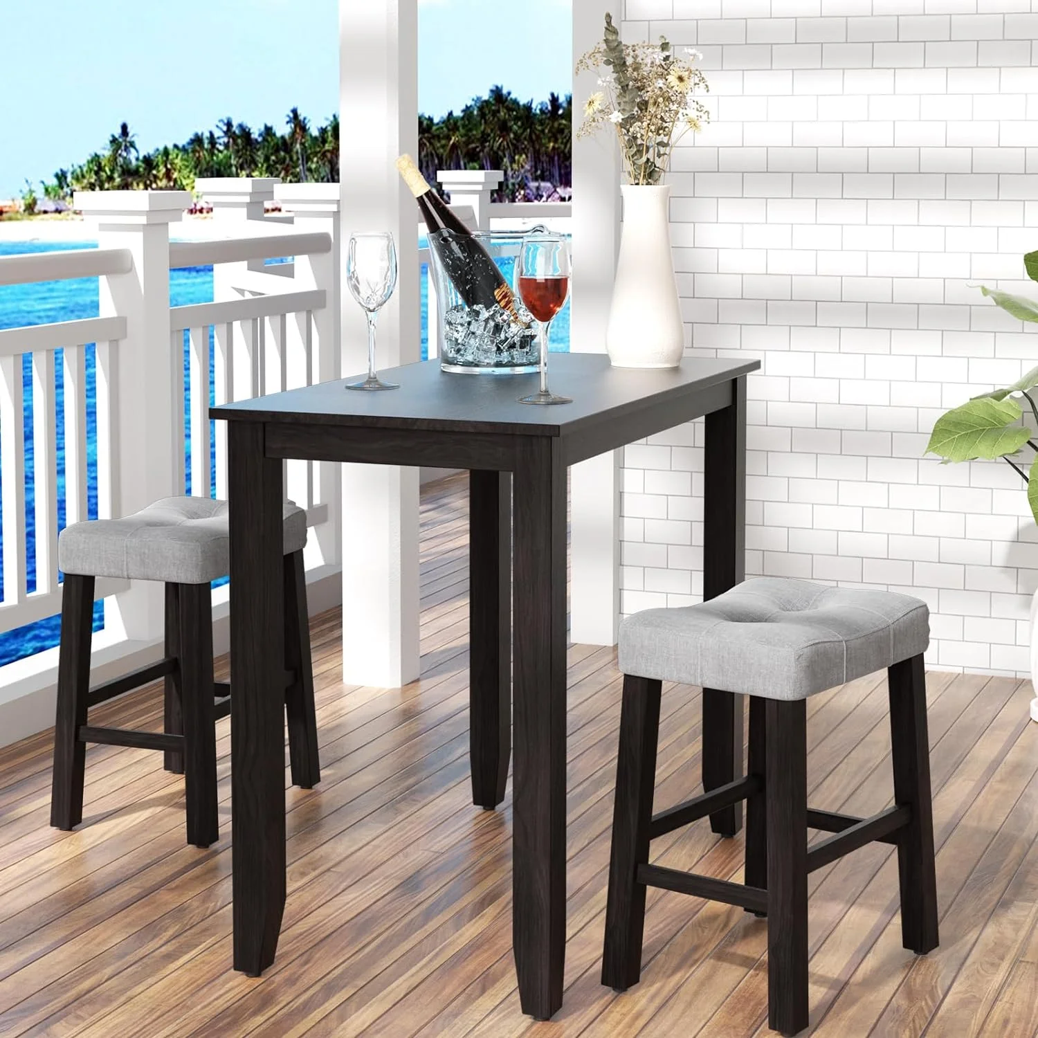 WANHUI 3 Piece Dining Table Set, Counter Height Dining Furniture One Bench and Two Saddle Stools, Compact, Space-Saving Design, Small Space, Apartment, Condo, Dorm Rooms (Oak 61219-78)