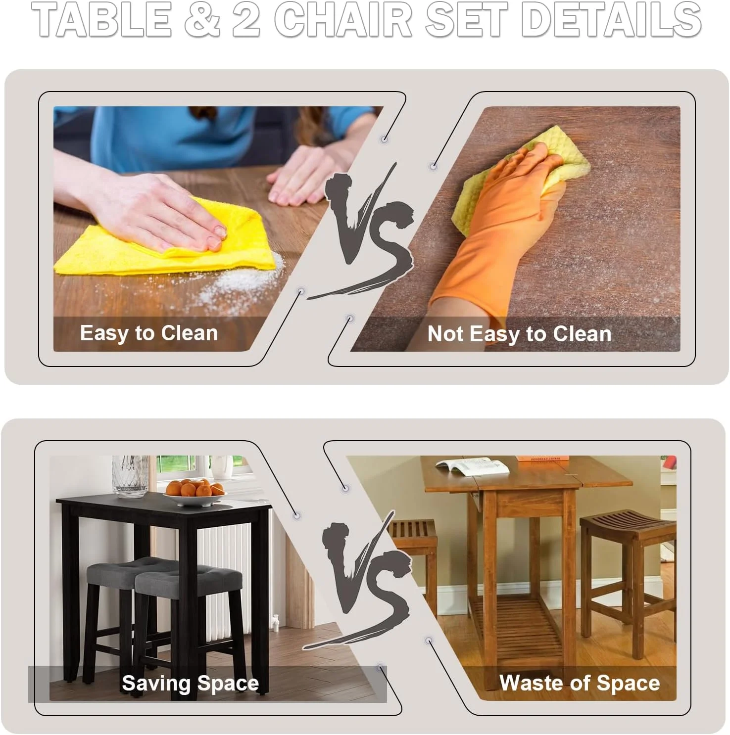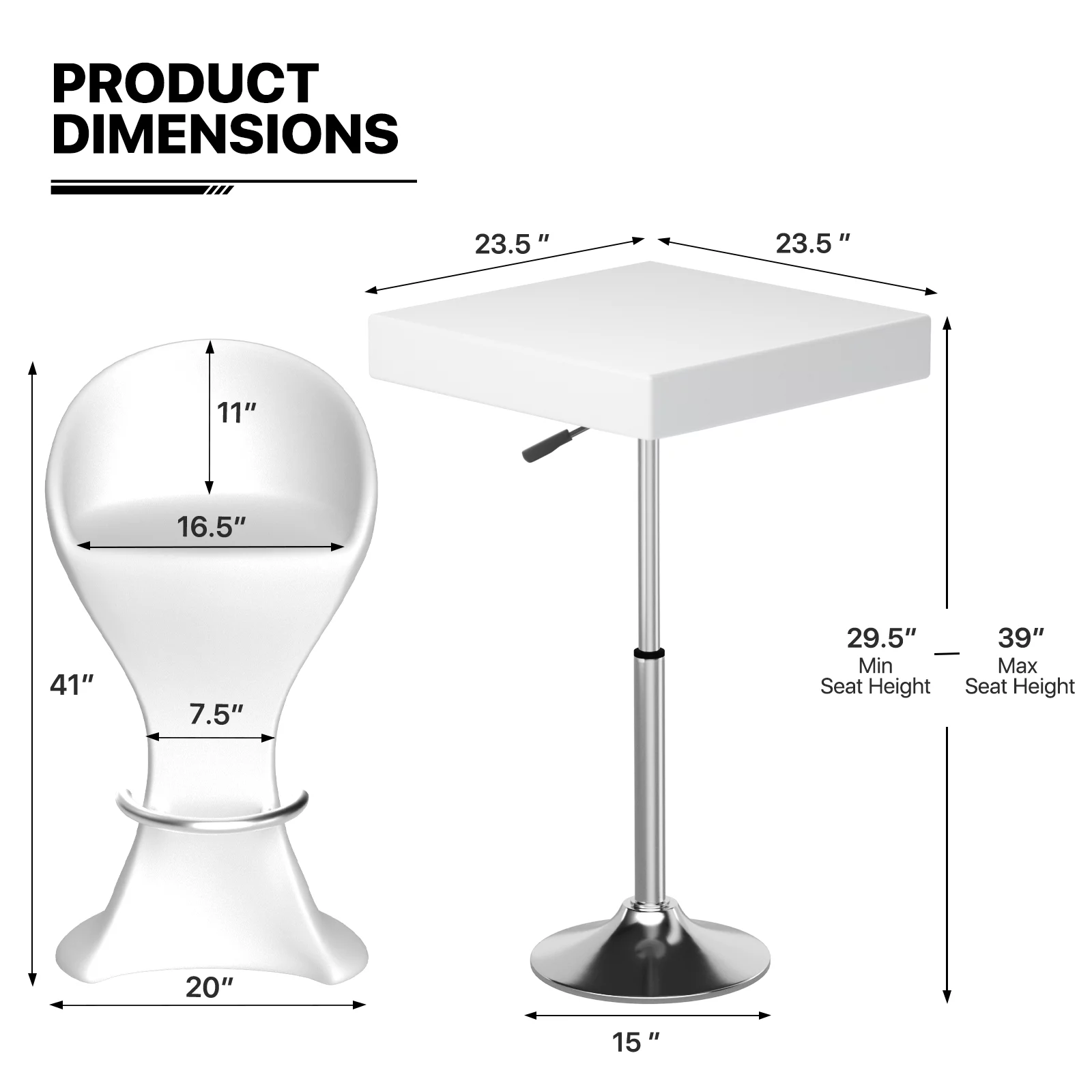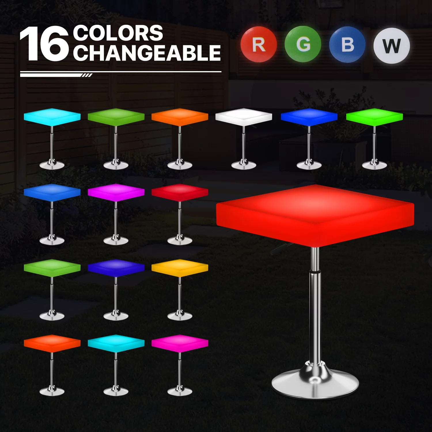MoNiBloom Set of 3 LED Light Up Square Bar Table + Stools, 16 Color Changing Rechargeable Adjustable Height Table and Barstools with Remote Control & Footrest
