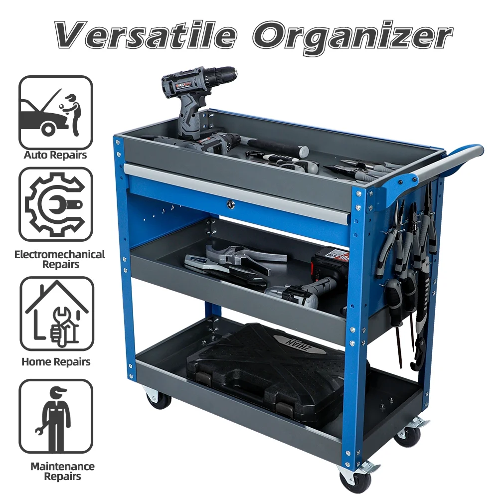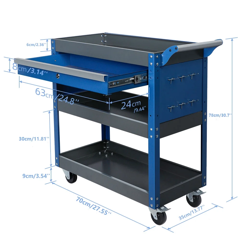 Airaj Tools Trolley for Heavy Duty 3 Tier,with Hanging Plate Hooks Load Capacity 200KG