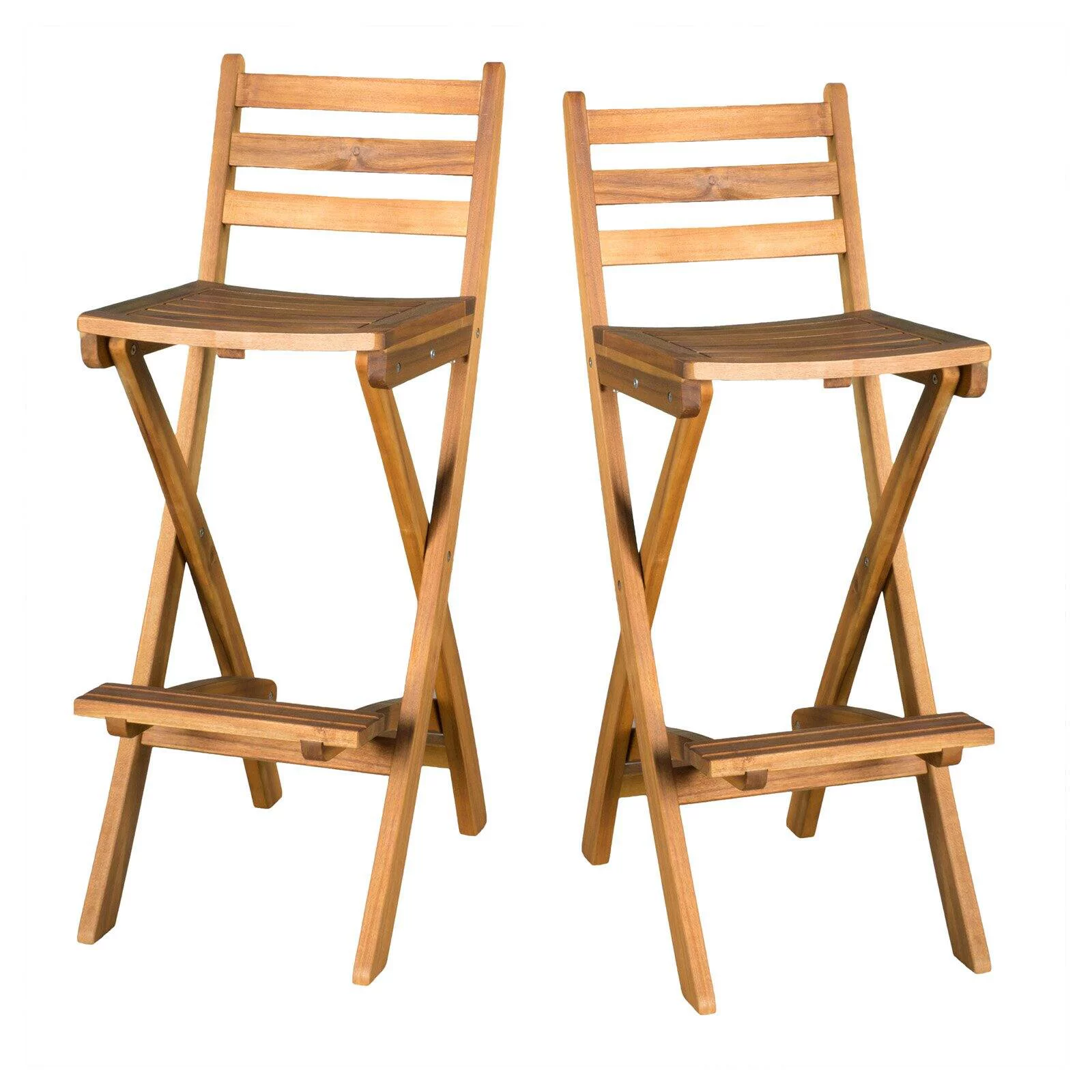 Atlantic 31-Inch Outdoor Folding Wood Bar Stools (Set of 2)