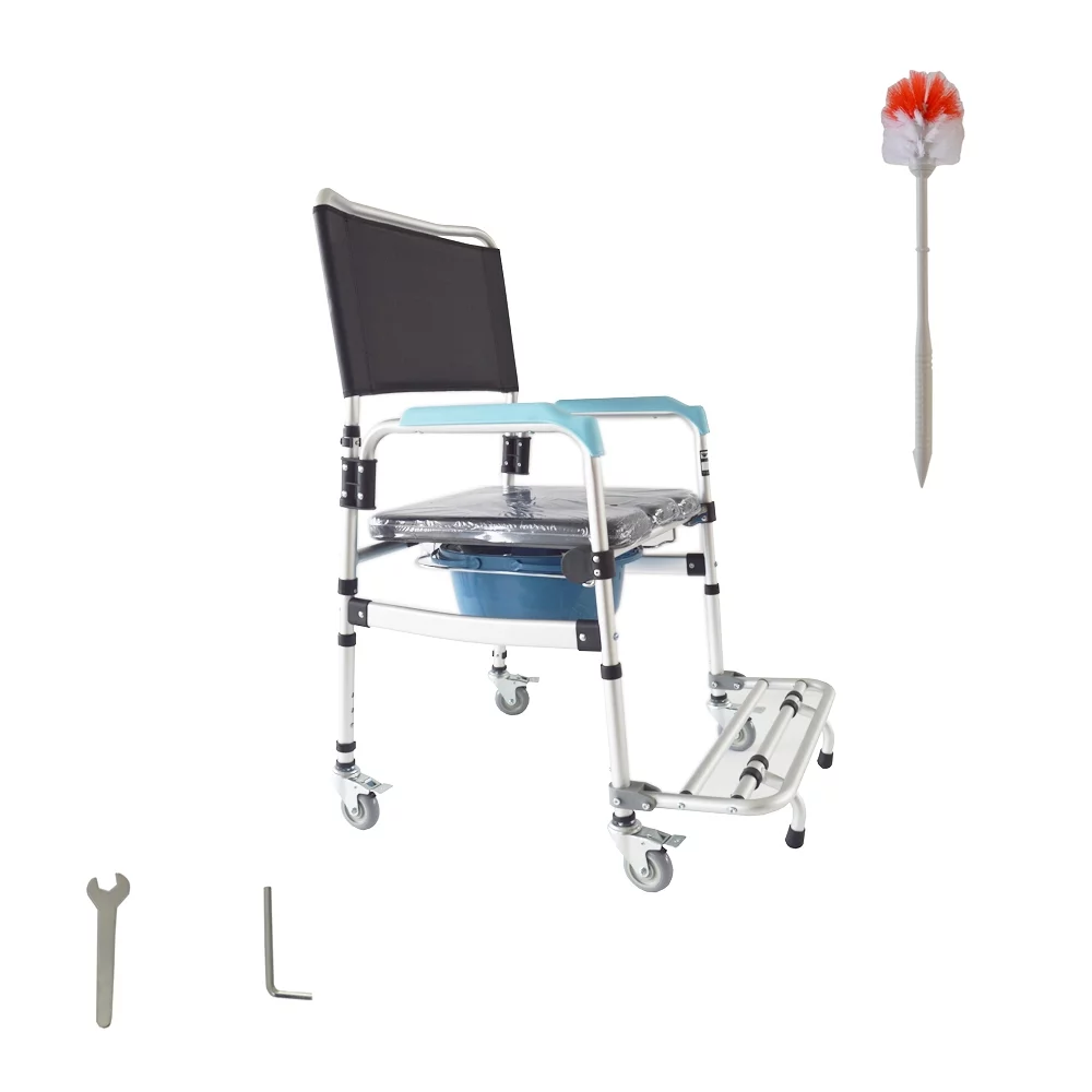 EQCOTWEA Portable Toilet Chair Foldable Elderly Pregnant Mobile Stool Chair Toilet Bathroom Chair Padded Aluminium Alloy
