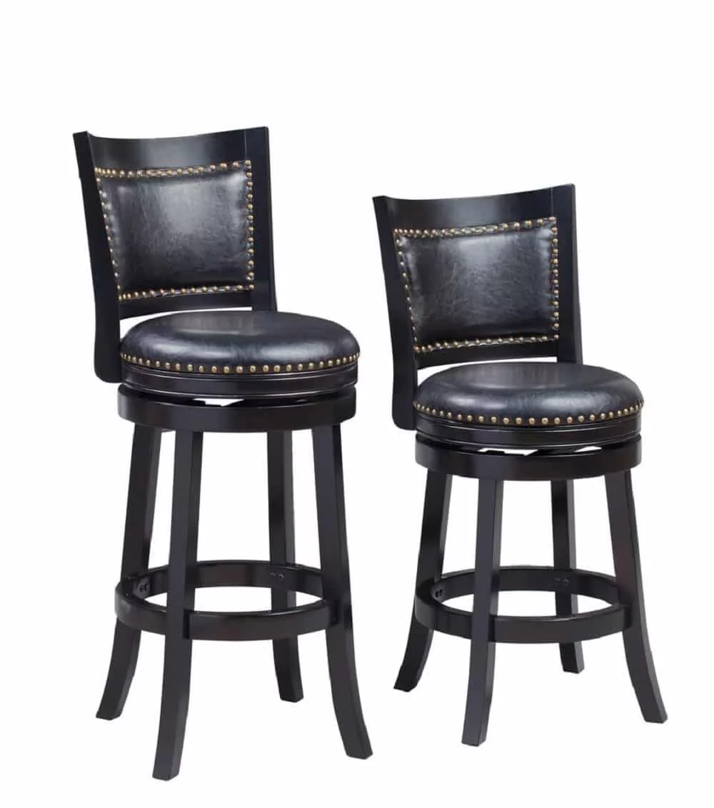 Boraam Bristol 29in. High Back Swivel Wood Bar Stool, Black