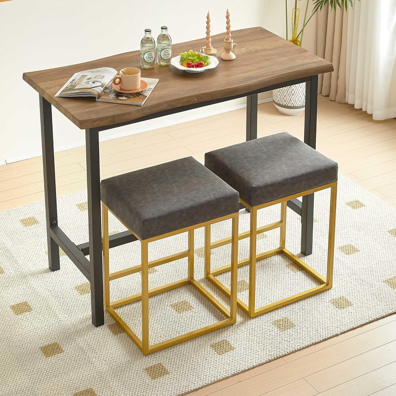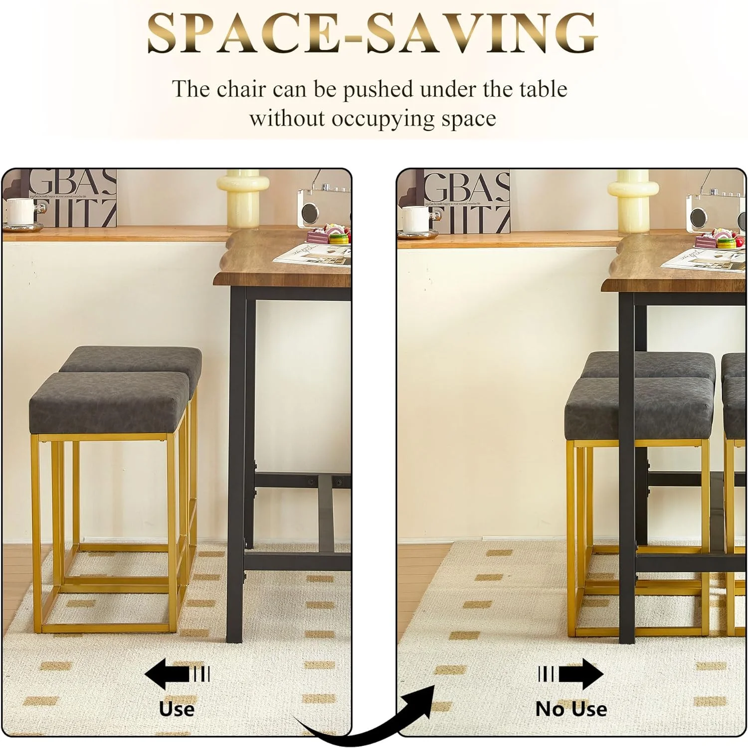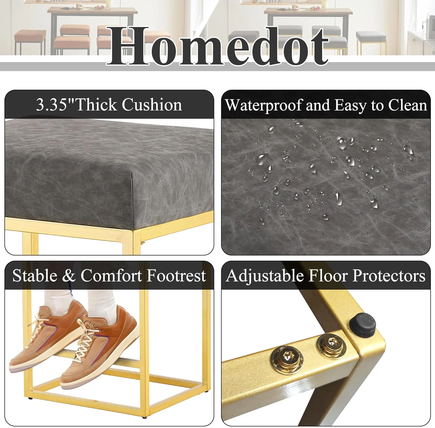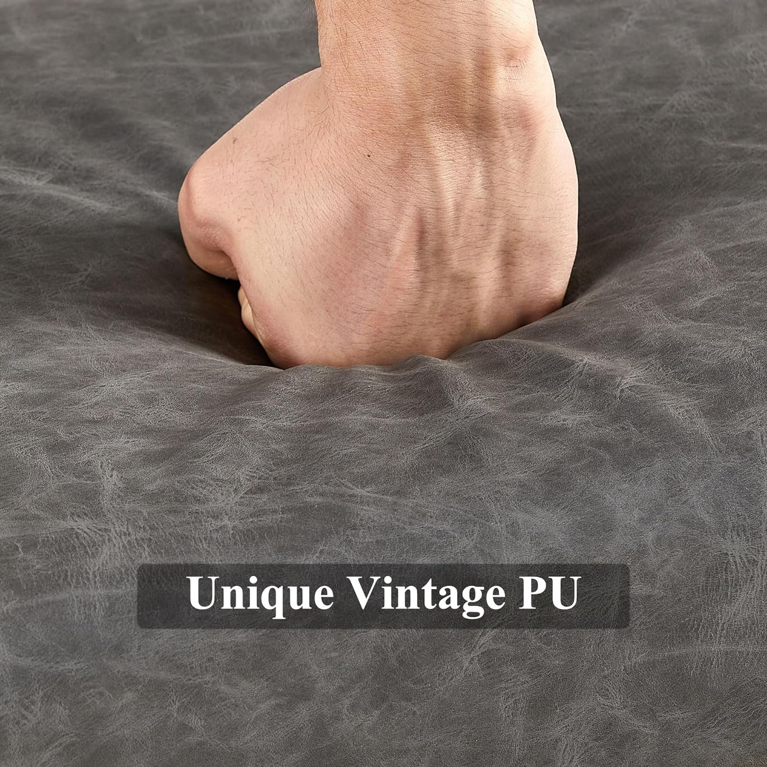 NORDICANA Bar Stools Set of 2, Grey Counter Height Kitchen Island Barstool PU Leather with Black Metal Base