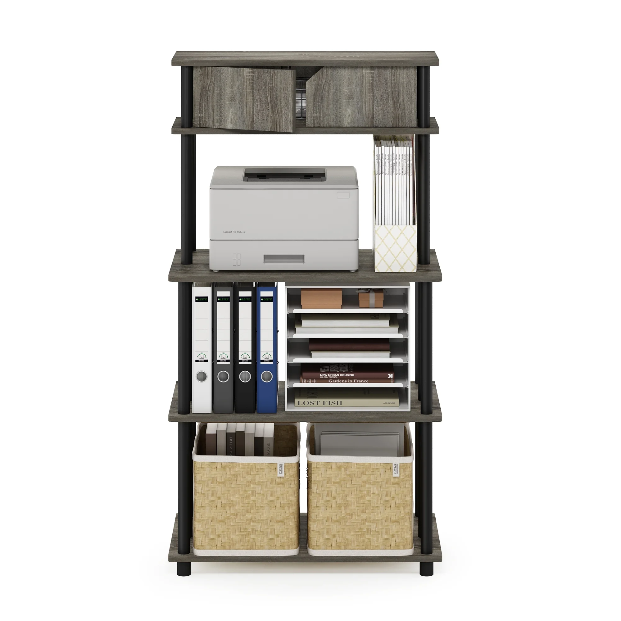 Furinno Turn-N-Tube Toolless Multipurpose Printer Stand Display Storage Shelf with Top Cabinet, French Oak Grey/Black